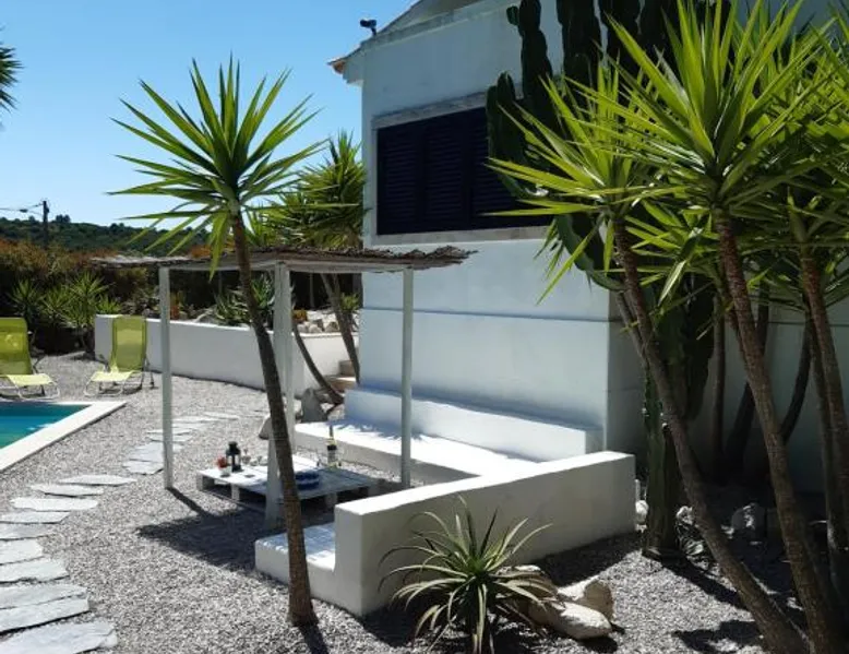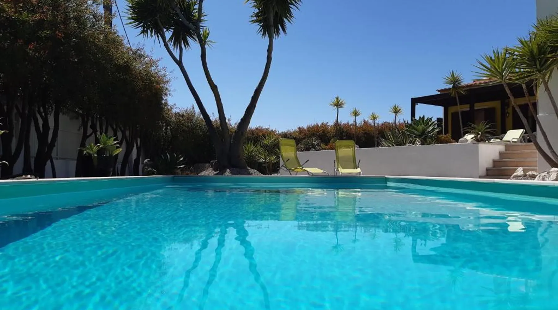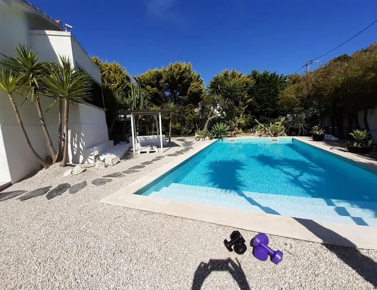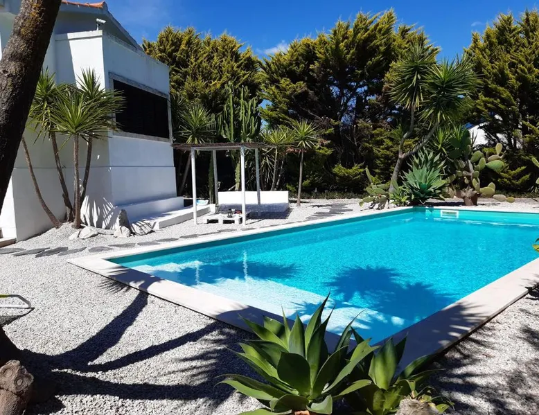 Spacious Accommodations: Yuccas House in Sesimbra offers a spacious villa with three bedrooms and two bathrooms. The property features a sun terrace, garden, and a year-round outdoor swimming pool. Free WiFi is available throughout the villa. Outdoor Amenities: Guests can enjoy sea views from the terrace and balcony. The outdoor seating area provides a relaxing space, while the private pool and barbecue facilities enhance the outdoor experience. Convenient Location: Located 1.2 mi from Ouro Beach, Yuccas House is 26 mi from Humberto Delgado Airport. Nearby attractions include Jeronimos Monastery and Rossio, each 24 mi away. Boating is available in the surrounding area. Guest Satisfaction: Highly rated by guests, Yuccas House ensures a comfortable and enjoyable stay with its spacious accommodations and excellent facilities. This villa's special features are the private pool and the fireplace. Featuring a private entrance, this spacious villa also consists of 3 bedrooms, a seating area and 2 bathrooms with a bath and a bidet. Guests will find a stovetop, a refrigerator, a dishwasher and kitchenware in the well-fitted kitchen. The villa also offers a barbecue. Boasting a terrace with sea views, this villa also provides a washing machine and a flat-screen TV with cable channels. The unit offers 5 beds.