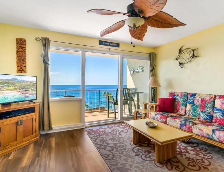 A lovely condo overlooking the blue Pacific. Fully equipped and furnished by the owners with much attention to detail. The fully equipped kitchen is both lovely and very convenient for preparing meals and snacks. The space A lovely condo overlooking the blue Pacific. Fully equipped and furnished by the owners with much attention to detail. The fully equipped kitchen is both lovely and very convenient for preparing meals and snacks. You will want to visit the local Sunshine Markets for fresh produce to include in your culinary creations. Take in wonderful ocean views from indoors as well as from your private lanai. Watch for humpback whales in winter, and playful dolphins and sea turtles year-round. It’s just a short walk to beautiful Poipu Beaches nearby. World-famous Poipu Beach Park, Spouting Horn and the National Tropical Botanical Gardens are all close by. Just past the Grand Hyatt in Poipu is a great hiking trail. There are many activities near-by to enjoy seasonal swimming, snorkeling, scuba diving, surfing, paddle boarding, windsurfing, kayaking, hiking, fishing, boat tours and flight seeing aboard helicopters. For days you feel like staying close to home, you can always lounge by the swimming pool and take a refreshing dip whenever you please. *** Cancellation Policy *** Cancellations require at least a 30 day written or email notice prior to your check-in date for a full refund of your deposit. Notice at least 14 days prior to check in will receive a 50% refund. If less than 14 day notice, the rent, excise tax and reservation processing fee are forfeited. *** No Air Conditioning No Smoking TA-140-701-0816-01 Registration Details 280190030031, TA-100-191-4368-01