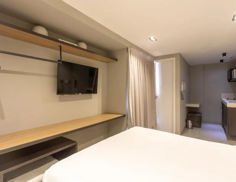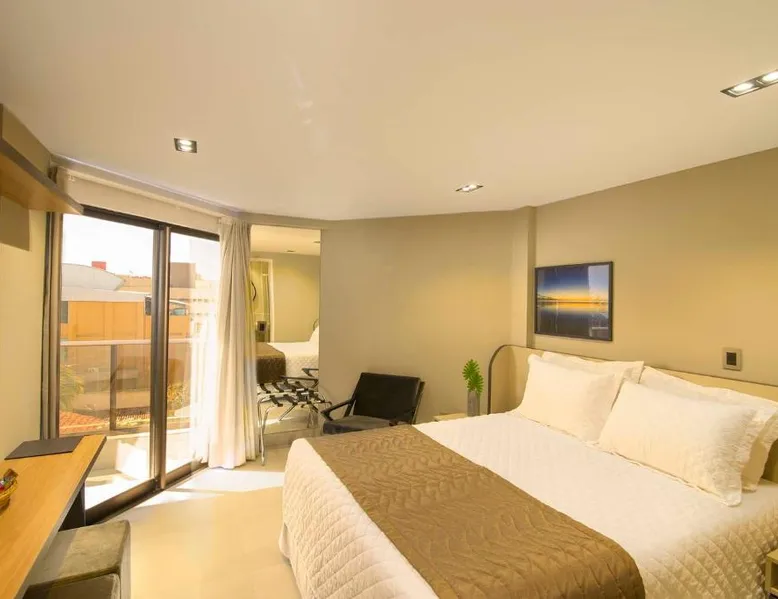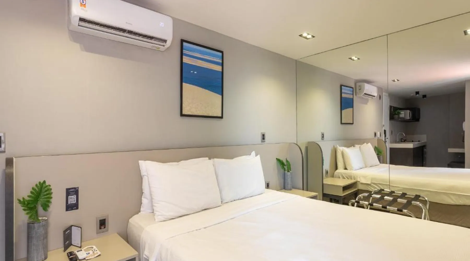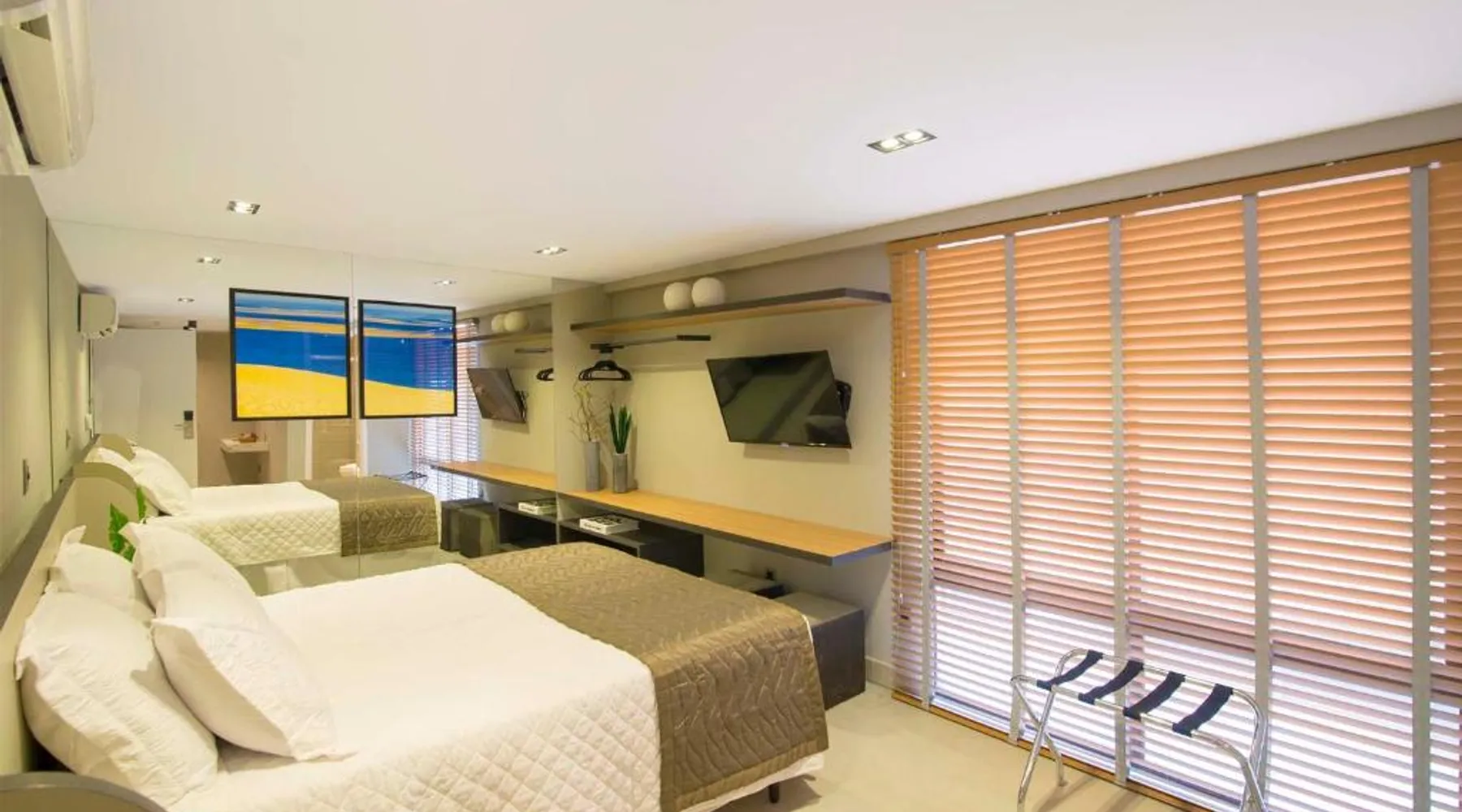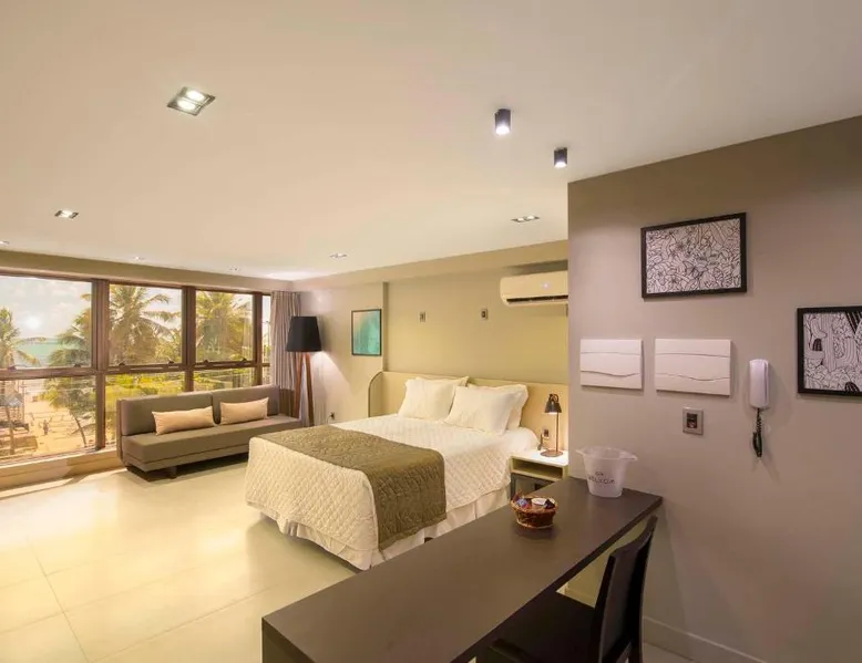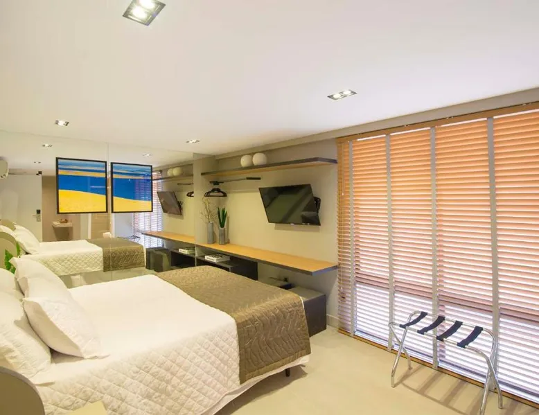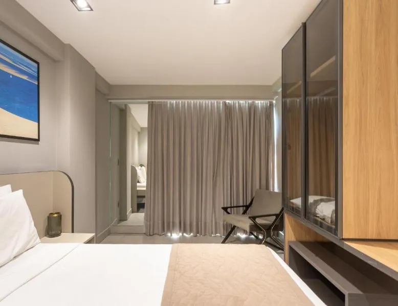 Beachfront Location: Infinity at the Sea by Welkom in João Pessoa offers direct beachfront access and stunning sea views. Guests can relax on the terrace or enjoy the bar, perfect for unwinding by the shore. Comfortable Accommodations: Rooms feature air-conditioning, kitchenettes, private bathrooms, and free toiletries. Additional amenities include mini-bars, microwaves, TVs, soundproofing, and tiled floors, ensuring a comfortable stay. Dining and Leisure: A buffet breakfast is provided each morning, and the hotel provides free WiFi throughout. The terrace and bar offer excellent spaces for relaxation and socializing. Nearby Attractions: Cabo Branco Beach is just a few steps away, while Presidente Castro Pinto International Airport is 11 mi distant. Guests can enjoy scuba diving in the surrounding area. The twin/double room's kitchenette, which features a microwave, is available for cooking and storing food. This air-conditioned twin/double room includes a flat-screen TV with cable channels and a private bathroom.