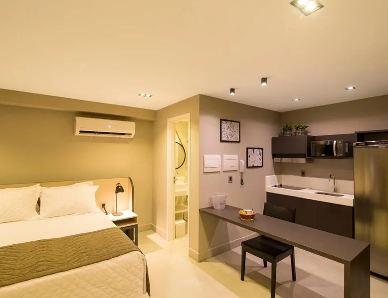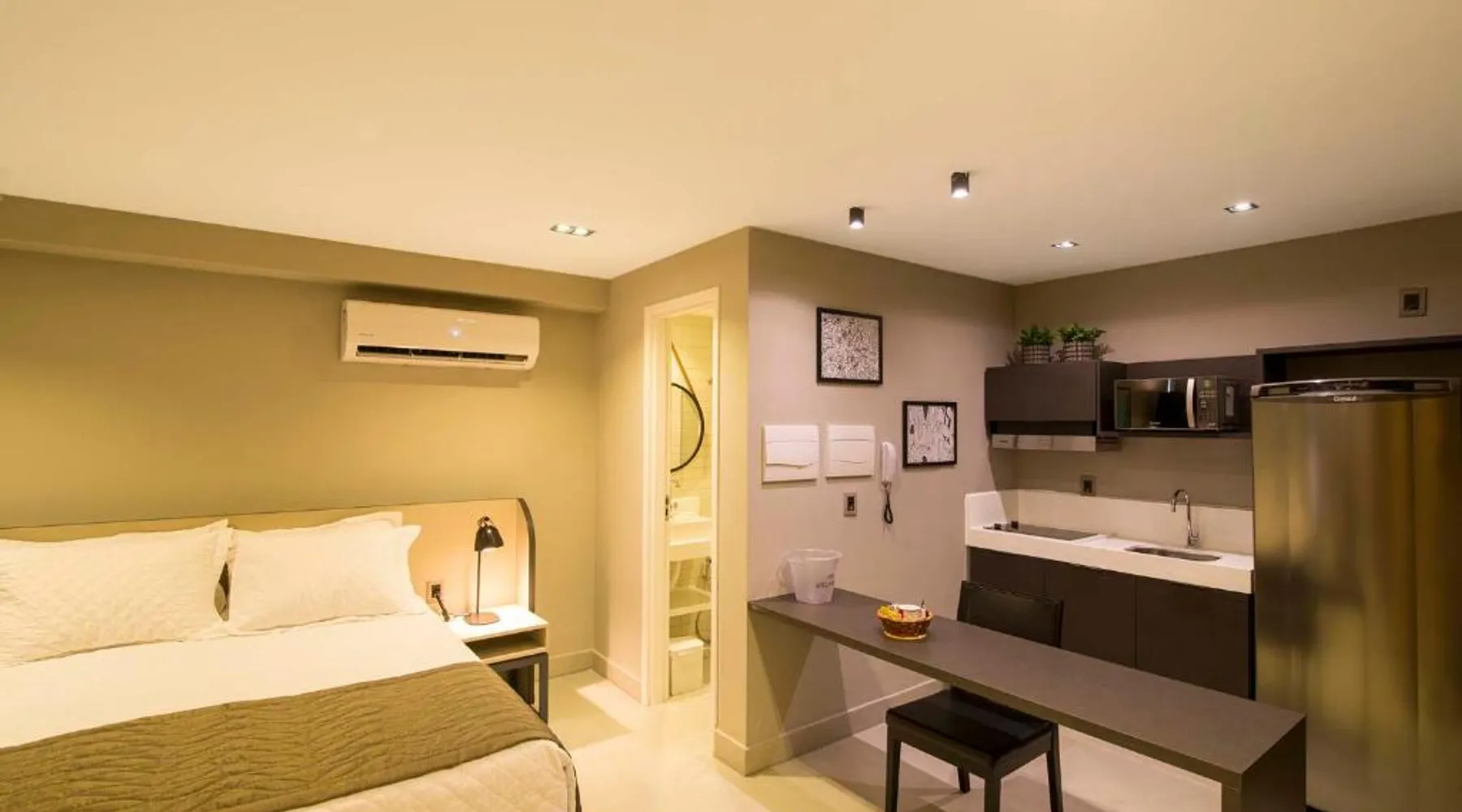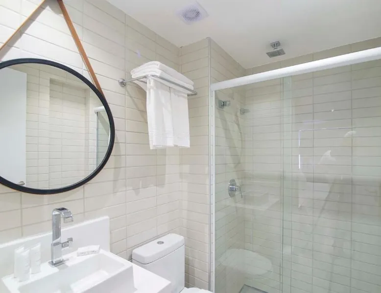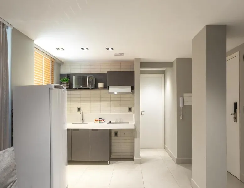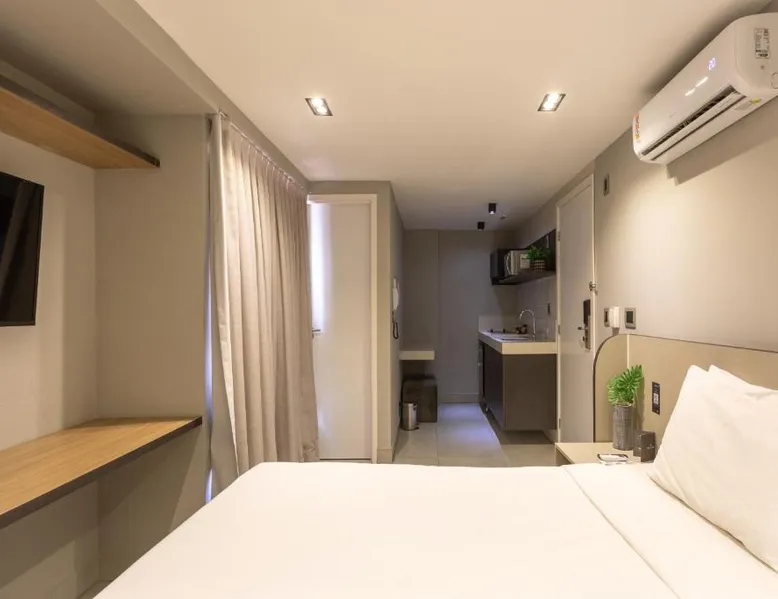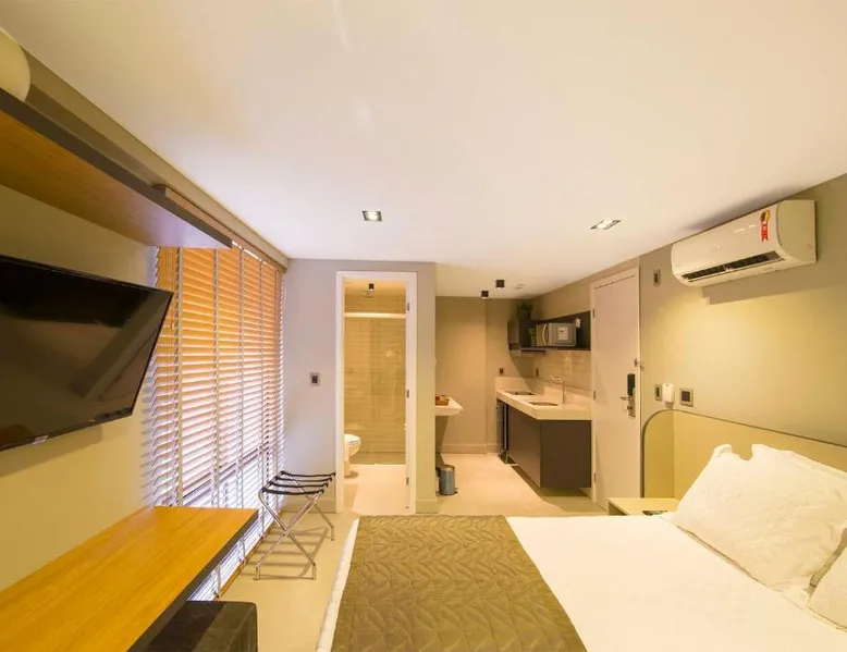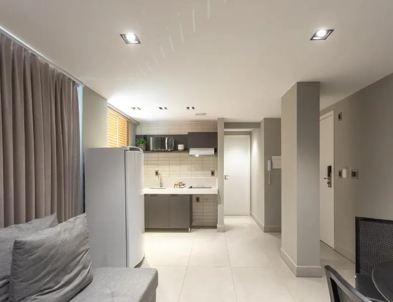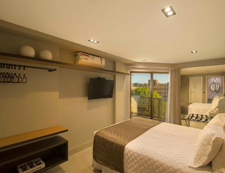 Beachfront Location: Infinity at the Sea by Welkom in João Pessoa offers direct beachfront access and stunning sea views. Guests can relax on the terrace or enjoy the bar, perfect for unwinding by the shore. Comfortable Accommodations: Rooms feature air-conditioning, kitchenettes, private bathrooms, and free toiletries. Additional amenities include mini-bars, microwaves, TVs, soundproofing, and tiled floors, ensuring a comfortable stay. Dining and Leisure: A buffet breakfast is provided each morning, and the hotel provides free WiFi throughout. The terrace and bar offer excellent spaces for relaxation and socializing. Nearby Attractions: Cabo Branco Beach is just a few steps away, while Presidente Castro Pinto International Airport is 11 mi distant. Guests can enjoy scuba diving in the surrounding area. The twin/double room's kitchenette, which features a microwave, is available for cooking and storing food. This air-conditioned twin/double room includes a flat-screen TV with cable channels and a private bathroom.