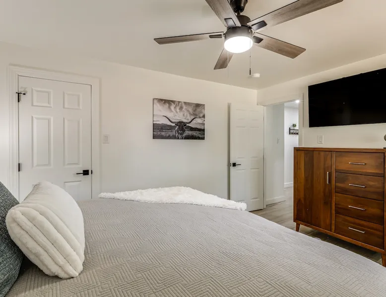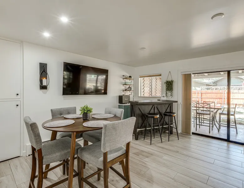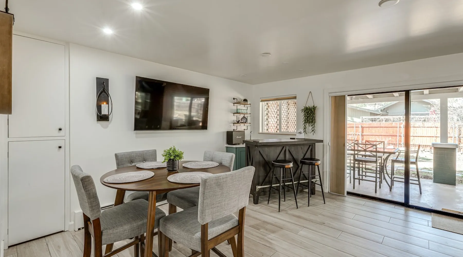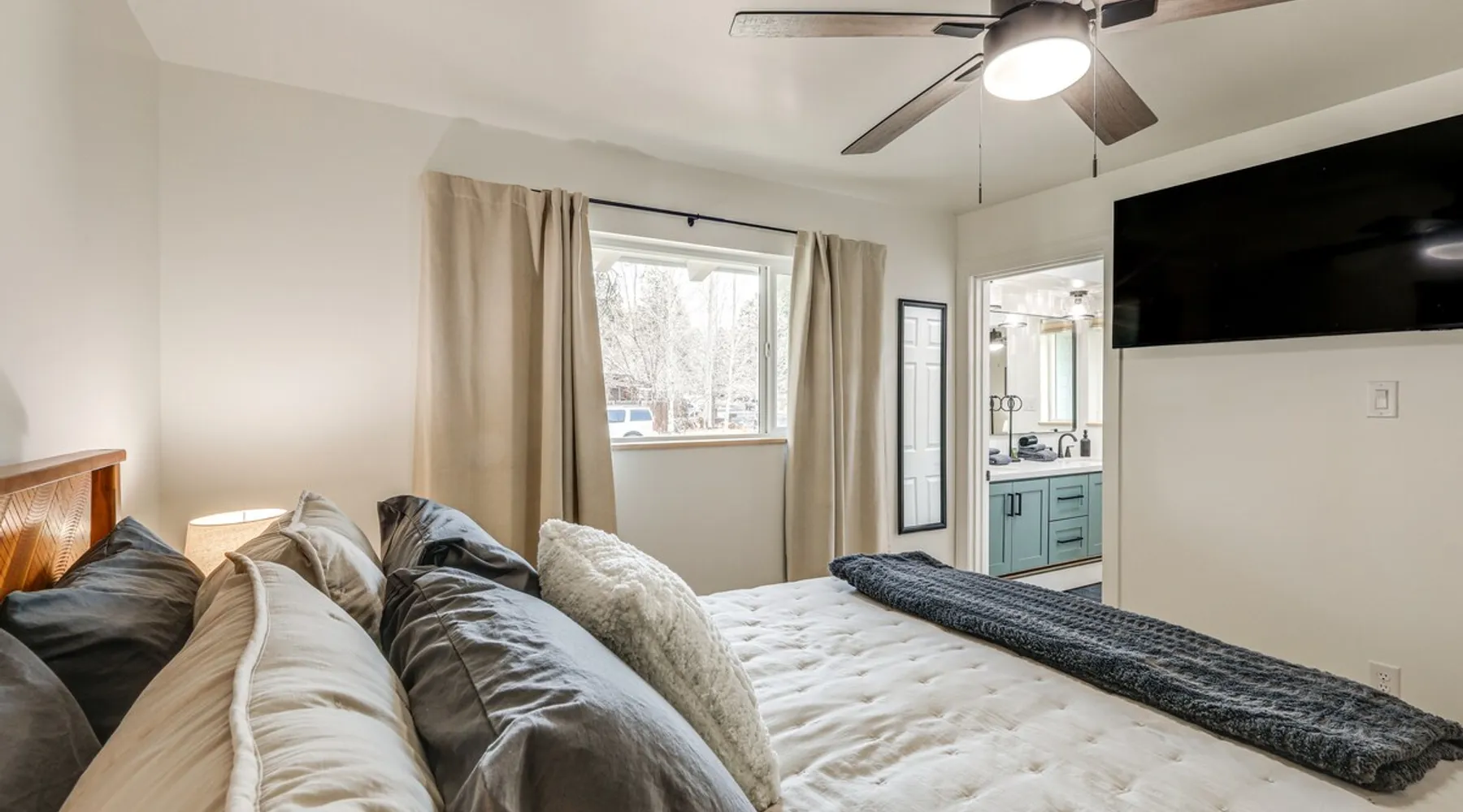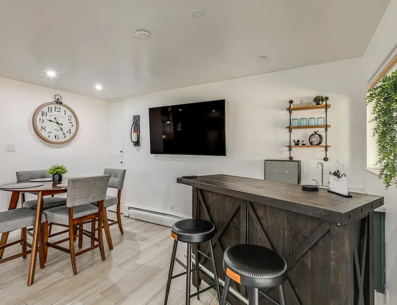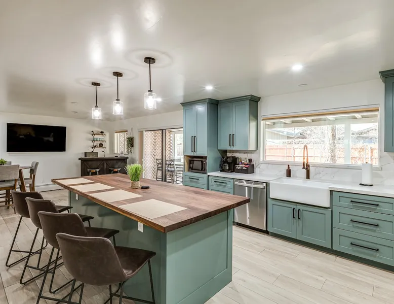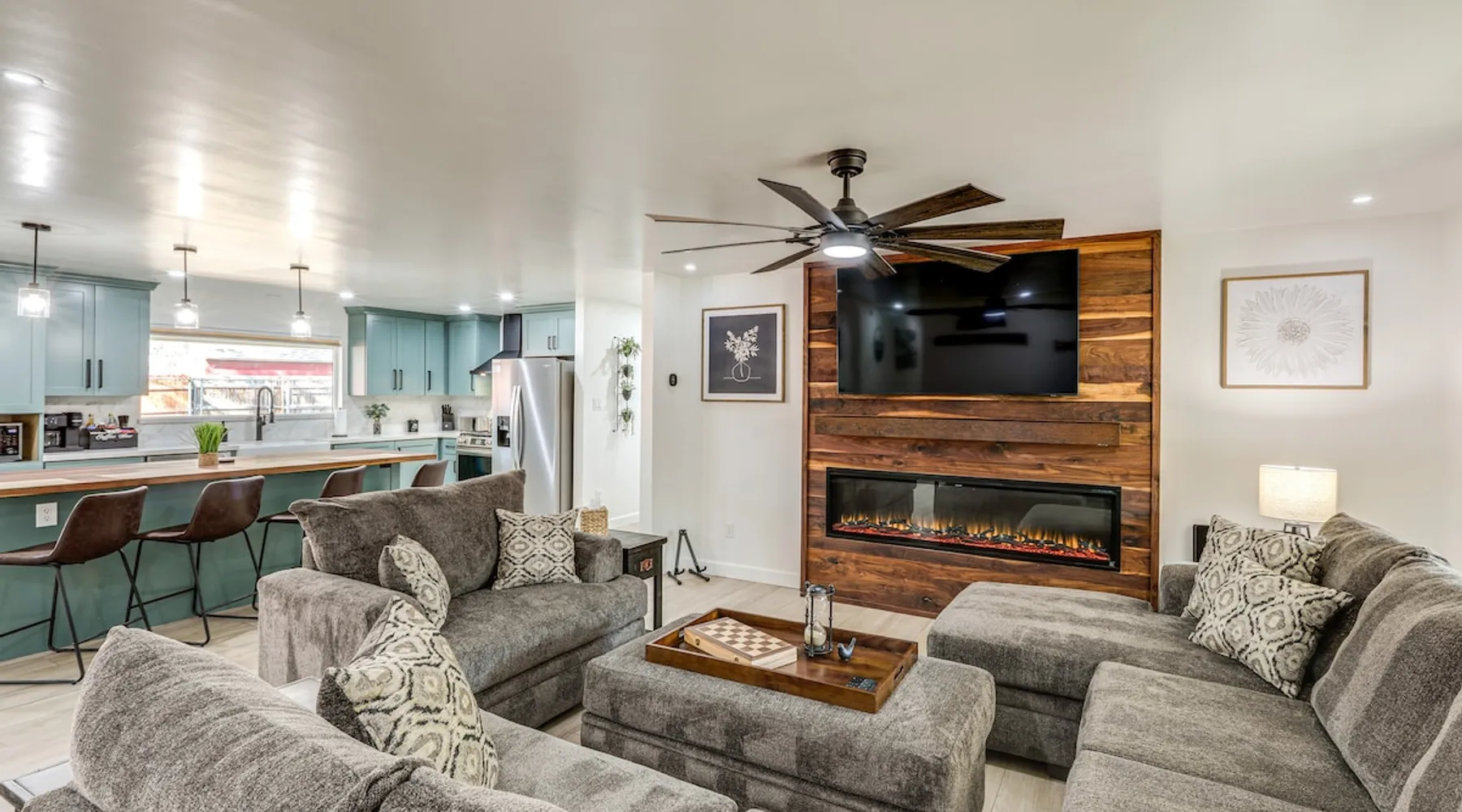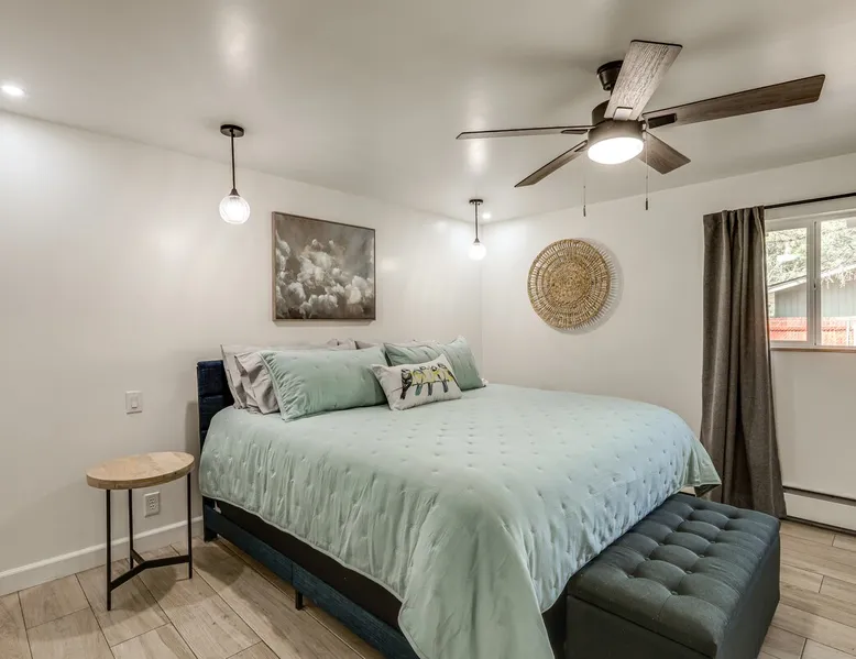 Large Fenced Yard | BBQ Ready | Fireside Relaxation | Pets Welcome w/ Fee Find peace among the tall pines when you stay at this Flagstaff vacation rental. This 5-bedroom, 3-bathroom home makes it easy to explore the beauty and fun of Northern Arizona, whether you want to set out on stunning hikes or walk to downtown for dinner and drinks. When you feel like staying in, fire up the grill while your furry friend runs through the trees or cozy up for a movie night in front of the fireplace. The space TPT-21585849 SLEEPING ARRANGEMENTS - Bedroom 1: 1 king bed - Bedroom 2: 1 king bed - Bedroom 3: 1 queen bed - Bedroom 4: 1 queen bed - Bedroom 5: 1 queen bed - Additional Sleeping: 1 portable crib INDOOR LIVING - Smart TVs w/ cable, bluetooth speaker - Electric fireplace, wet bar - Board games, books - Dining table, high chair - En-suite bathrooms, walk-in showers OUTDOOR LIVING - Covered patio, fire pit table - Outdoor dining set, gas grill - Fenced backyard, cornhole, horseshoes KITCHEN - Refrigerator, stove/oven, microwave, dishwasher - Dual Keurig/drip coffee maker (starter coffee provided) - Toaster, Crockpot, blender, cooking basics, spices - Island w/ bar seating, dishware & flatware GENERAL - Keyless entry, self check-in, free WiFi - Washer & dryer, laundry detergent - Iron/board, trash bags/paper towels - Towels/linens, complimentary toiletries, makeup remover pads, hair dryer, baby tub - Gas heating, portable fans, ceiling fans FAQ - Pet fee (paid pre-trip) - No A/C - Quiet hours (10:00 PM-8:00 AM) - 3 exterior security cameras (facing out) - 4WD/AWD required in winter/snowy weather ACCESSIBILITY - Single-story house, 1 step required to access PARKING - Gravel surface (2 vehicles) - Garage (2 vehicles) - RV/trailer parking allowed - Seasonal street parking Guest access Guests will have access to the entire property via keyless entry Other things to note - No smoking - Pet friendly w/ $100 fee (+ fees & taxes, 2 max) - No events, parties, or large gatherings - Please observe quiet hours from 10:00 PM to 8:00 AM - Additional fees and taxes may apply - Photo ID may be required upon check-in ADDITIONAL INFORMATION - This single-story house requires using 1 step to access - The property does not offer air conditioning - The property has portable fans and ceiling fans - Your safety matters. This property features 3 exterior security cameras. Camera 1 is located on the front porch facing the main entrance. Camera 2 is located at the front of the house facing the driveway. Camera 3 is located at the back of the home facing the rear porch. These cameras do not look into any interior spaces. The cameras record video and sound when activated by motion - Flagstaff experiences significant winter weather, and we want to ensure our guests are well-prepared for snow-related conditions. Please travel with a 4WD/AWD vehicle and carry snow chains if required. Check the weather and road conditions before departing for your trip. Be prepared to shovel walkways or vehicles if snow falls during your stay