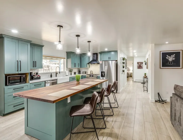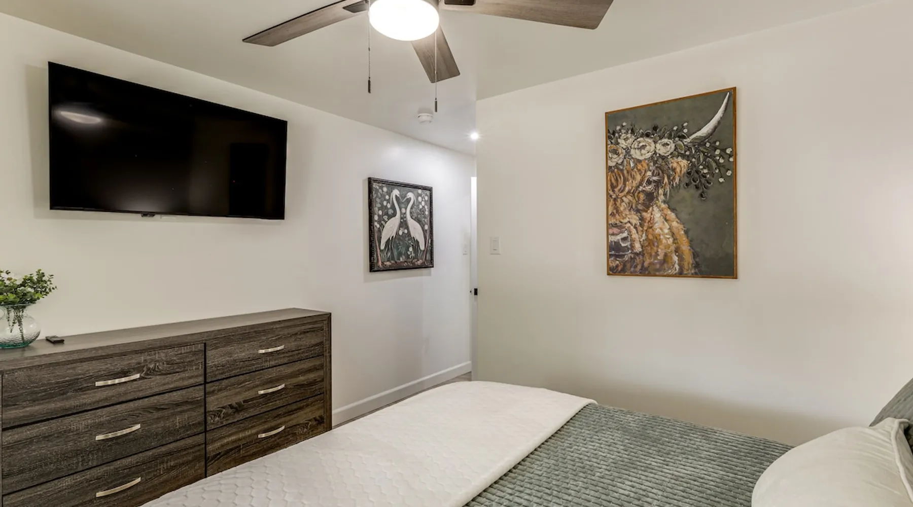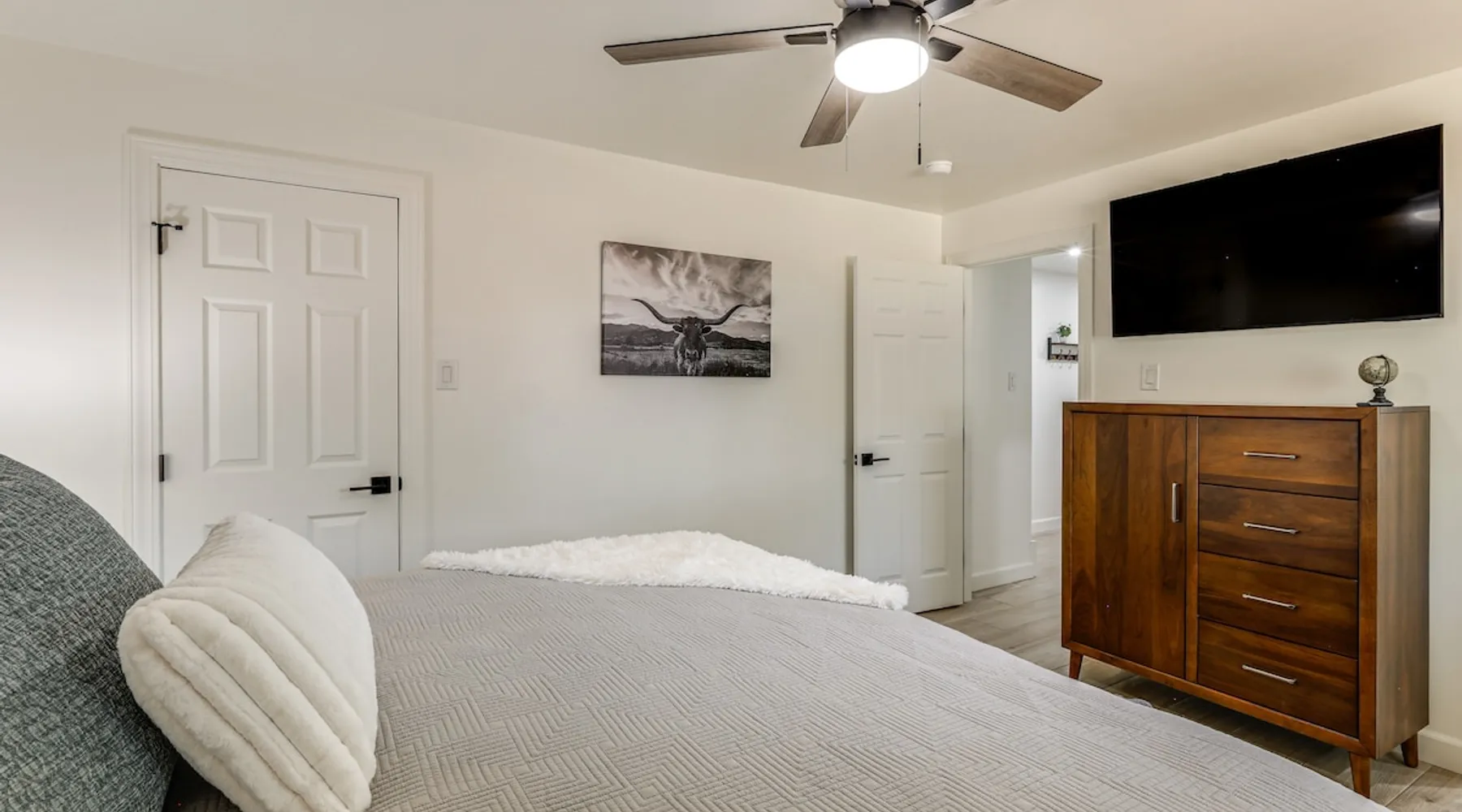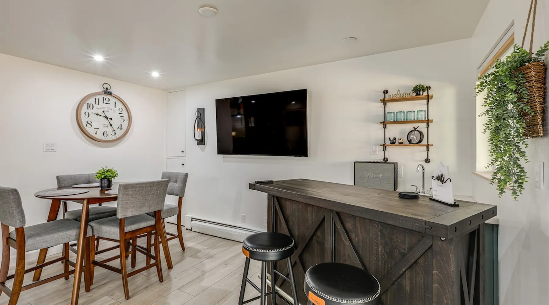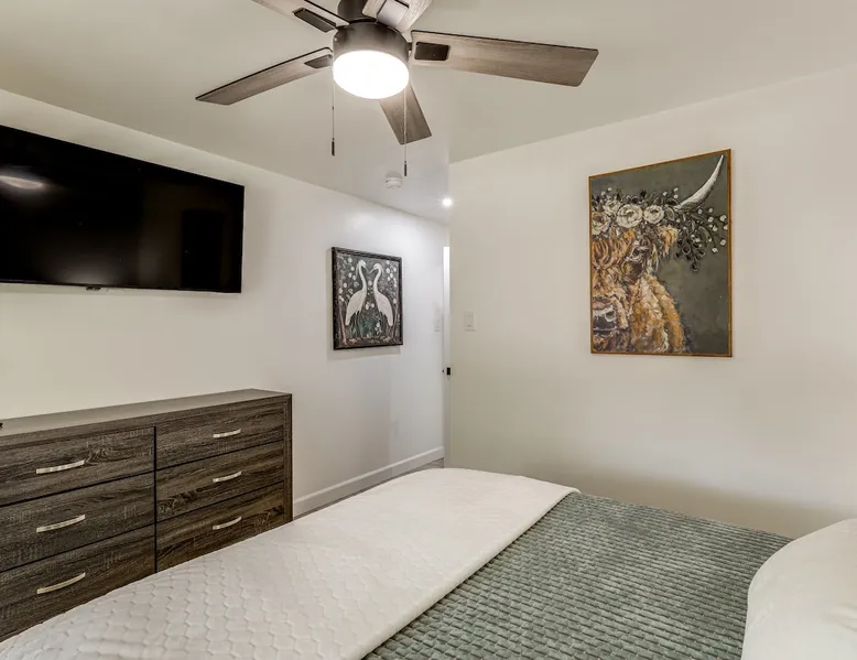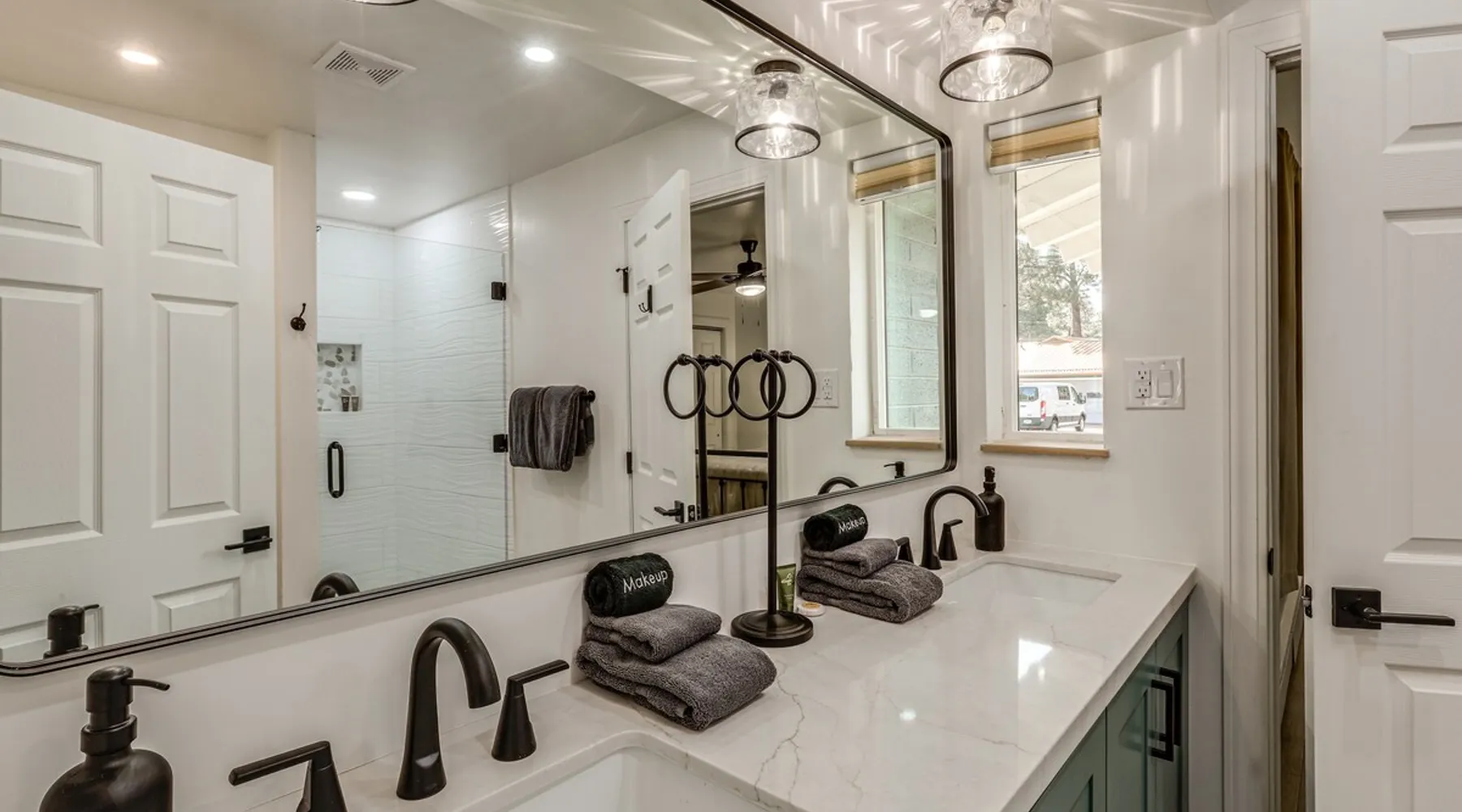 Large Fenced Yard | BBQ Ready | Fireside Relaxation | Pets Welcome w/ Fee Find peace among the tall pines when you stay at this Flagstaff vacation rental. This 5-bedroom, 3-bathroom home makes it easy to explore the beauty and fun of Northern Arizona, whether you want to set out on stunning hikes or walk to downtown for dinner and drinks. When you feel like staying in, fire up the grill while your furry friend runs through the trees or cozy up for a movie night in front of the fireplace. The space TPT-21585849 SLEEPING ARRANGEMENTS - Bedroom 1: 1 king bed - Bedroom 2: 1 king bed - Bedroom 3: 1 queen bed - Bedroom 4: 1 queen bed - Bedroom 5: 1 queen bed - Additional Sleeping: 1 portable crib INDOOR LIVING - Smart TVs w/ cable, bluetooth speaker - Electric fireplace, wet bar - Board games, books - Dining table, high chair - En-suite bathrooms, walk-in showers OUTDOOR LIVING - Covered patio, fire pit table - Outdoor dining set, gas grill - Fenced backyard, cornhole, horseshoes KITCHEN - Refrigerator, stove/oven, microwave, dishwasher - Dual Keurig/drip coffee maker (starter coffee provided) - Toaster, Crockpot, blender, cooking basics, spices - Island w/ bar seating, dishware & flatware GENERAL - Keyless entry, self check-in, free WiFi - Washer & dryer, laundry detergent - Iron/board, trash bags/paper towels - Towels/linens, complimentary toiletries, makeup remover pads, hair dryer, baby tub - Gas heating, portable fans, ceiling fans FAQ - Pet fee (paid pre-trip) - No A/C - Quiet hours (10:00 PM-8:00 AM) - 3 exterior security cameras (facing out) - 4WD/AWD required in winter/snowy weather ACCESSIBILITY - Single-story house, 1 step required to access PARKING - Gravel surface (2 vehicles) - Garage (2 vehicles) - RV/trailer parking allowed - Seasonal street parking Guest access Guests will have access to the entire property via keyless entry Other things to note - No smoking - Pet friendly w/ $100 fee (+ fees & taxes, 2 max) - No events, parties, or large gatherings - Please observe quiet hours from 10:00 PM to 8:00 AM - Additional fees and taxes may apply - Photo ID may be required upon check-in ADDITIONAL INFORMATION - This single-story house requires using 1 step to access - The property does not offer air conditioning - The property has portable fans and ceiling fans - Your safety matters. This property features 3 exterior security cameras. Camera 1 is located on the front porch facing the main entrance. Camera 2 is located at the front of the house facing the driveway. Camera 3 is located at the back of the home facing the rear porch. These cameras do not look into any interior spaces. The cameras record video and sound when activated by motion - Flagstaff experiences significant winter weather, and we want to ensure our guests are well-prepared for snow-related conditions. Please travel with a 4WD/AWD vehicle and carry snow chains if required. Check the weather and road conditions before departing for your trip. Be prepared to shovel walkways or vehicles if snow falls during your stay
