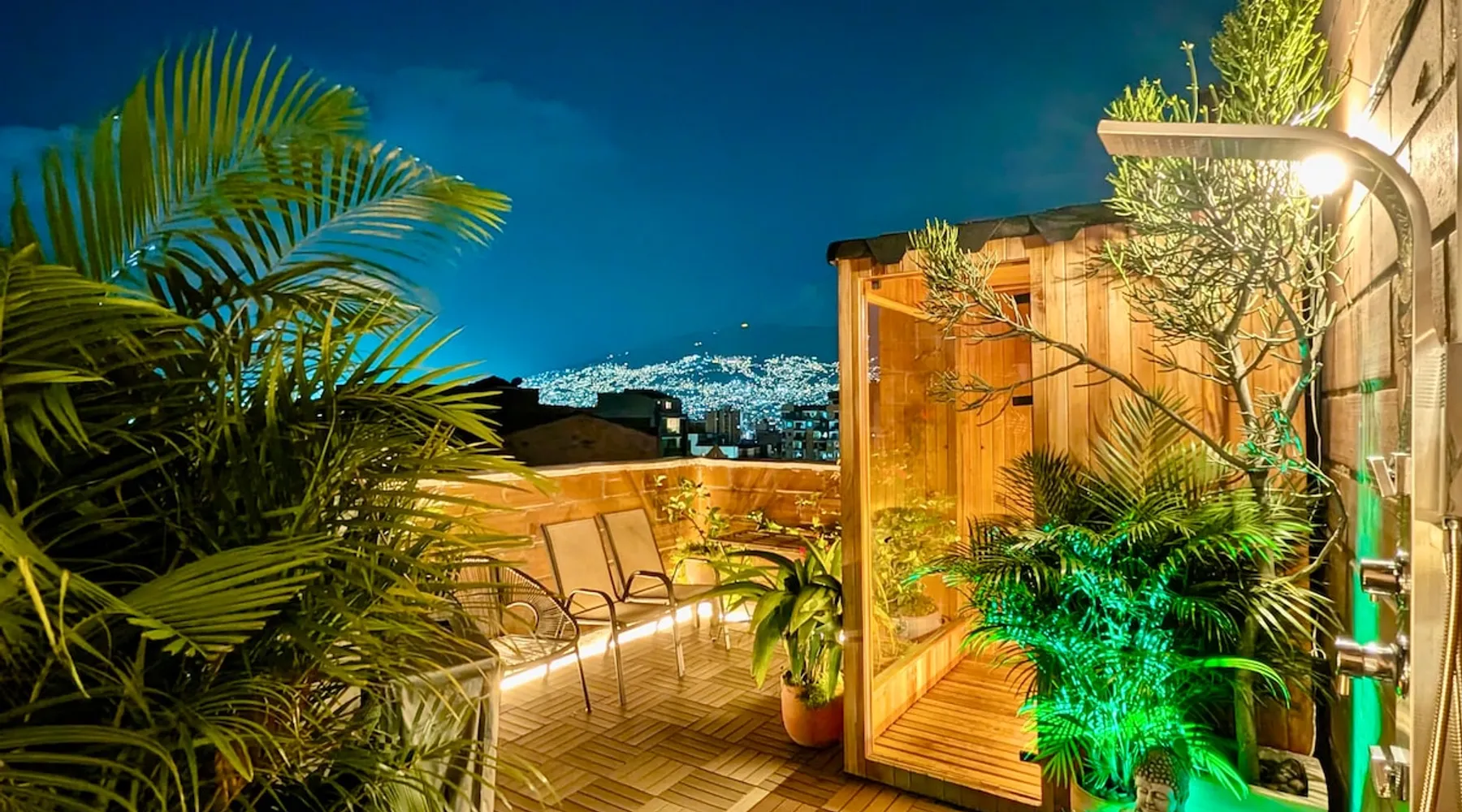 Unwind in your private oasis—featuring a 4-person Harvia sauna, outdoor cold shower, and a peaceful zen garden. ⭐ 120 m² of stylish, remodeled space ⭐ Blazing 700 Mbps fiber internet ⭐ Total privacy—no neighbors, quiet location ⭐ King memory foam bed & high ceilings ⭐ 2 large balconies with natural light ⭐ 2 blocks from Laureles Park ⭐ Smart home tech + secure entry ⭐ Brand new 65" Samsung QNED TV in living room The space Living room Unwind in the elegant living room, where comfort meets sophistication. Stay perfectly cool with air conditioning and a ceiling fan, then immerse yourself in cinematic entertainment on the brand new 65" Samsung Neo Q-LED Smart TV with surround sound. Enjoy complimentary access to Netflix, Prime Video, and Apple TV, or connect your own devices with the provided HDMI cable. Designed with both leisure and productivity in mind, the space also features a handcrafted solid wood workstation paired with a premium ergonomic chair—ideal for working, studying, or simply browsing in style. After a day of exploring, this inviting setting offers the perfect place to relax, recharge, and feel at home. ⭐ Air conditioning (split ductless system) ⭐ Ceiling fan ⭐ HD TV ⭐ Bose Bluetooth sound system ⭐ HDMI cable ⭐ Handmade real wood workstation with a comfortable working chair Kitchen The kitchen is fully equipped with cooking essentials, including an oven, microwave, blender, and an automatic espresso machine by Gaggia, making it easy to prepare meals. ⭐ Oven ⭐ Microwave ⭐ Blender ⭐ Automatic espresso machine (Gaggia) ⭐ Cooking essentials ⭐ Pots, pans, dishes, silverware Master Bedroom Enjoy the spacious master bedroom featuring a California King bed (200 cm x 200 cm), complete with bed linens, a portable AC for added comfort, and a spacious closet. The ensuite bathroom offers privacy and convenience. A handmade real wood workstation with a comfortable working chair is also available, providing an ideal space for work or study. Upon request, the room can be equipped with children's toys and a crib, making it perfect for families traveling with little ones. ⭐ California King bed (200 cm x 200 cm) ⭐ Bed linens ⭐ Portable AC ⭐ Spacious closet ⭐ Ensuite bathroom (towels, hair dryer, iron and ironing board, hair straightener, lighted makeup mirror—all provided) ⭐ Handmade real wood workstation with a comfortable working chair ⭐ Crib and children’s toys available upon request Bedroom #2 Bedroom 2 comes with cozy bed linens, a spacious closet, ample clothing storage, and extra pillows and blankets for your convenience. It also features a handmade real wood workstation and a comfortable working chair for a peaceful work or study environment. ⭐ Bed linens ⭐ Spacious closet ⭐ Clothing storage ⭐ Extra pillows and blankets ⭐ Handmade real wood workstation with a comfortable working chair Bedroom #3 Bedroom 3 also features comfortable bedding, a spacious closet, and sufficient storage, ensuring a restful stay for all guests. ⭐ Bed linens ⭐ Spacious closet ⭐ Clothing storage ⭐ Extra pillows and blankets ⭐ 48" LG tv with Netflix Laundry Conveniently located washer and dryer for your use during your stay. ⭐ Washer ⭐ Dryer Garden Step outside to your private, fully fenced garden — a serene outdoor space featuring a private sauna, a refreshing outdoor shower, and a peaceful zen garden designed for relaxation and mindfulness. ⭐ Private garden ⭐ Fully fenced ⭐ Private sauna ⭐ Outdoor shower ⭐ Zen garden Guest access Guests will have easy access to Medellín's Metro System (Estadio Station) . Cerro Nutibara, Pueblito Paisa, and Parques del Río are all nearby. Parque Lleras, Comuna 13, and Graffitur are also within 15 minutes each while enjoy the convenience of staying in a safe and quiet neighborhood. Other things to note Check-in is at 3 pm or later Check out the latest by 11 am Early check-in can be arranged for an additional fee of $40 (upon availability) Late check-out till can be arranged for an additional $40 (upon availability) security cameras at the apartment entrance/elevator/parking lot, and building entrance SAUNA LIABILITY WAIVER AND USAGE AGREEMENT As a guest, you acknowledge and agree to the following terms regarding the use of the sauna provided at this property: Health and Safety Use of the sauna is at your own risk. Pregnant women, individuals under the influence of alcohol, marijuana, tobacco, or drugs, and those with pre-existing health conditions should not use the sauna. Shower before using the sauna to maintain hygiene. Do not wear jewelry or necklaces inside the sauna, as they may overheat and cause burns. The host is not responsible for any injury, illness, or adverse health effects resulting from sauna use. Usage Guidelines Always use towels when in the sauna. Please use the sauna for no more than 2 hours daily; it takes about 30-40 min to heat up , leaving you more than enough time to use it. always make sure to turn off when done. The temperature should not be set above 175°F (80 °C). Pour water on the sauna rocks only with the provided bowl and spoon. One spoon is enough; it will create a lot of steam. Do not use oils, essential oils, or any other additives in the water, or chemicals for cleaning, please. Post-Use Care After using the sauna, turn off the heater. Wipe down the benches with the microfiber towel provided and special cleaning spray (red bottle) Leave the sauna door open to let dry for a few minutes if wet. Be cautious when walking on the terrace after sauna use—it may be slippery. Wear appropriate footwear to avoid slipping and injury. Damage and Cleaning Fees Guests are liable for any damage caused by misuse of the sauna. By using the sauna, you confirm that you understand and accept these terms. Failure to follow them may result in additional charges and/or loss of amenity access. Registration Details 85935