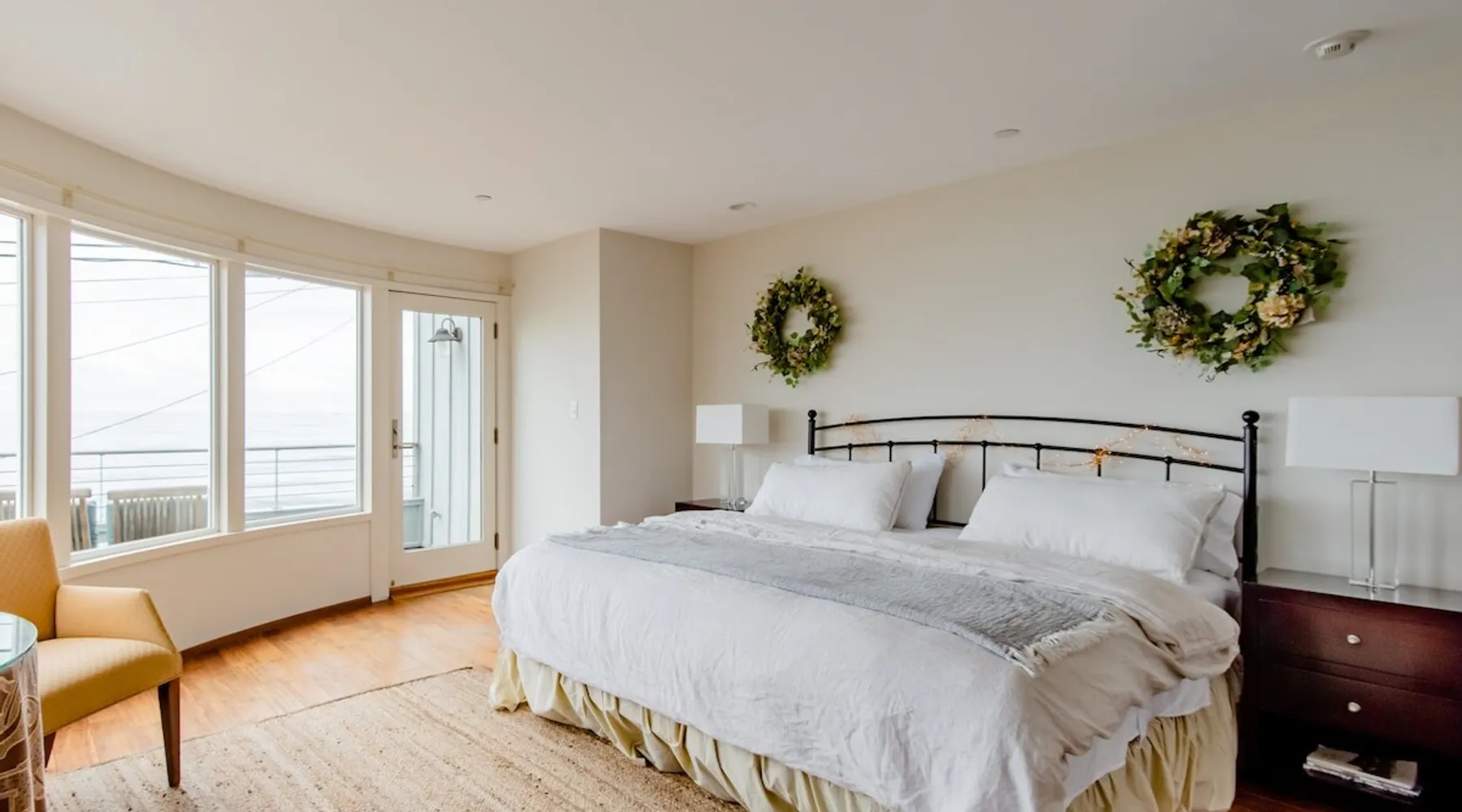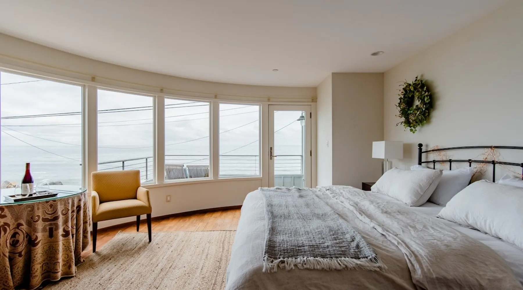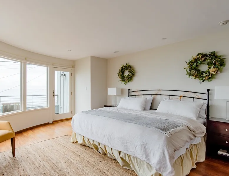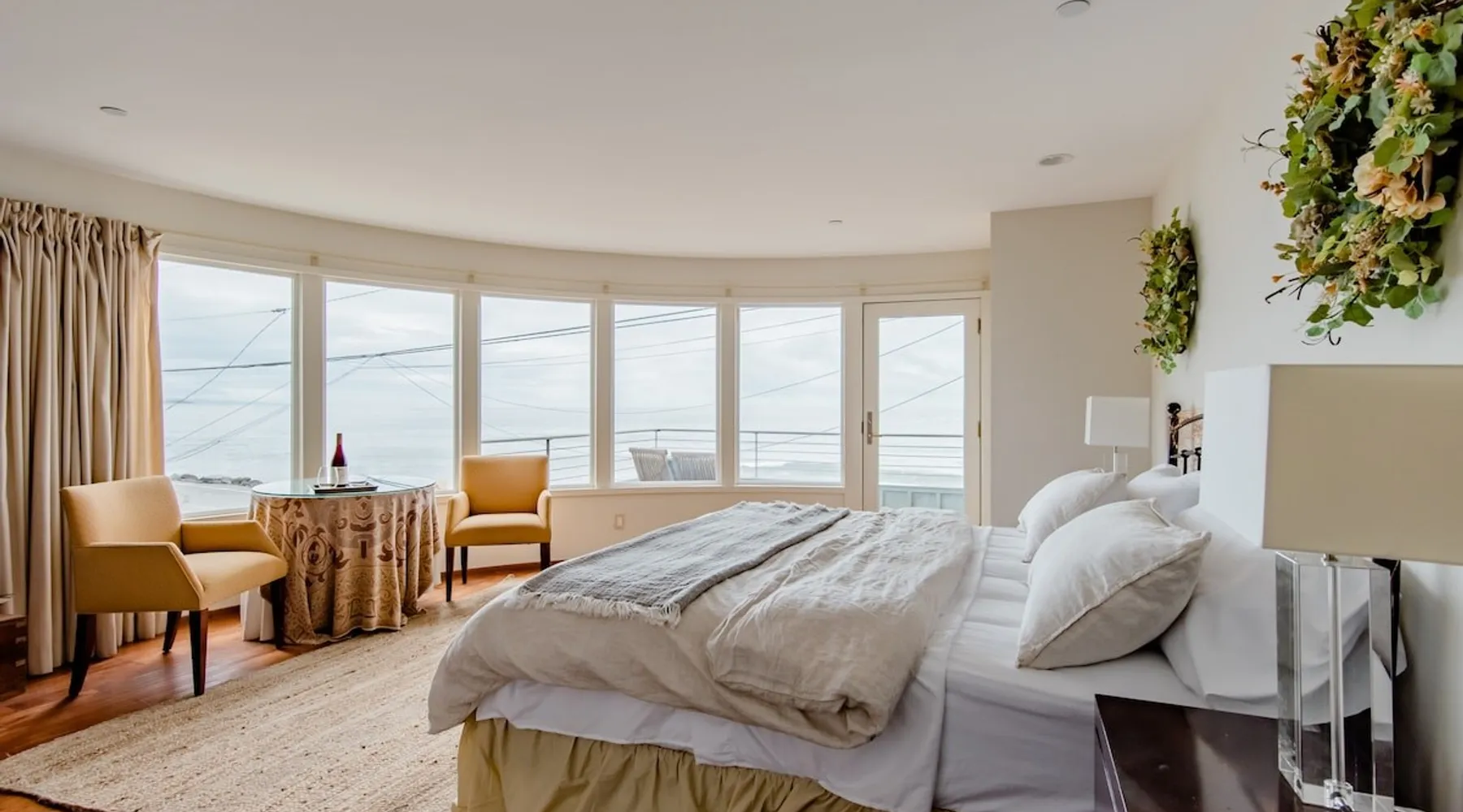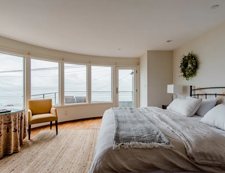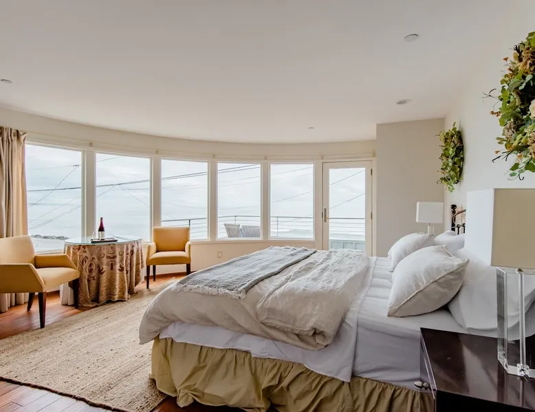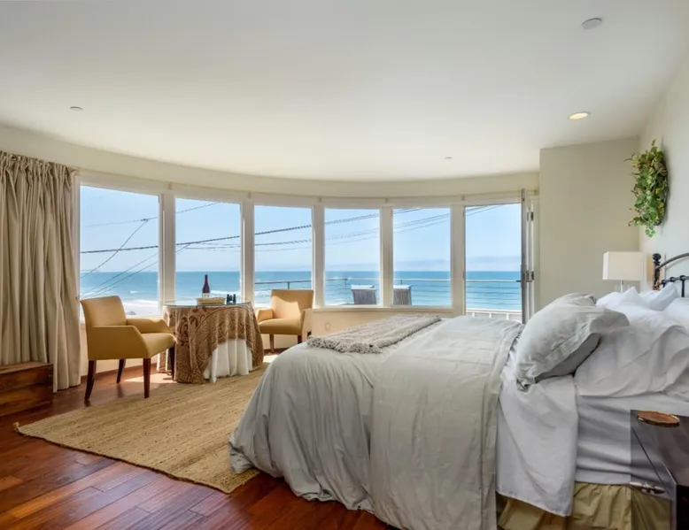 A luxurious private suite just steps from Miramar Beach. From your balcony, look for whales, dolphins, or frolicking sea lions while sipping on your complimentary bottle of wine from California's nearby wine country. Enjoy the shared ground-level lounging area with oceanfront and coastal views. Tranquil and peaceful, you'll find miles of walking trails, sandy beaches, surfing, paddle boarding, bicycling, all nearby. The space Discover the Wave House - a perfect blend of comfort and privacy, featuring two fully separate suites. Book one of the suites or both! Unlike a typical shared home where the owner resides and shares the space, our accommodation offers an experience akin to a boutique hotel. Each suite is designed to provide you with your own personal space and includes a private bedroom with sweeping views of the Pacific Ocean, a private balcony, and a spacious bathroom. Additionally, guests will have access to a common lounge area, perfect for socializing or enjoying a quiet moment. The Wave House is perfectly situated on the breathtaking Northern California coast. This idyllic retreat combines oceanfront tranquility with unbeatable proximity to some of the area's most iconic attractions. Step outside to find yourself immersed in the natural beauty of Half Moon Bay. With easy access to multiple hiking and biking trails, including the renowned California Coastal Trail, you can explore dramatic cliffs, pristine beaches, and stunning ocean vistas. Visit famous surf spots like Mavericks and the Fitzgerald Marine Reserve to experience the raw power of the Pacific and the fascinating tide pools brimming with marine life. For art enthusiasts, the nearby downtown area boasts a variety of art galleries showcasing local talent and creativity, adding a cultural touch to your stay. Food lovers will rejoice in the diverse dining options just steps away. Savor fresh seafood at the legendary Miramar Beach Restaurant or indulge in coastal favorites at Sam's Chowder House. For a touch of culture and live music, the Bach Dancing & Dynamite Society—a local gem—is less than a minute’s walk from your door. Convenience meets relaxation with this property’s enviable location. Just less than an hour's drive from San Francisco Bay Area and Silicon Valley, you’ll find it an easy drive from both urban hubs and a perfect escape from the city. Whether you’re seeking outdoor adventures, cultural discoveries, culinary delights, or a retreat by the ocean, Wave House offers it all. During your stay While we (property manager or owners) may occasionally be on the premises, we aim to respect your privacy and ensure a welcoming, comfortable stay. You may run into us during your stay, but we will always tailor our interactions based on your preferences. Whether you prefer minimal contact or enjoy engaging conversations, we are here to accommodate your needs. Feel free to reach out to us if you require any assistance or have questions. Otherwise, we are more than happy to stay in the background to let you enjoy your stay uninterrupted. Other things to note This Wave House suite offers a stunning panorama of the Pacific Ocean and the California Coast through its expansive bank of windows, creating a light-filled, serene retreat. Please note that these large windows also bring in abundant sunshine, which can warm the space during the spring and summer. While the suite does not have air conditioning, we provide a portable fan for your comfort. Additionally, opening the balcony door invites the cool ocean breeze into the room, offering natural ventilation and enhancing the sensory experience of being by the sea. We hope you’ll find the combination of breathtaking views, the fresh coastal air, and the tranquil sounds of the waves to be a truly special part of your stay.