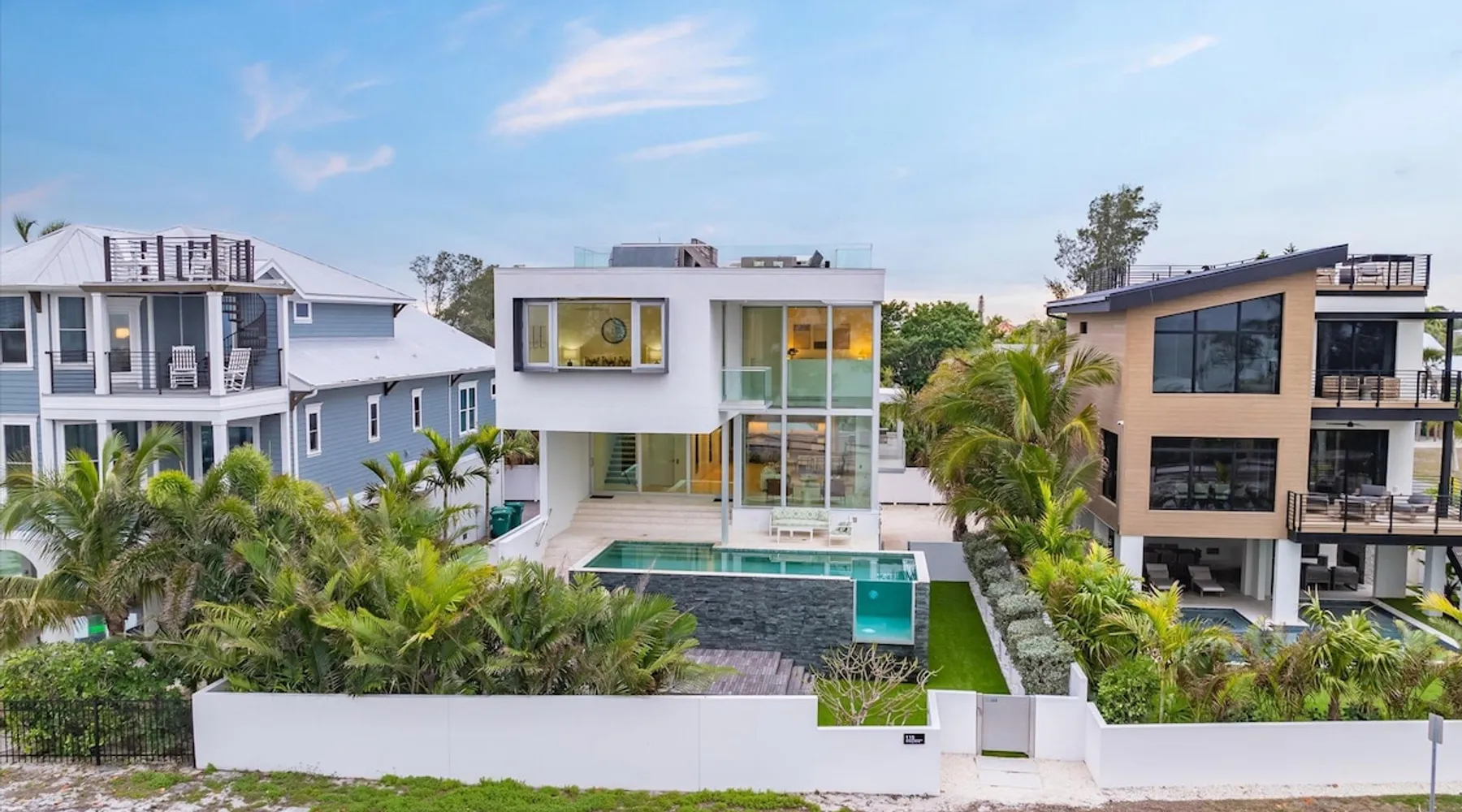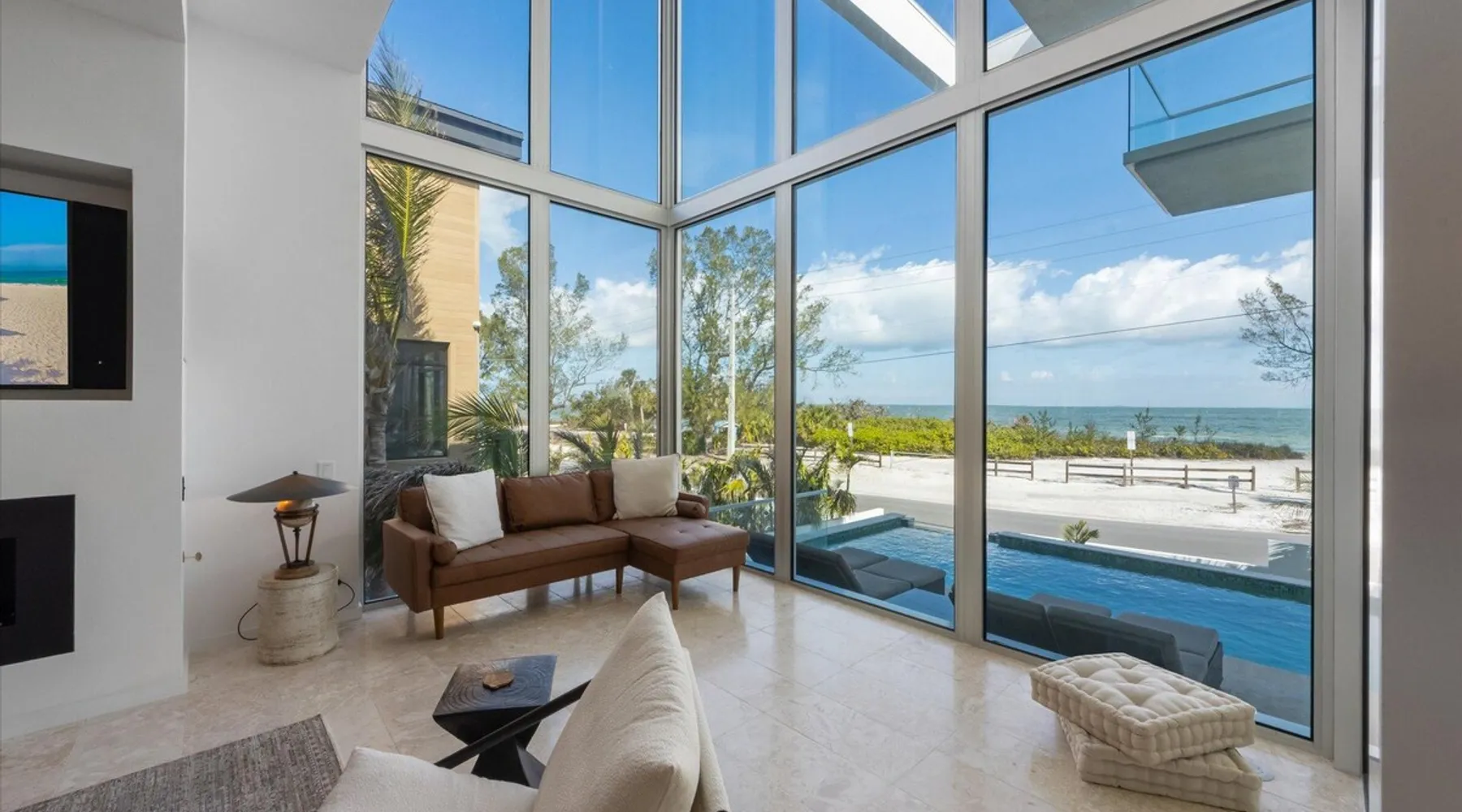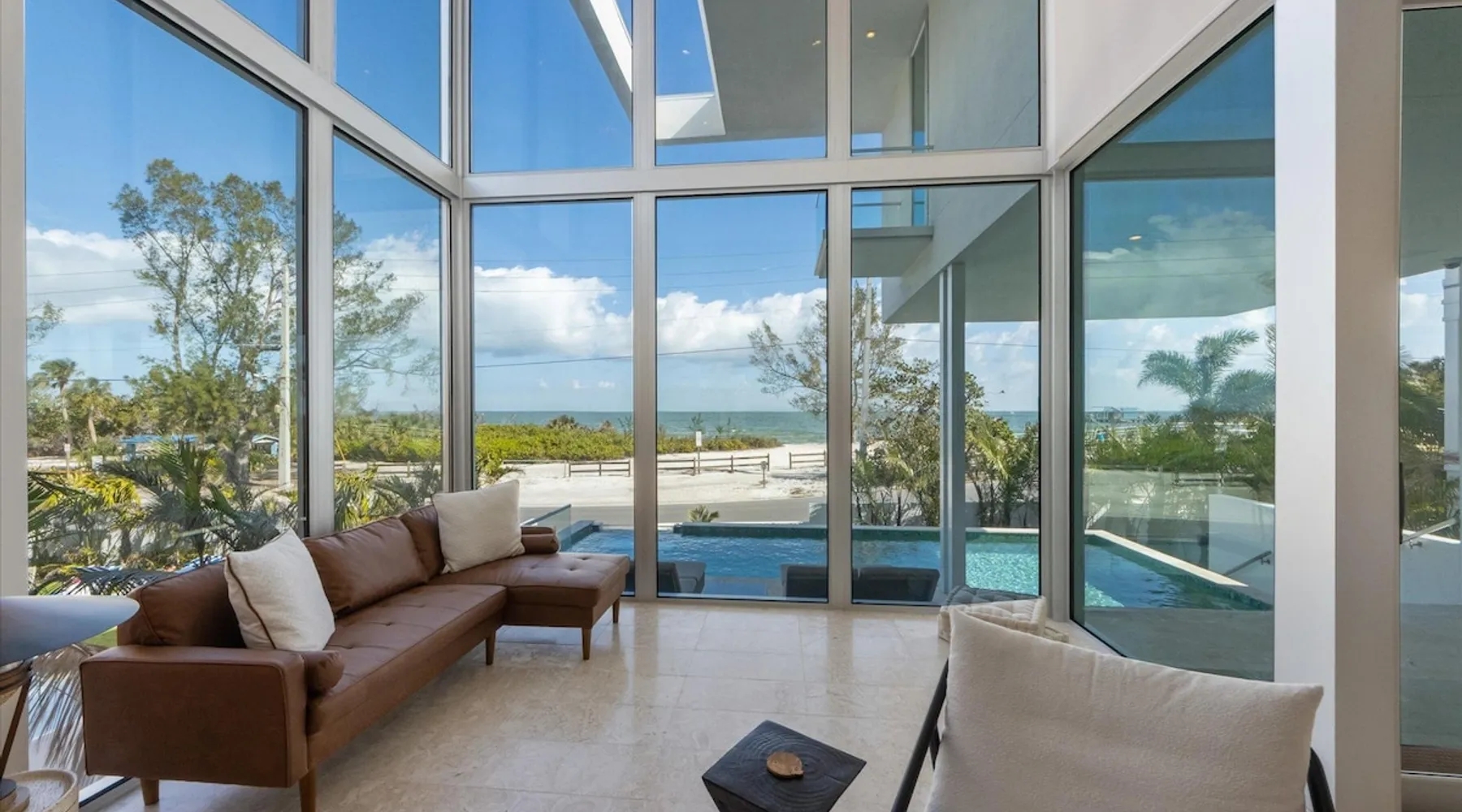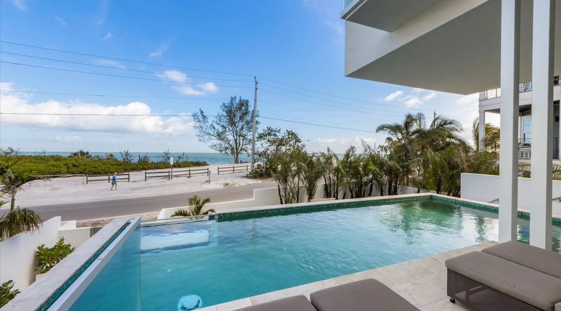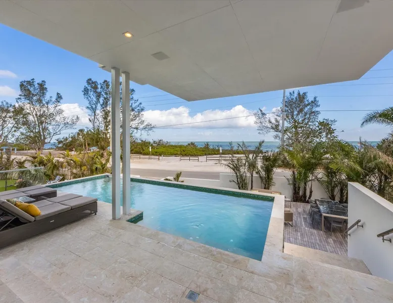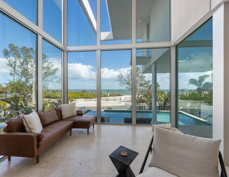 3 bedroom, 3 bathroom luxury home with bonus room, rooftop deck, heated pool, central location and more! The space Welcome to The Glass House by the Beach, a luxurious modern vacation retreat on Anna Maria Island, designed to immerse you in breathtaking views and ultimate comfort. With its striking floor-to-ceiling atrium windows, this home bathes the spacious main living area in natural light, creating a serene oasis that seamlessly blends indoor and outdoor living. This elegant getaway features three beautifully appointed bedrooms, each with its own ensuite bathroom, plus a versatile loft with a queen murphy bed, comfortably accommodating up to eight guests. Whether you're relaxing in the rooftop spa or taking in the panoramic views of Tampa Bay, the Anna Maria City Pier, and the iconic Sunshine Skyway Bridge from the rooftop deck, every moment here is crafted for relaxation and awe. Step outside to discover a heated pool with a unique pool window, adding a touch of fun and sophistication to your swim. The ground-level dining and lounge area, complete with a cozy fire table, is the perfect spot for evening gatherings and making memories under the stars. Nestled in a central location, The Glass House by the Beach is just a short stroll from Pine Avenue's charming shops, delightful restaurants, and vibrant local attractions. Experience the best of Anna Maria Island in style—book your stay today! DISCLOSURES: For security and insurance purposes, there are exterior-only video cameras on the premises. The living room fireplace is non-functional. The rooftop kitchen is disabled for safety. Note there is a functional outdoor kitchen off the dining room. PETS: This property is NOT pet friendly. PARKING: 4 cars* maximum are able to park at this home and the driveway is shared with two other homes. We ask our guests to please plan accordingly and coordinate with your group. There is no overnight parking available for additional vehicles. The shared driveway may not be blocked at any time for any reason. *Garage bays are narrow - large/oversize vehicles will not fit. There is one open area to the left of the garage bays to park larger vehicles. ***OVERCROWDING CONSEQUENCES*** Maximum occupancy of rental homes on Anna Maria Island are set by the Cities and are strictly enforced. An occupant is any person staying overnight, regardless of the number of nights. Due to recent issues of overcrowding in the area, if maximum occupancy is exceeded during your stay, a $1000 (one thousand dollar) overcrowding fee will be charged to the payment method on file and your party will be immediately evicted. We appreciate your understanding and cooperation to keep Anna Maria Island enjoyable for everyone. "You are vacationing in a residential area. Please be a good neighbor by keeping the noise to a respectful level during the day and night. Excessive and unreasonable noise can deprive neighbors of the peaceful enjoyment of their private property." *Exceeding the noise ordinance could result in disciplinary actions including fines and/or termination of your rental agreement without refund.