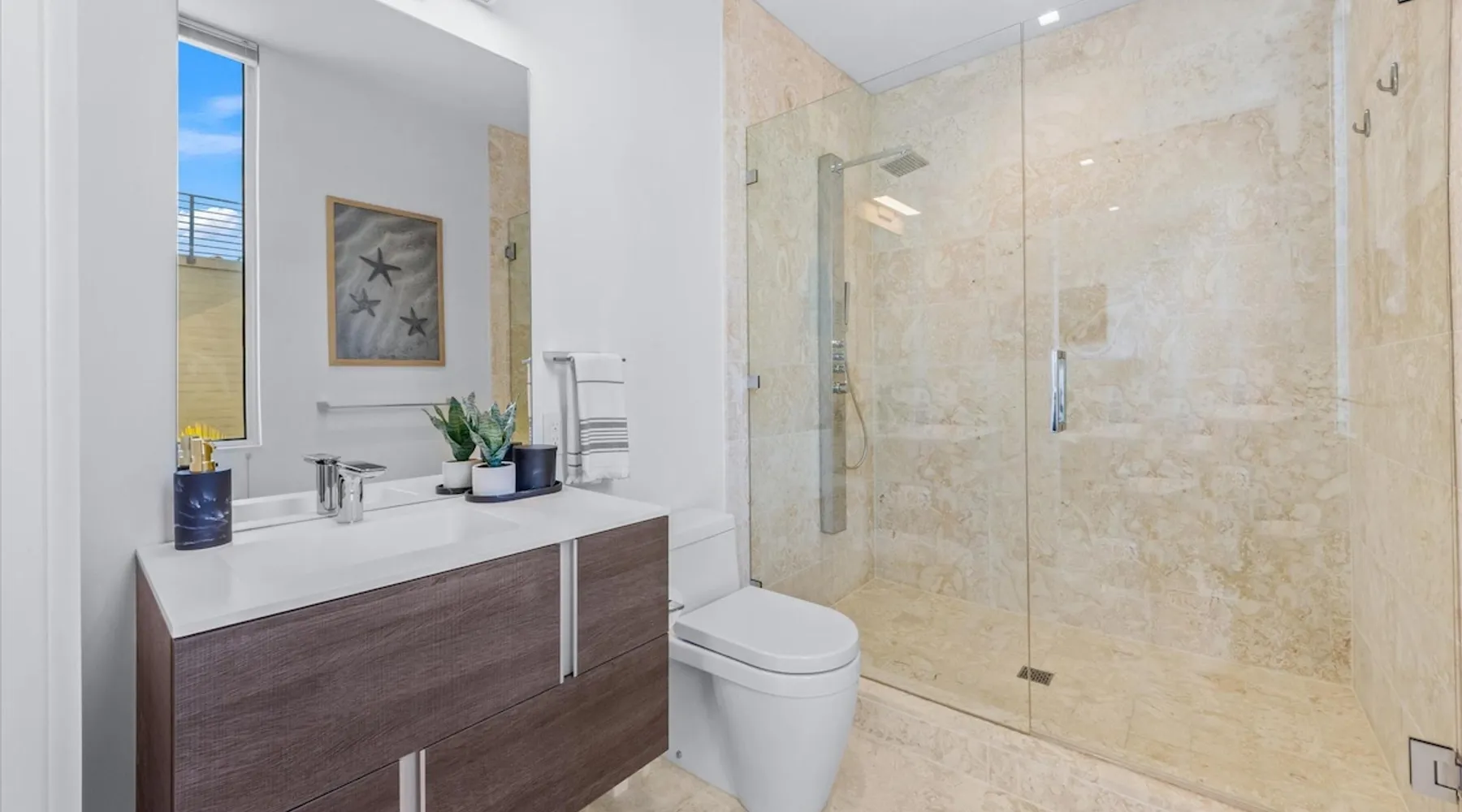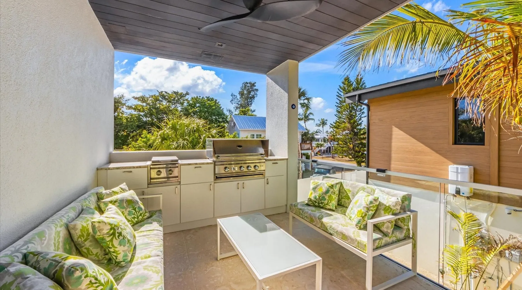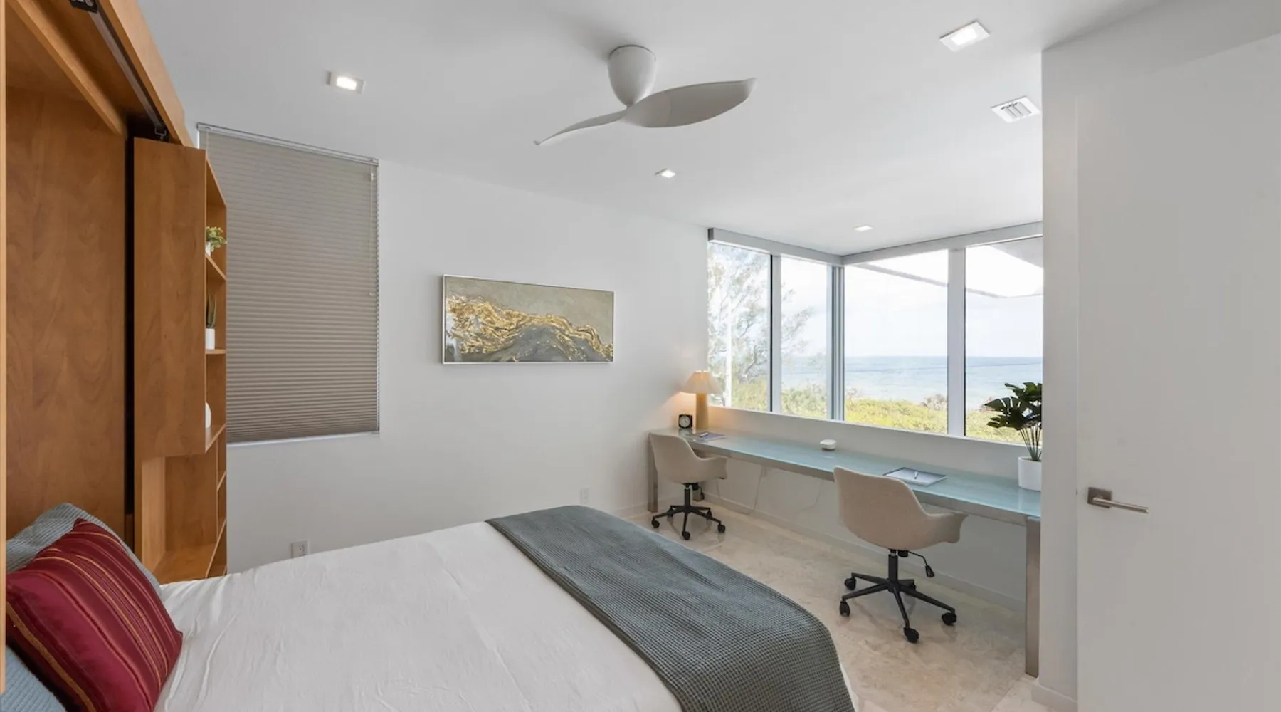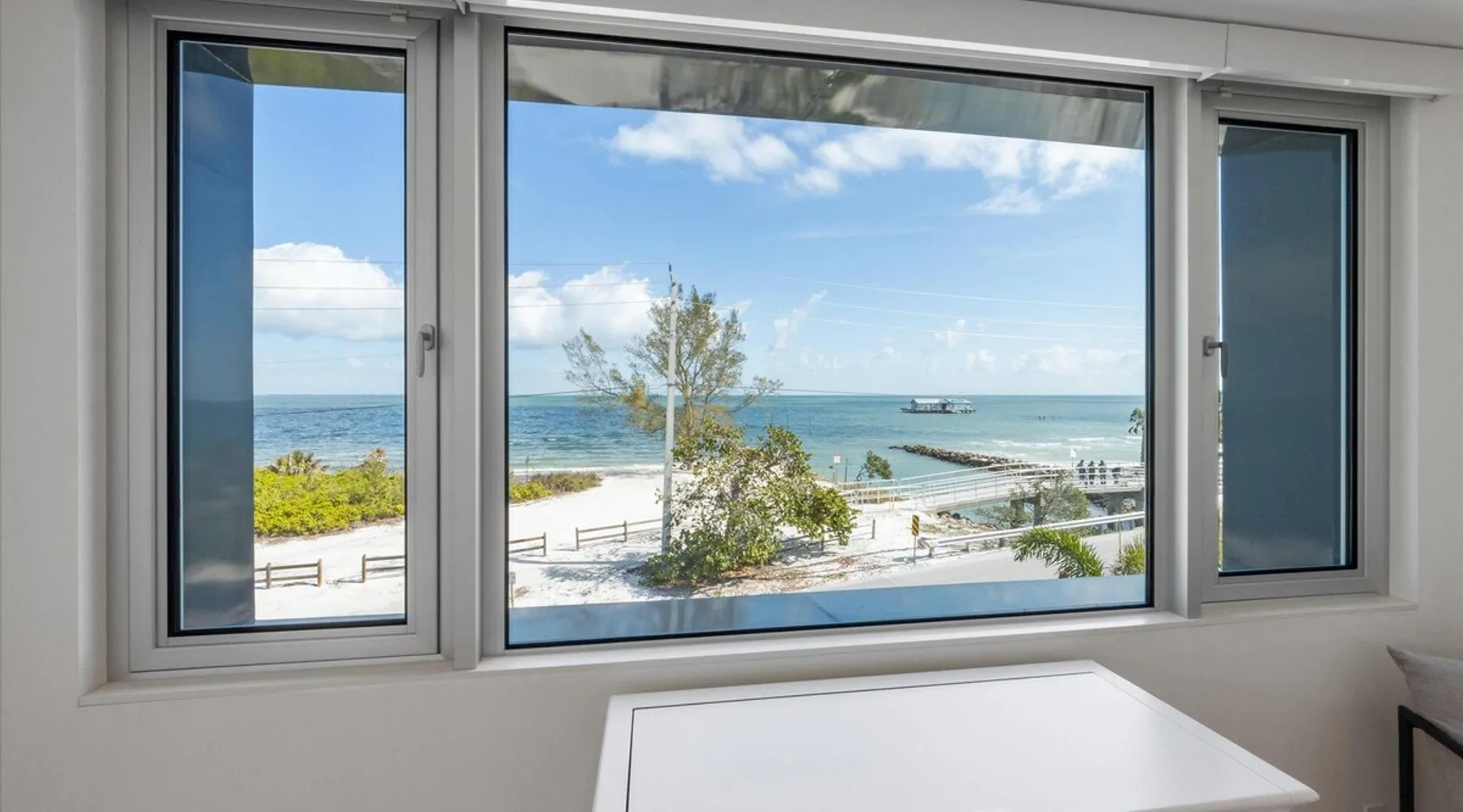 3 bedroom, 3 bathroom luxury home with bonus room, rooftop deck, heated pool, central location and more! The space Welcome to The Glass House by the Beach, a luxurious modern vacation retreat on Anna Maria Island, designed to immerse you in breathtaking views and ultimate comfort. With its striking floor-to-ceiling atrium windows, this home bathes the spacious main living area in natural light, creating a serene oasis that seamlessly blends indoor and outdoor living. This elegant getaway features three beautifully appointed bedrooms, each with its own ensuite bathroom, plus a versatile loft with a queen murphy bed, comfortably accommodating up to eight guests. Whether you're relaxing in the rooftop spa or taking in the panoramic views of Tampa Bay, the Anna Maria City Pier, and the iconic Sunshine Skyway Bridge from the rooftop deck, every moment here is crafted for relaxation and awe. Step outside to discover a heated pool with a unique pool window, adding a touch of fun and sophistication to your swim. The ground-level dining and lounge area, complete with a cozy fire table, is the perfect spot for evening gatherings and making memories under the stars. Nestled in a central location, The Glass House by the Beach is just a short stroll from Pine Avenue's charming shops, delightful restaurants, and vibrant local attractions. Experience the best of Anna Maria Island in style—book your stay today! DISCLOSURES: For security and insurance purposes, there are exterior-only video cameras on the premises. The living room fireplace is non-functional. The rooftop kitchen is disabled for safety. Note there is a functional outdoor kitchen off the dining room. PETS: This property is NOT pet friendly. PARKING: 4 cars* maximum are able to park at this home and the driveway is shared with two other homes. We ask our guests to please plan accordingly and coordinate with your group. There is no overnight parking available for additional vehicles. The shared driveway may not be blocked at any time for any reason. *Garage bays are narrow - large/oversize vehicles will not fit. There is one open area to the left of the garage bays to park larger vehicles. ***OVERCROWDING CONSEQUENCES*** Maximum occupancy of rental homes on Anna Maria Island are set by the Cities and are strictly enforced. An occupant is any person staying overnight, regardless of the number of nights. Due to recent issues of overcrowding in the area, if maximum occupancy is exceeded during your stay, a $1000 (one thousand dollar) overcrowding fee will be charged to the payment method on file and your party will be immediately evicted. We appreciate your understanding and cooperation to keep Anna Maria Island enjoyable for everyone. "You are vacationing in a residential area. Please be a good neighbor by keeping the noise to a respectful level during the day and night. Excessive and unreasonable noise can deprive neighbors of the peaceful enjoyment of their private property." *Exceeding the noise ordinance could result in disciplinary actions including fines and/or termination of your rental agreement without refund.
