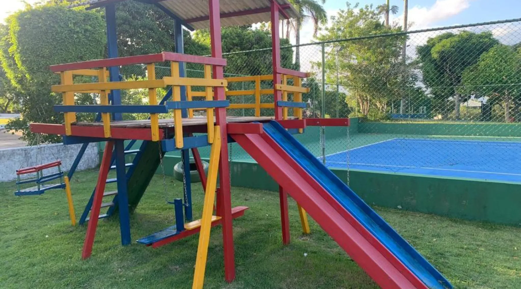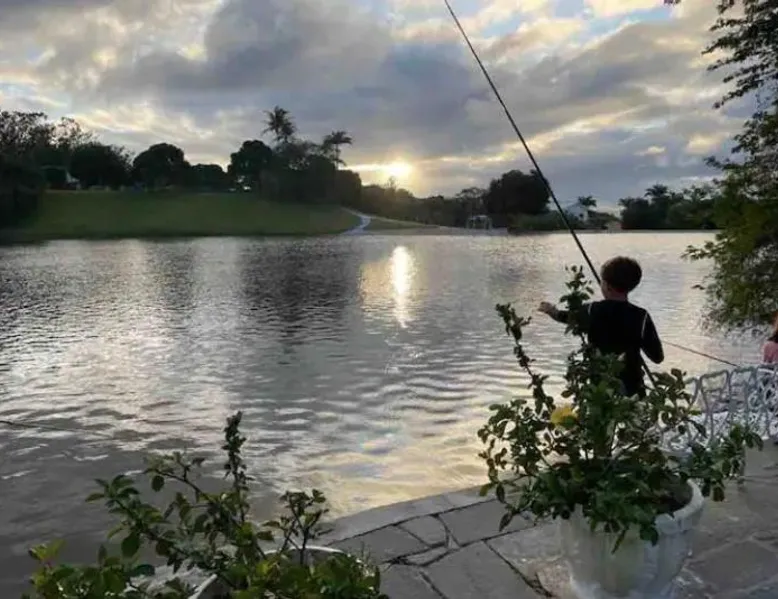 Elegant Holiday Home in Gravatá: Chalé Refidim offers a serene holiday home experience in Gravatá, Brazil. Guests enjoy a beautiful garden, spacious terrace, and a year-round outdoor swimming pool. Free WiFi is available throughout the property. Comfortable Accommodations: The holiday home features two bedrooms and two bathrooms, a fully equipped kitchen, and a comfortable living room. Additional amenities include air-conditioning, a heated pool, balcony with lake views, and a barbecue area. Leisure and Activities: Guests can enjoy tennis on the court, fishing in the nearby lake, and relax in the outdoor dining area. Tennis equipment hire and family rooms cater to all ages. Convenient Location: Located 39 mi from Caruaru Airport, Chalé Refidim is near attractions such as Matriz de Sant Ana and Alto do Cruzeiro, both 6.8 mi away. Free on-site private parking is available. Highly rated for its convenient location and friendly host. This air-conditioned holiday home consists of 1 living room, 2 separate bedrooms and 2 bathrooms with a shower. Guests will find a stovetop, a refrigerator, kitchenware and an oven in the fully equipped kitchen. The holiday home also provides guests with a barbecue. Featuring a terrace with lake views, this holiday home also provides a tea and coffee maker and a flat-screen TV with streaming services. The unit offers 6 beds.