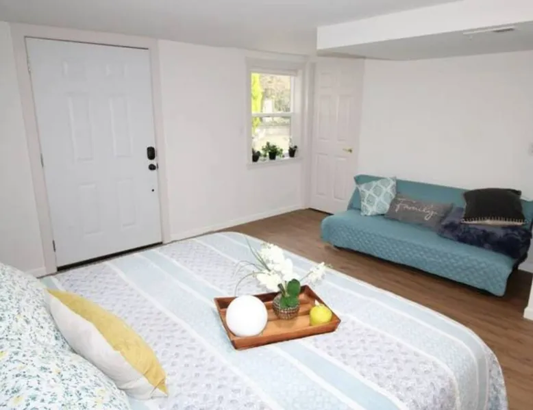 Spacious private studio room, private new bathroom, private entrance in the lake view house on north Mercer Island, near the trial, water, transit, easy access to I-90 and short commute to Bellevue and Seattle, large backyard with water view and outdoor furniture, grill The space One large room with private bathroom with it's own bathroom and separated entrance. Entrance is on the south side of the house before the fence door. The pathway to the entrance is a little tricky with hill. Guest access Separated entrance on the South side of house before the fence door at the lower level Other things to note GUEST ACCESS & STAY DETAILS We’re available through the app or by phone. For reservations longer than two weeks, we provide approximately two weeks’ worth of supplies (toilet paper, paper towels, etc.). Guests staying beyond two weeks will need to purchase additional supplies. For monthly stays, actual utility usage will be billed, and a deposit of $100–$400 is required. One parking on the driveway, or pass way to the entrance has gravel slope, kitchen and laundry is available for limited use upon request. The studio has it's private entrance, private new nice bathroom It has a mini-fridge, microwave Portable cooking stove only (no normal kitchen) No laundry in the unit but can arrange it for regular use