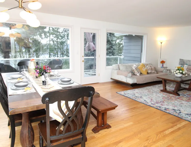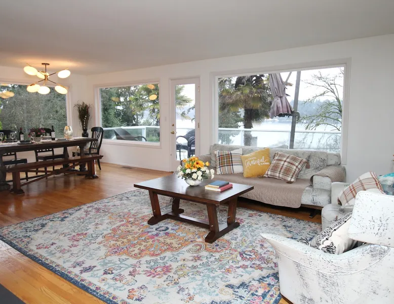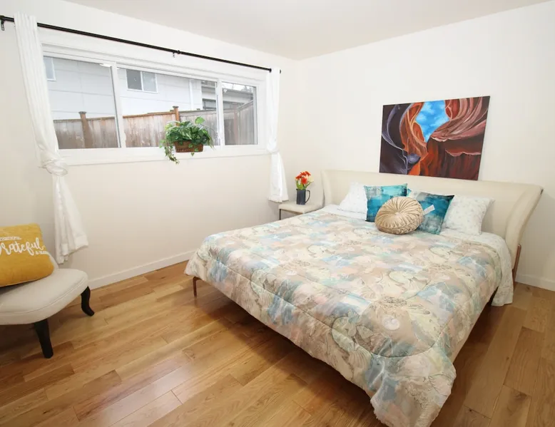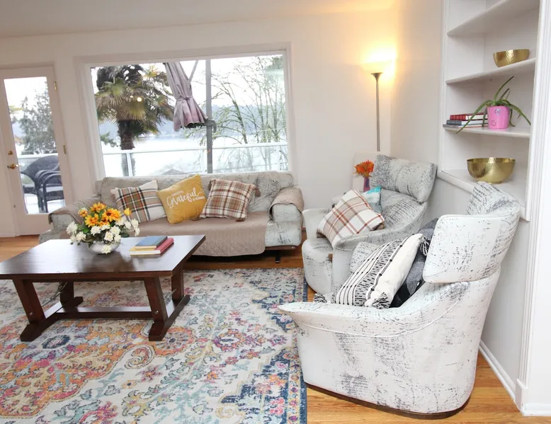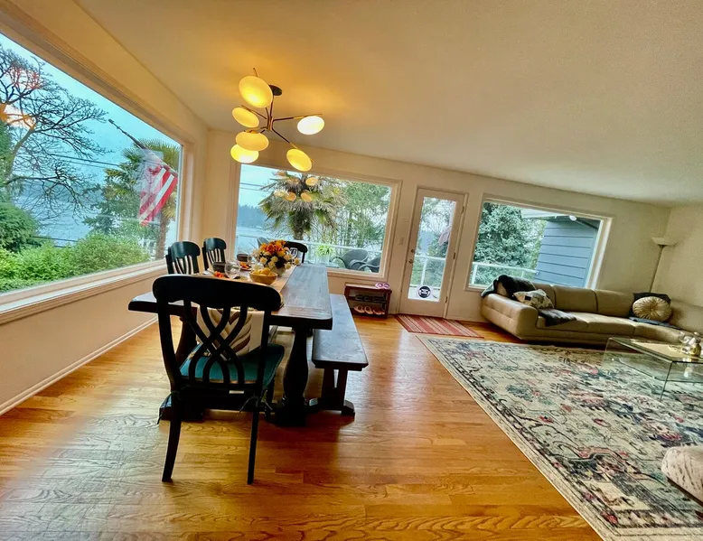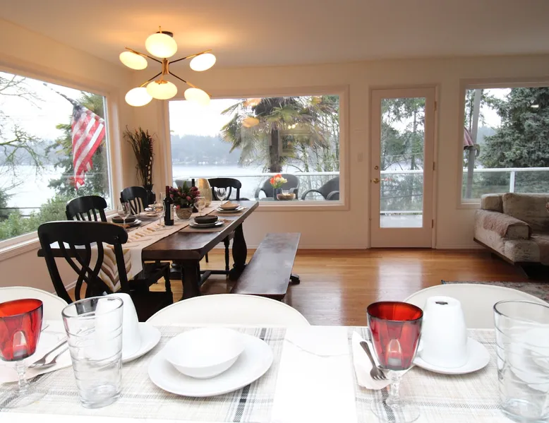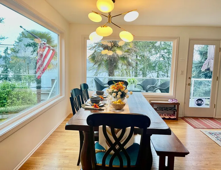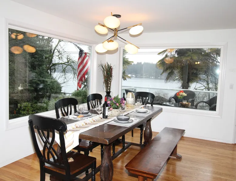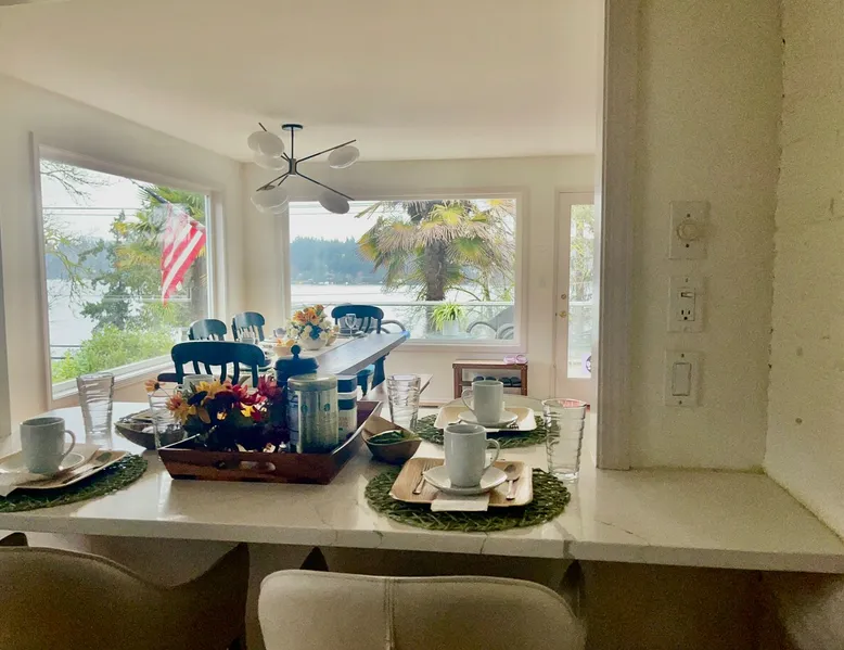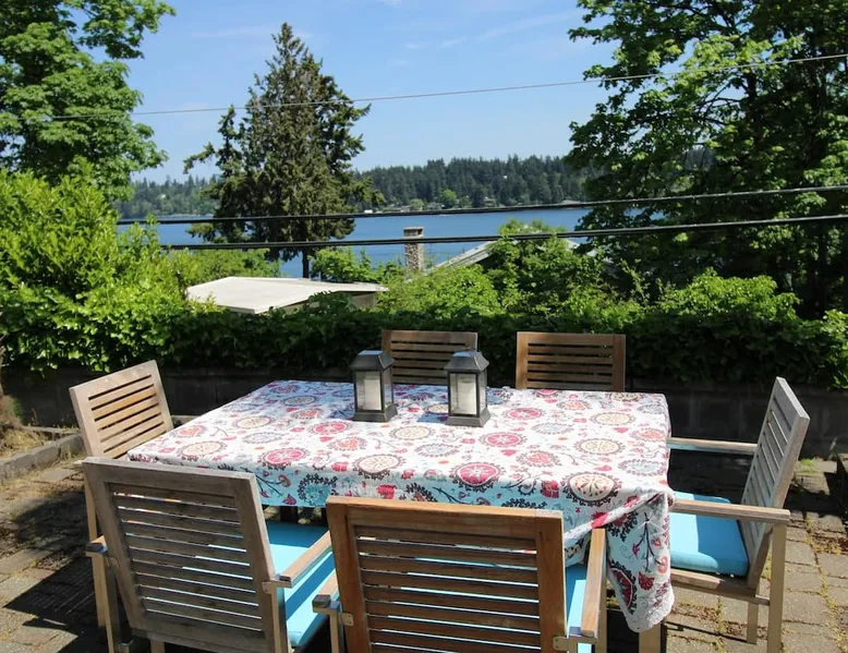 Large room with a King bed - If you’re looking to inhabit the charming suburbs of Mercer Island, look no further to this private bright daylight room in a 3 bedroom, 2-bathroom vacation rental. To decompress, unwind on the patio overlooking lake Washington after making dinner in the fully equipped kitchen or enjoy a family movie on the Smart TV. The space Welcome to our beautiful home, where you'll find exquisite decor and outdoor furnishings that will enhance your stay. As an added bonus, we provide paddle boards for guests to enjoy throughout their time here. Our location is perfect for outdoor enthusiasts, as we are within walking distance to the water, allowing you to easily indulge in outdoor activities. Inside the home, you'll find all the amenities you need for a comfortable stay. We provide a washer and dryer for your convenience, as well as full central heating and air conditioning to ensure a pleasant atmosphere throughout. Our living room is equipped with a smart TV for your entertainment and decorative fireplaces to create a warm and inviting ambiance. In the kitchen, you'll find a fridge, stove, and oven, as well as a dishwasher and drip coffee maker. We also provide an electric tea kettle and all the basic cooking essentials, dishware, and flatware. Outside, you can relax and enjoy the surroundings on our 6-piece furnished patio set, complete with a loveseat swing. We also have a spacious dining table with 8 chairs, perfect for family gatherings and meals. To ensure a comfortable and convenient stay, we include FREE WiFi, laundry detergent, an iron and ironing board, complimentary toiletries, a hairdryer, towels, and linens. If you're traveling with children and require any essentials, please let us know, and we will be happy to work to provide them for you. We look forward to hosting you in our home and ensuring you have a memorable and enjoyable stay. Guest access Private room, shared large kitchen and living space with amazing view! During your stay Contactless Entry: We have implemented a contactless entry system for your safety and convenience. By connecting with us on our platform, you can access your accommodations without the need for physical keys or direct interaction. Rest assured that we are available to assist you remotely with any needs or concerns that may arise during your stay. Additionally, we are just a phone call away if you require immediate assistance. Enjoy your stay and have a wonderful experience with us. Other things to note Parking: free street parking Utilities: For more than 2 weeks stay, we will request utility deposit for $150-$300