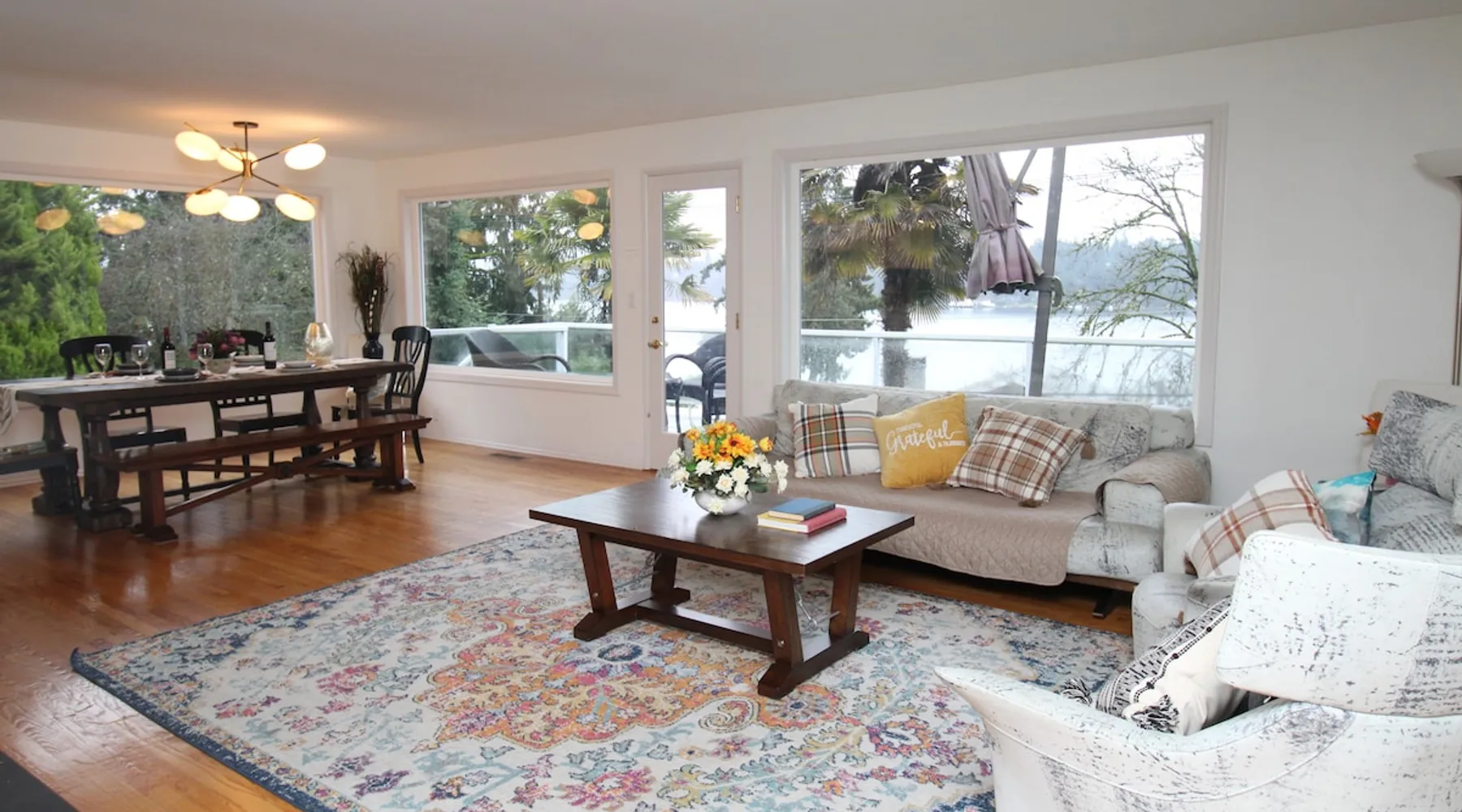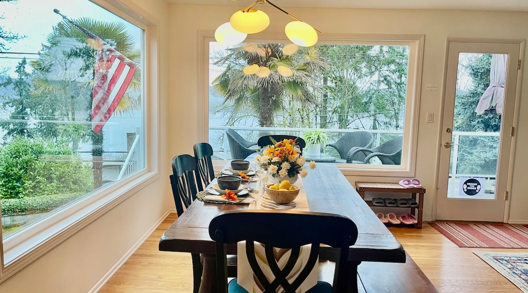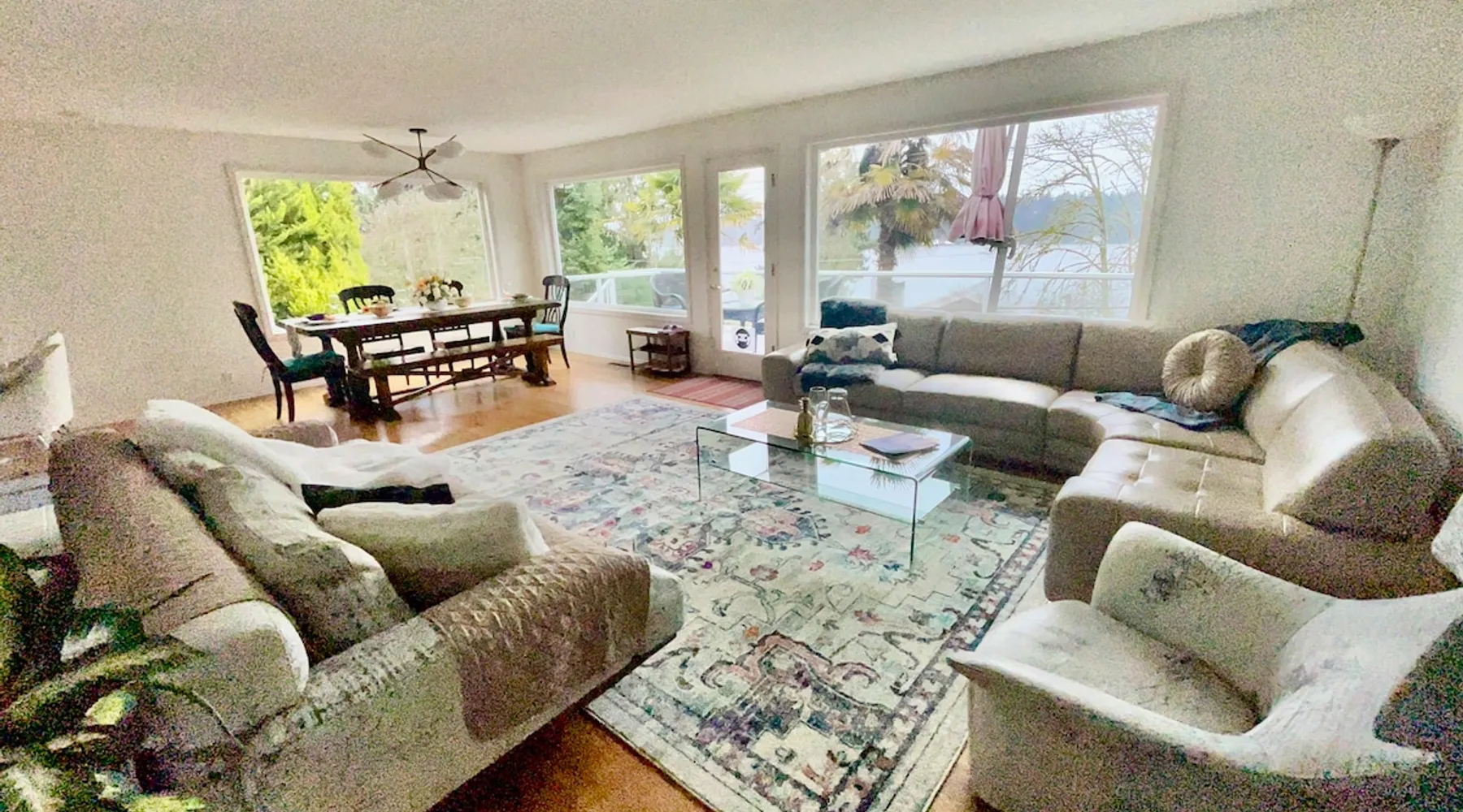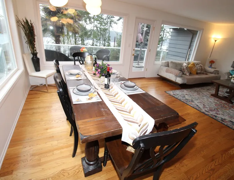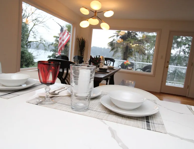 Large room with a King bed - If you’re looking to inhabit the charming suburbs of Mercer Island, look no further to this private bright daylight room in a 3 bedroom, 2-bathroom vacation rental. To decompress, unwind on the patio overlooking lake Washington after making dinner in the fully equipped kitchen or enjoy a family movie on the Smart TV. The space Welcome to our beautiful home, where you'll find exquisite decor and outdoor furnishings that will enhance your stay. As an added bonus, we provide paddle boards for guests to enjoy throughout their time here. Our location is perfect for outdoor enthusiasts, as we are within walking distance to the water, allowing you to easily indulge in outdoor activities. Inside the home, you'll find all the amenities you need for a comfortable stay. We provide a washer and dryer for your convenience, as well as full central heating and air conditioning to ensure a pleasant atmosphere throughout. Our living room is equipped with a smart TV for your entertainment and decorative fireplaces to create a warm and inviting ambiance. In the kitchen, you'll find a fridge, stove, and oven, as well as a dishwasher and drip coffee maker. We also provide an electric tea kettle and all the basic cooking essentials, dishware, and flatware. Outside, you can relax and enjoy the surroundings on our 6-piece furnished patio set, complete with a loveseat swing. We also have a spacious dining table with 8 chairs, perfect for family gatherings and meals. To ensure a comfortable and convenient stay, we include FREE WiFi, laundry detergent, an iron and ironing board, complimentary toiletries, a hairdryer, towels, and linens. If you're traveling with children and require any essentials, please let us know, and we will be happy to work to provide them for you. We look forward to hosting you in our home and ensuring you have a memorable and enjoyable stay. Guest access Private room, shared large kitchen and living space with amazing view! During your stay Contactless Entry: We have implemented a contactless entry system for your safety and convenience. By connecting with us on our platform, you can access your accommodations without the need for physical keys or direct interaction. Rest assured that we are available to assist you remotely with any needs or concerns that may arise during your stay. Additionally, we are just a phone call away if you require immediate assistance. Enjoy your stay and have a wonderful experience with us. Other things to note Parking: free street parking Utilities: For more than 2 weeks stay, we will request utility deposit for $150-$300
