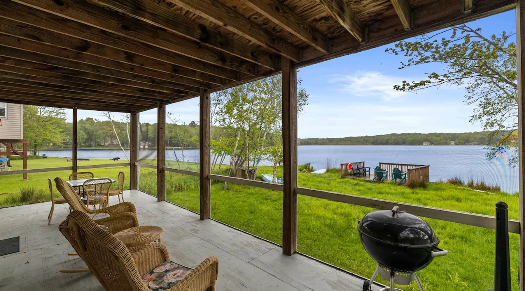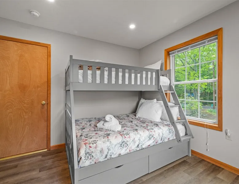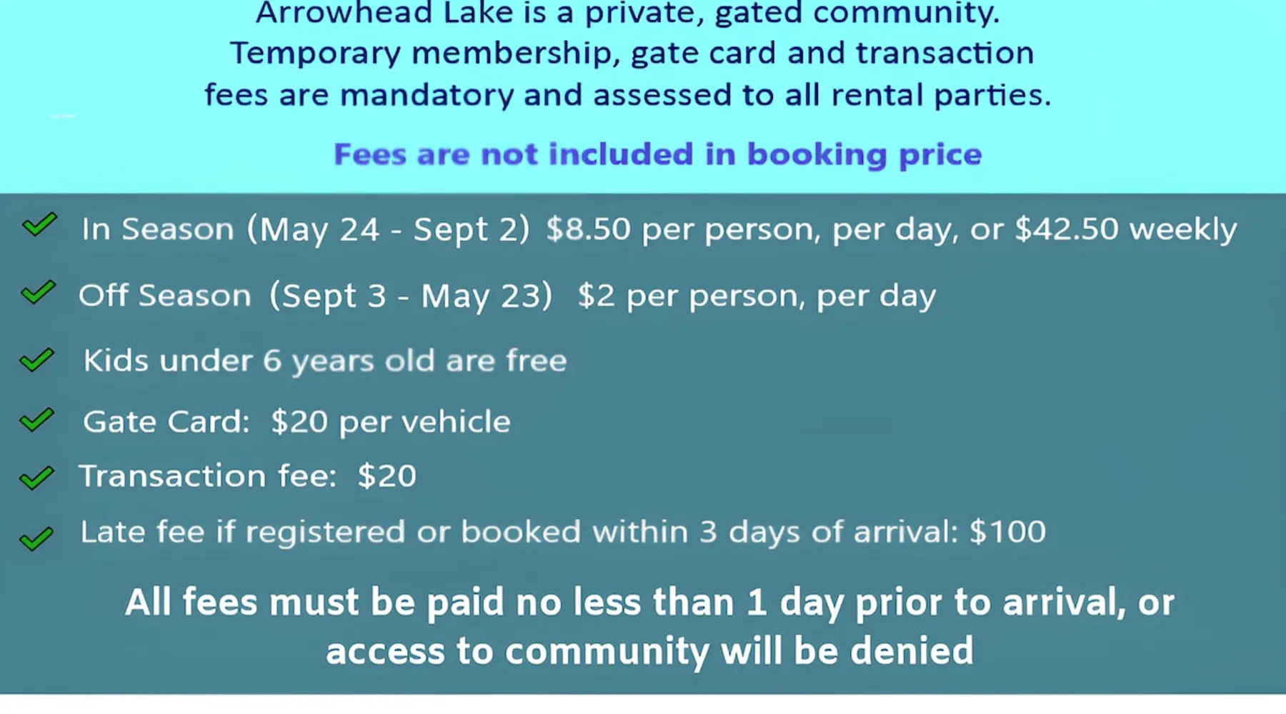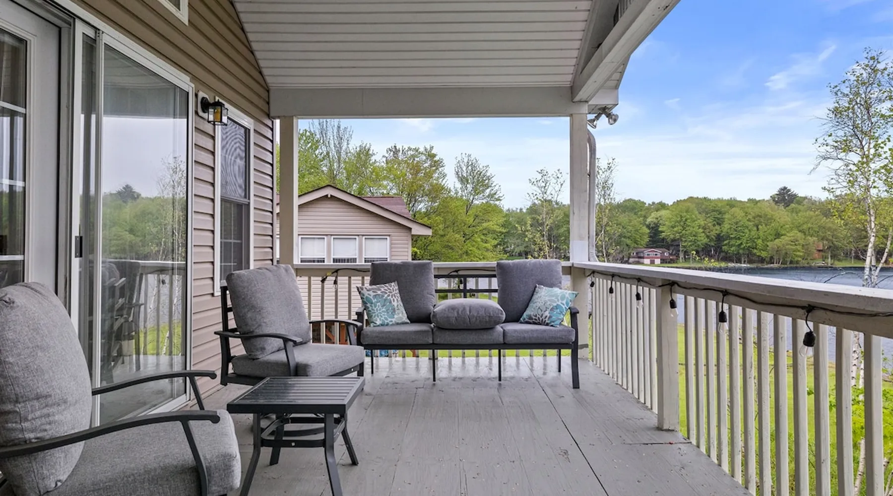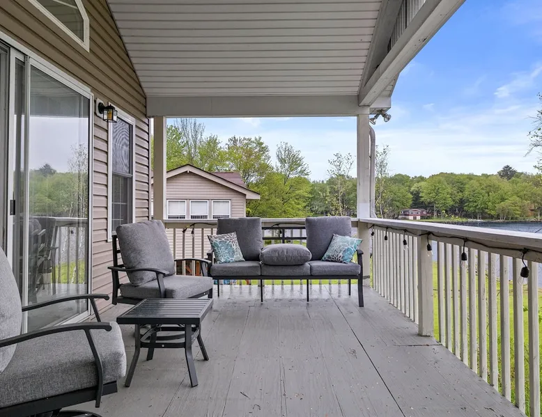 Family-Friendly Lakefront Getaway in the Poconos Make lasting memories with the whole family at this peaceful 3-bedroom lakefront home in the private Arrowhead Lake community. Enjoy stunning water views from two covered patios, a lakeside deck a BBQ grill, and a private dock—perfect for relaxing or launching a kayak. Inside, you’ll find spacious bedrooms with king beds, smart TVs, full kitchen, workspace and plenty of room to unwind. (mandatory community fees apply—see “Other things to note.”) The space Comfortable & Scenic Family Retreat on Arrowhead Lake Bring the whole crew to this family-friendly lakefront home in the heart of the Poconos, tucked inside the private, amenity-filled Arrowhead Lake community. Watch the sunrise over the water with coffee on one of two covered patios, fire up the BBQ grill for a lakeside lunch, or gather for dinner on the spacious deck. Kids will love spotting wildlife and playing near the water, while parents can unwind by the private dock or relax indoors. Room for everyone: ↣ 3 bedrooms: two with king beds, one with a twin-over-full bunk bed ↣ Lower-level family room with a full-size bed ↣ Open-concept kitchen and dining area ↣ Smart TV with streaming apps ↣ Washer and dryer for easy clean-up ↣ BBQ grill for family cookouts With lake access just steps away and family-friendly touches throughout, this peaceful home makes a perfect base for your next Poconos adventure—any time of year. Please Note: 1) Arrowhead Lake community does have additional mandatory fees not included in house rental rate (see "Other things to note") 2) Our community is located in a somewhat remote area, ideal for those looking to escape the city and highways. A car is required to reach both the community and our property. We provide enough essential items to cover stays of multiple nights. If you need more supplies during your stay, you can visit one of the following nearby stores: Ahart, CVS, Weis, Walmart, ALDI. Nearby Local Attractions ● 25 Min Drive to Pocono Raceway ● 20-25 Min Drive to Jack Frost/Big Boulder Ski Areas ● 25 Min Drive to Kalahari Resort/Waterpark ● 20 Min Drive to Hickory Run State Park ● 30 Min Drive to Mount Airy Casino ● 30 Min Drive to Camelback Mountain/Waterpark **driving times are approximate Guest access Everything is available for guest use except garage (which is used as storage) and a closet where janitorial supplies are stored Other things to note **COMMUNITY FEES** (mandatory, not included in booking price): Arrowhead Lake Community Fees (to be paid separately online 1+ days prior to arrival): 1) Temporary membership: a) IN SEASON (May 24 to Sept 2): $8.50 per person, per day. or $42.50 per person, per week. b) OFF SEASON (Sept 3 to May 23): $2 per person, per day. c) Children under 6 are free 2) Gate Card: $20 per vehicle, per stay 3) Administration: $20 one time, per stay (Non-refundable) 4) Late fee (for bookings and registrations submitted within 3 days of arrival date): $100 NOTE: All fees must be paid at least 3+ days prior to arrival to avoid late fee. Community does not accept registrations/payments/changes/additions less than 1 day prior to arrival. **Fees are imposed by the community association; we are unable to waive or discount them. We will collect following info to be submitted to community with payment: number of guests and kids, names of every driver, full car info and guest names. Temporary Membership grants access to all community facilities and events, as well as access to pools, lakes, beaches, playgrounds, basketball and tennis courts, to Community Lodge with 3 fireplaces, library, fitness room (gym), game rooms and banquet hall. Note: Pools are open starting Memorial Day weekend, until Labor Day. TEMPORARY MEMBERSHIP FEE IS REQUIRED WHETHER AMENITIES/FACILITIES ARE OPEN/USED OR NOT. Community amenities are owned and operated by Arrowhead Lake Community Association. Some amenities are seasonal (pools, beaches, rental shack etc) or maybe closed due to staffing, weather, maintenance or other reasons out of our control. Please double check with us on status of specific amenity. **TRASH RULES**: To avoid attracting wild animals and rodents, all trash must be removed from the house upon departure. The Trash Center is located within the same community, and you can find the address in the Guidebook provided in the house. You can also pick up a flyer with the Trash Center address during check-in at the Rental Office. Registration Details 021042