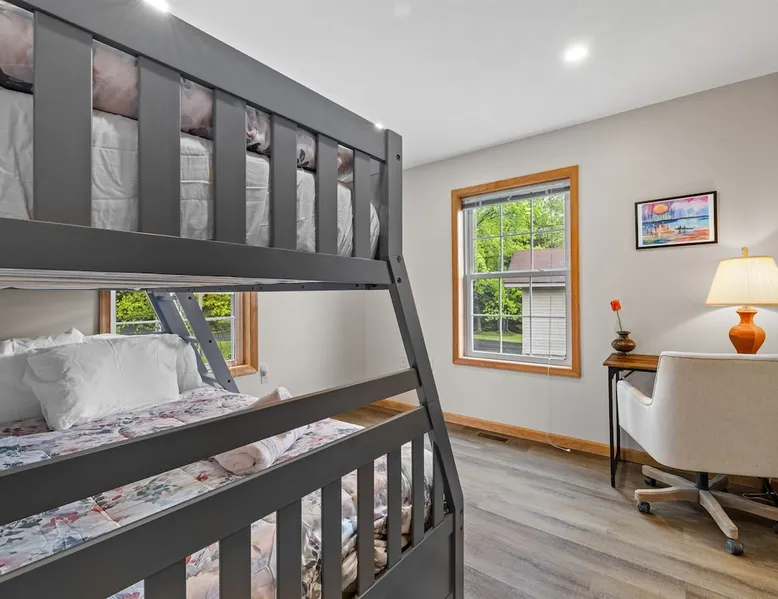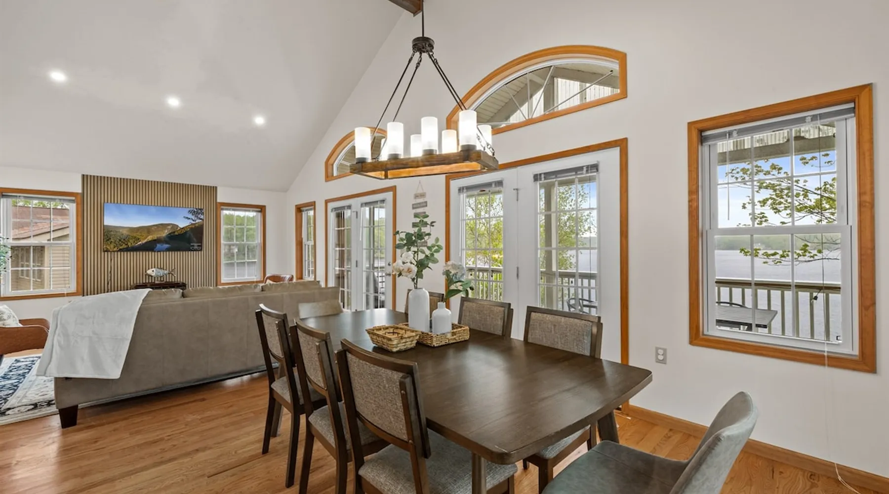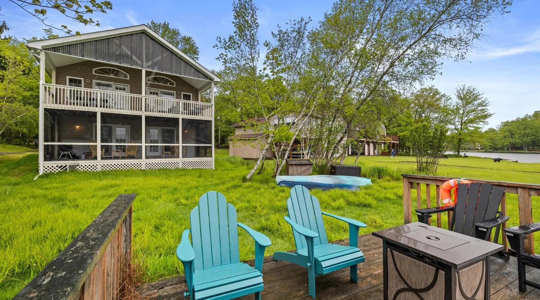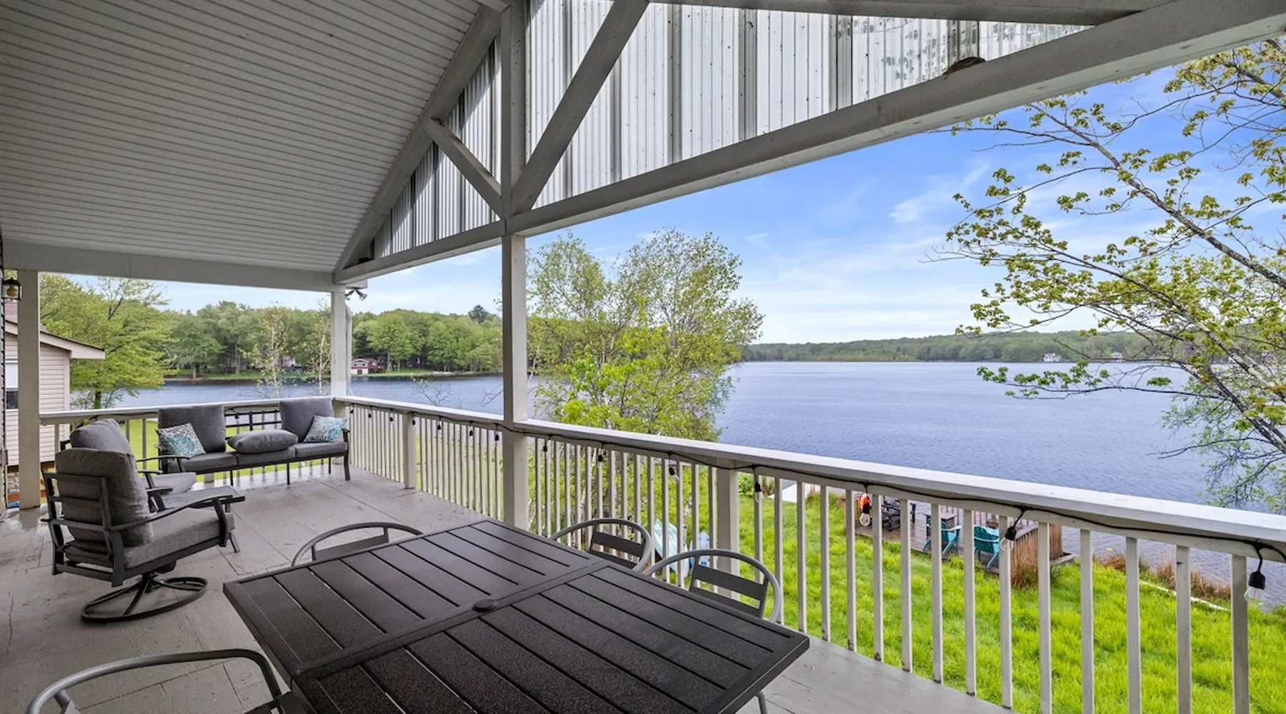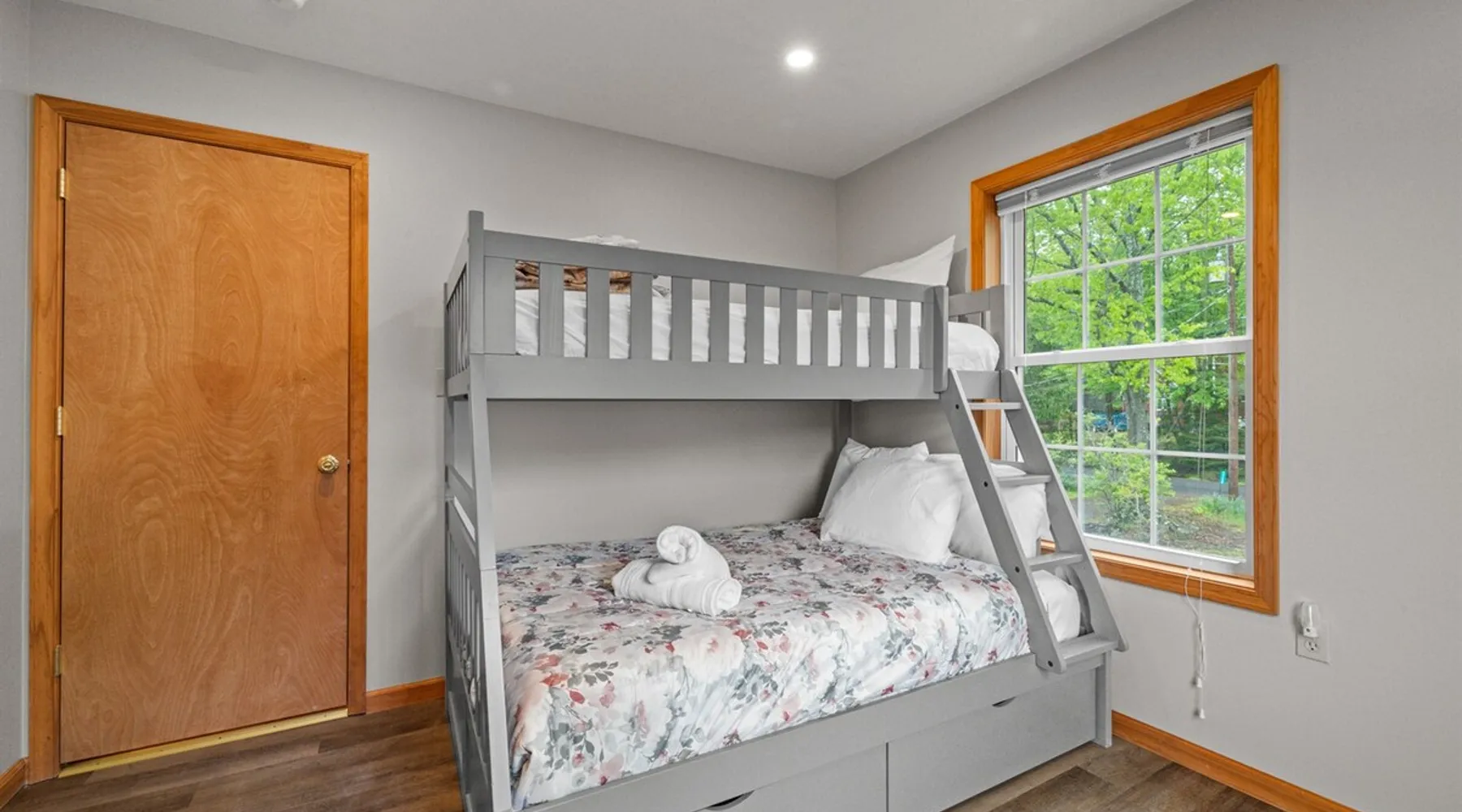 Family-Friendly Lakefront Getaway in the Poconos Make lasting memories with the whole family at this peaceful 3-bedroom lakefront home in the private Arrowhead Lake community. Enjoy stunning water views from two covered patios, a lakeside deck a BBQ grill, and a private dock—perfect for relaxing or launching a kayak. Inside, you’ll find spacious bedrooms with king beds, smart TVs, full kitchen, workspace and plenty of room to unwind. (mandatory community fees apply—see “Other things to note.”) The space Comfortable & Scenic Family Retreat on Arrowhead Lake Bring the whole crew to this family-friendly lakefront home in the heart of the Poconos, tucked inside the private, amenity-filled Arrowhead Lake community. Watch the sunrise over the water with coffee on one of two covered patios, fire up the BBQ grill for a lakeside lunch, or gather for dinner on the spacious deck. Kids will love spotting wildlife and playing near the water, while parents can unwind by the private dock or relax indoors. Room for everyone: ↣ 3 bedrooms: two with king beds, one with a twin-over-full bunk bed ↣ Lower-level family room with a full-size bed ↣ Open-concept kitchen and dining area ↣ Smart TV with streaming apps ↣ Washer and dryer for easy clean-up ↣ BBQ grill for family cookouts With lake access just steps away and family-friendly touches throughout, this peaceful home makes a perfect base for your next Poconos adventure—any time of year. Please Note: 1) Arrowhead Lake community does have additional mandatory fees not included in house rental rate (see "Other things to note") 2) Our community is located in a somewhat remote area, ideal for those looking to escape the city and highways. A car is required to reach both the community and our property. We provide enough essential items to cover stays of multiple nights. If you need more supplies during your stay, you can visit one of the following nearby stores: Ahart, CVS, Weis, Walmart, ALDI. Nearby Local Attractions ● 25 Min Drive to Pocono Raceway ● 20-25 Min Drive to Jack Frost/Big Boulder Ski Areas ● 25 Min Drive to Kalahari Resort/Waterpark ● 20 Min Drive to Hickory Run State Park ● 30 Min Drive to Mount Airy Casino ● 30 Min Drive to Camelback Mountain/Waterpark **driving times are approximate Guest access Everything is available for guest use except garage (which is used as storage) and a closet where janitorial supplies are stored Other things to note **COMMUNITY FEES** (mandatory, not included in booking price): Arrowhead Lake Community Fees (to be paid separately online 1+ days prior to arrival): 1) Temporary membership: a) IN SEASON (May 24 to Sept 2): $8.50 per person, per day. or $42.50 per person, per week. b) OFF SEASON (Sept 3 to May 23): $2 per person, per day. c) Children under 6 are free 2) Gate Card: $20 per vehicle, per stay 3) Administration: $20 one time, per stay (Non-refundable) 4) Late fee (for bookings and registrations submitted within 3 days of arrival date): $100 NOTE: All fees must be paid at least 3+ days prior to arrival to avoid late fee. Community does not accept registrations/payments/changes/additions less than 1 day prior to arrival. **Fees are imposed by the community association; we are unable to waive or discount them. We will collect following info to be submitted to community with payment: number of guests and kids, names of every driver, full car info and guest names. Temporary Membership grants access to all community facilities and events, as well as access to pools, lakes, beaches, playgrounds, basketball and tennis courts, to Community Lodge with 3 fireplaces, library, fitness room (gym), game rooms and banquet hall. Note: Pools are open starting Memorial Day weekend, until Labor Day. TEMPORARY MEMBERSHIP FEE IS REQUIRED WHETHER AMENITIES/FACILITIES ARE OPEN/USED OR NOT. Community amenities are owned and operated by Arrowhead Lake Community Association. Some amenities are seasonal (pools, beaches, rental shack etc) or maybe closed due to staffing, weather, maintenance or other reasons out of our control. Please double check with us on status of specific amenity. **TRASH RULES**: To avoid attracting wild animals and rodents, all trash must be removed from the house upon departure. The Trash Center is located within the same community, and you can find the address in the Guidebook provided in the house. You can also pick up a flyer with the Trash Center address during check-in at the Rental Office. Registration Details 021042