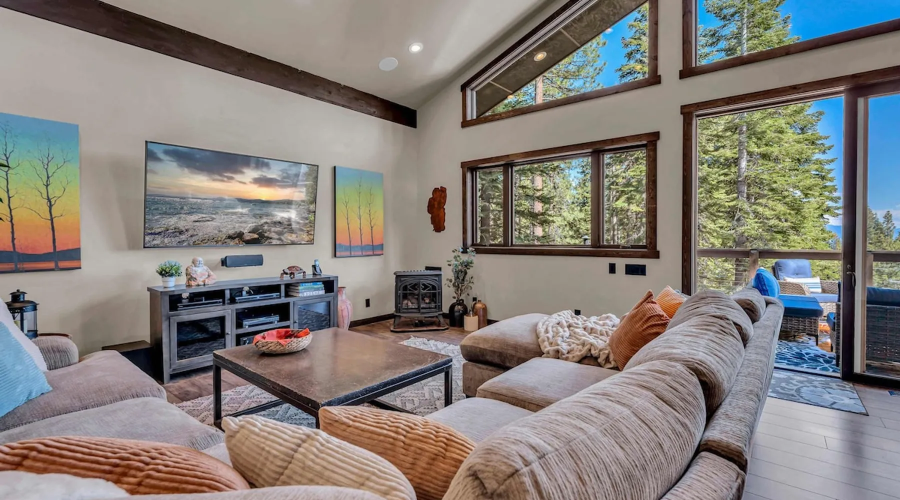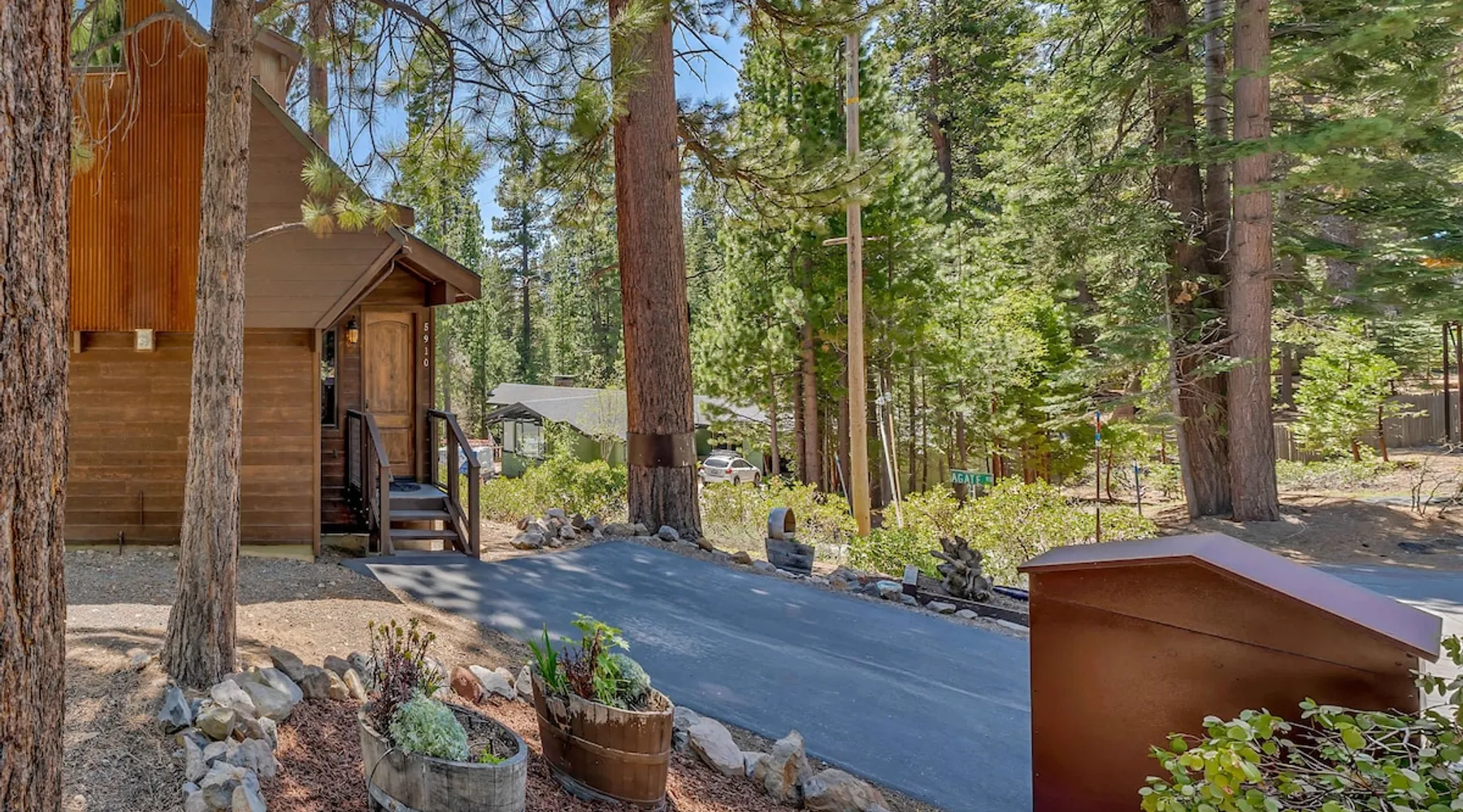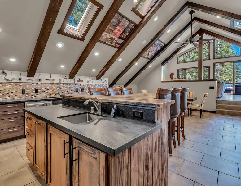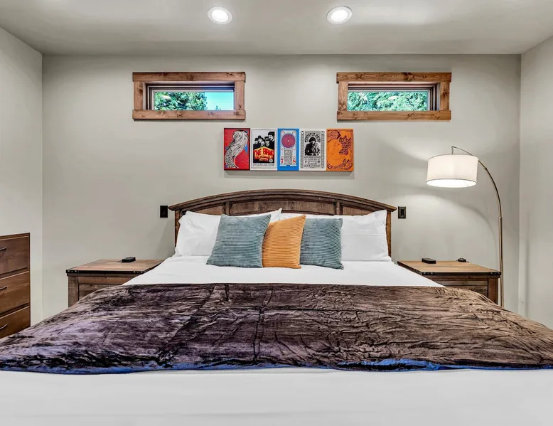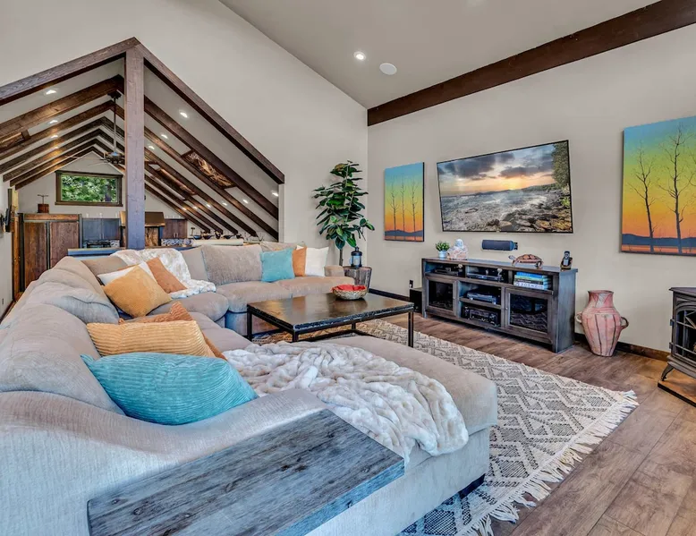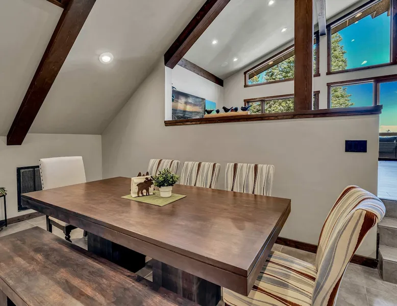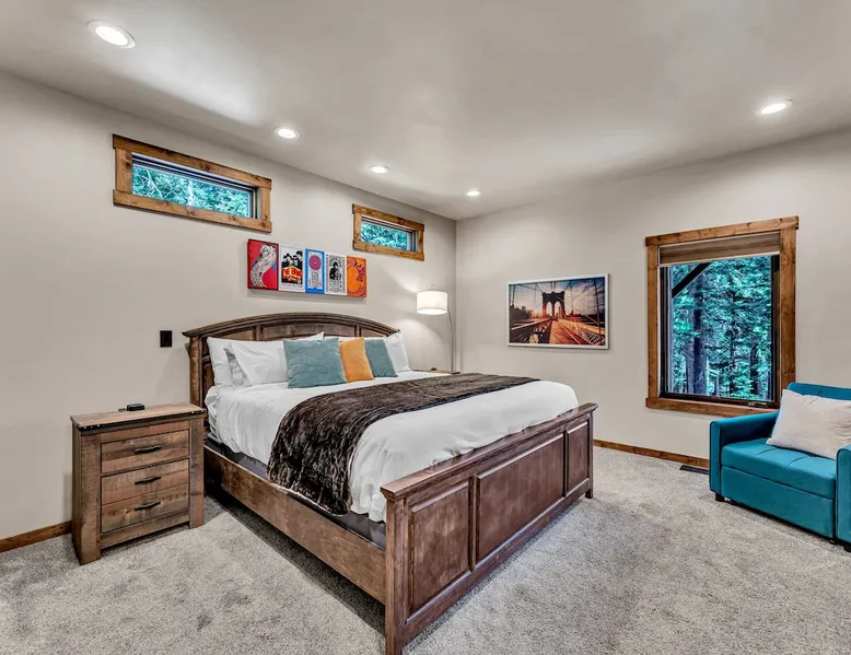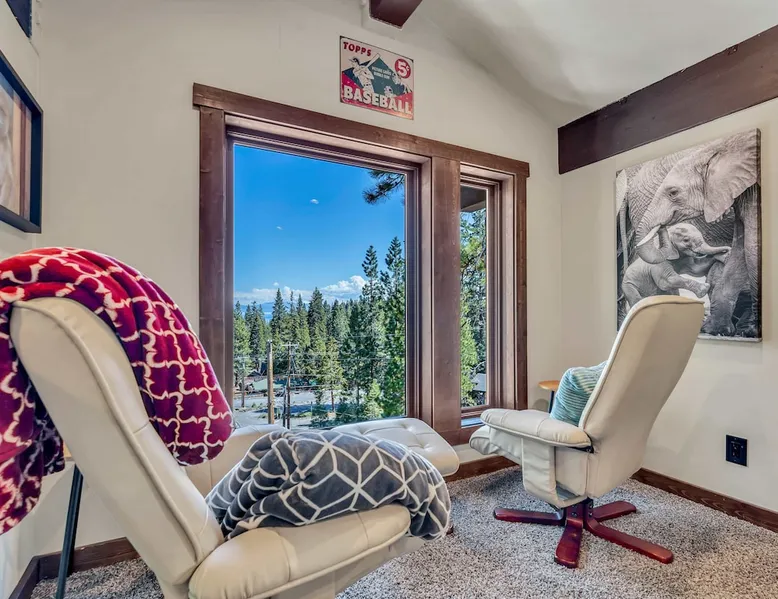 Nestled in North Lake Tahoe, this Agate Bay vacation rental combines space and charm with modern comforts. Enjoy the chef’s dream kitchen, filtered lake view deck, gas fireplace, reliable WiFi, and stand-up arcade. With nearby trails, walking distance to the lake, restaurants,miniature golf and year-round activities, it’s a perfect base for adventure and relaxation. The space Location perks: Patton Beach/Lake Tahoe, Magic Carpet Mini Golf, Garwoods Restaurant/CB’s Bistro/7-11 (1.2 miles walking through the neighborhood, 1.4 miles driving), Sandy Beach (1.5 miles), North Tahoe Regional Park (2.7 miles), Kings Beach State Recreation Area (3.1 miles), Tahoe Cross Country Ski Area (5.1 miles), Northstar California Resort (8.8 miles) Floor configuration: Main Entry floor: 1 primary bedroom (Cal king bed, en-suite bathroom with standing shower, 2 vanity sinks and 48” Smart TV with Apple TV and 2 guest bedrooms queen bed; 2 twin XL beds, 1 full bathroom with tub/shower combo, Laundry Room with sink Upper floor: Living room with vaulted ceilings, large kitchen and dining area, half bathroom, dedicated workspace, access to deck and grill Interior: — Kitchen (drip coffee maker & keurig, Crockpot, microwave, toaster, blender, kettle, waffle maker, food processor, cooking pots/pans/utensils, tableware, barware, Spices: salt, pepper, granulated garlic, crushed red pepper flakes) — Sonos Sound System — Smart TVs (75”) with Apple TV — Gas fireplace –- Stand-up arcade game (loft) —-Various puzzles and board games — Free WiFi (280 Mbps) — Central heat and no A/C (Fans provided for each bedroom) — 4 Moms Brand Pak N’ Play — 5 ft x 3 ft Kids blow up mattress — 2,827 sq. ft. Exterior: — Gas grill — Deck — On-site parking for 3 cars (driveway only) STR License Number: STR25-9454 Max Occupancy: 6 Parking Info: There are 3 parking spaces in the driveway Guest access Guests have access to the entire home, including the deck, grill, arcade/ board games and private laundry. Parking is available for up to 3 cars in the driveway. Other things to note — Please keep in mind that if you plan to ski, you are responsible for verifying the ski resorts’ opening and closing dates. — Please note that, like most homes in the area, this home does not have A/C. — 4-wheel drive or 2-wheel drive tires with snow chains may be necessary for safe travel to this property, even if it hasn’t snowed in a few days. — The home is equipped with a ring doorbell camera in the front entryway. Registration Details STR25-9454