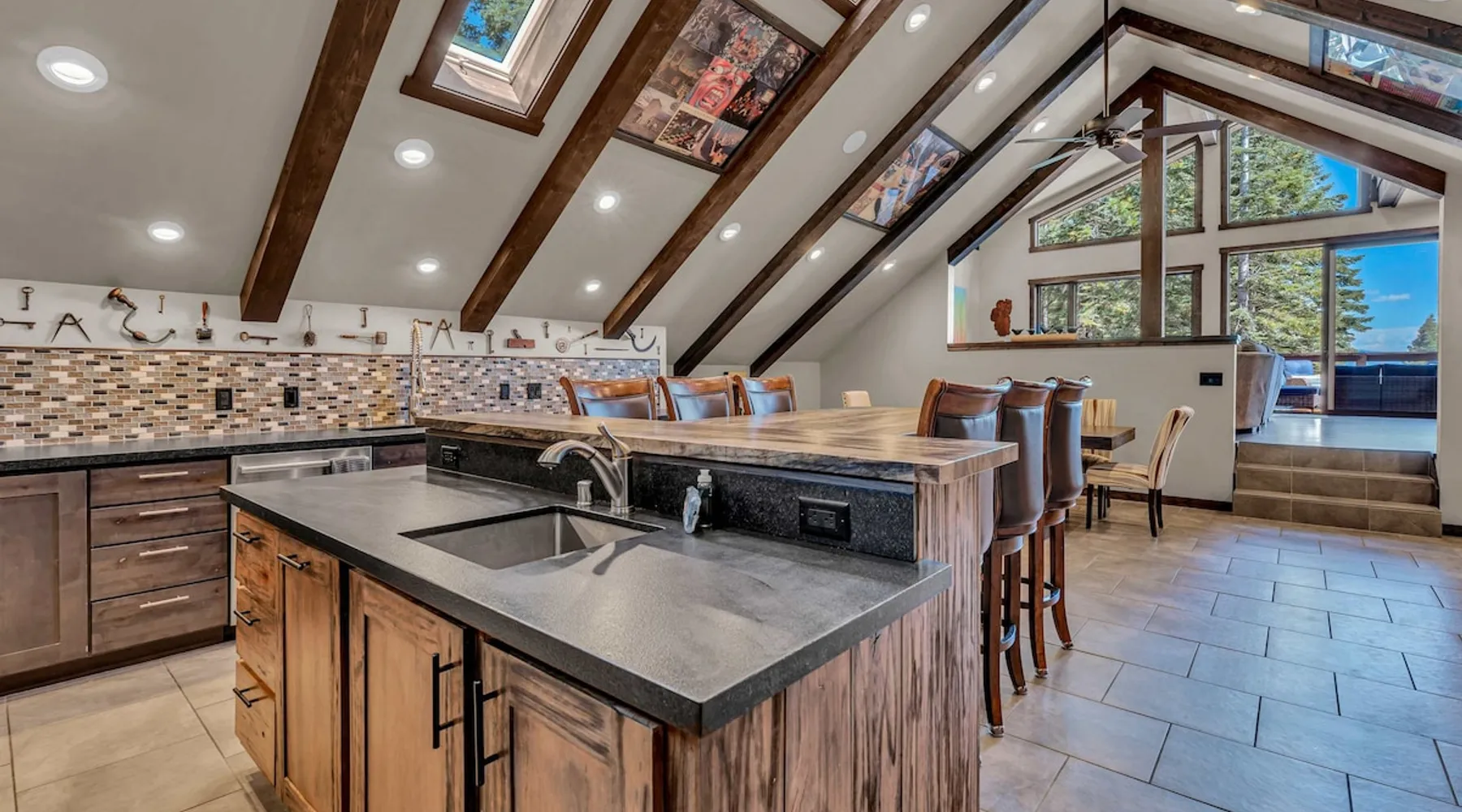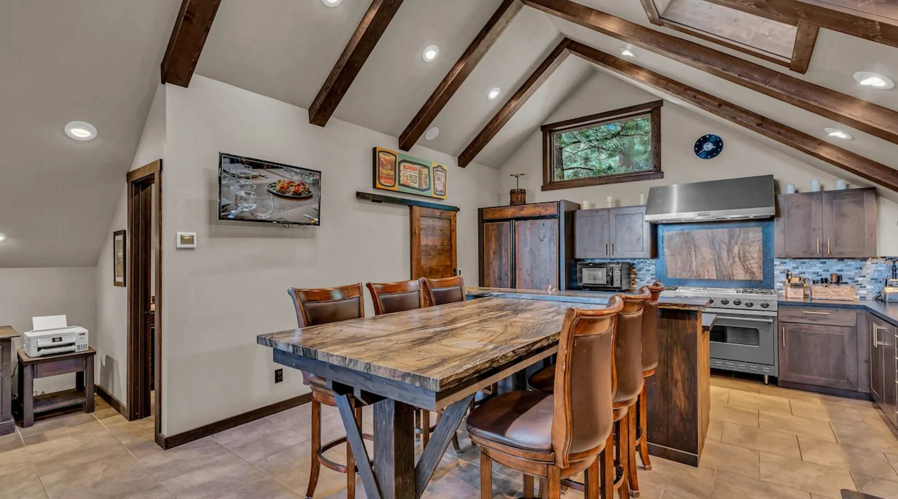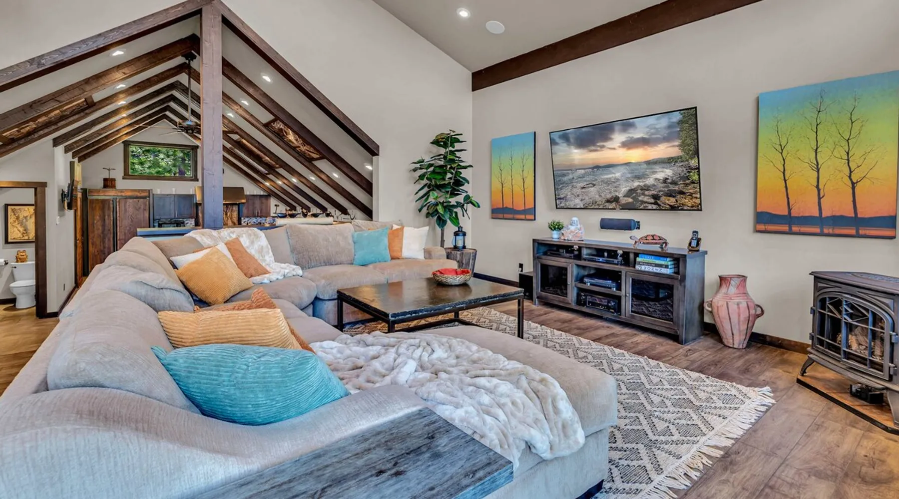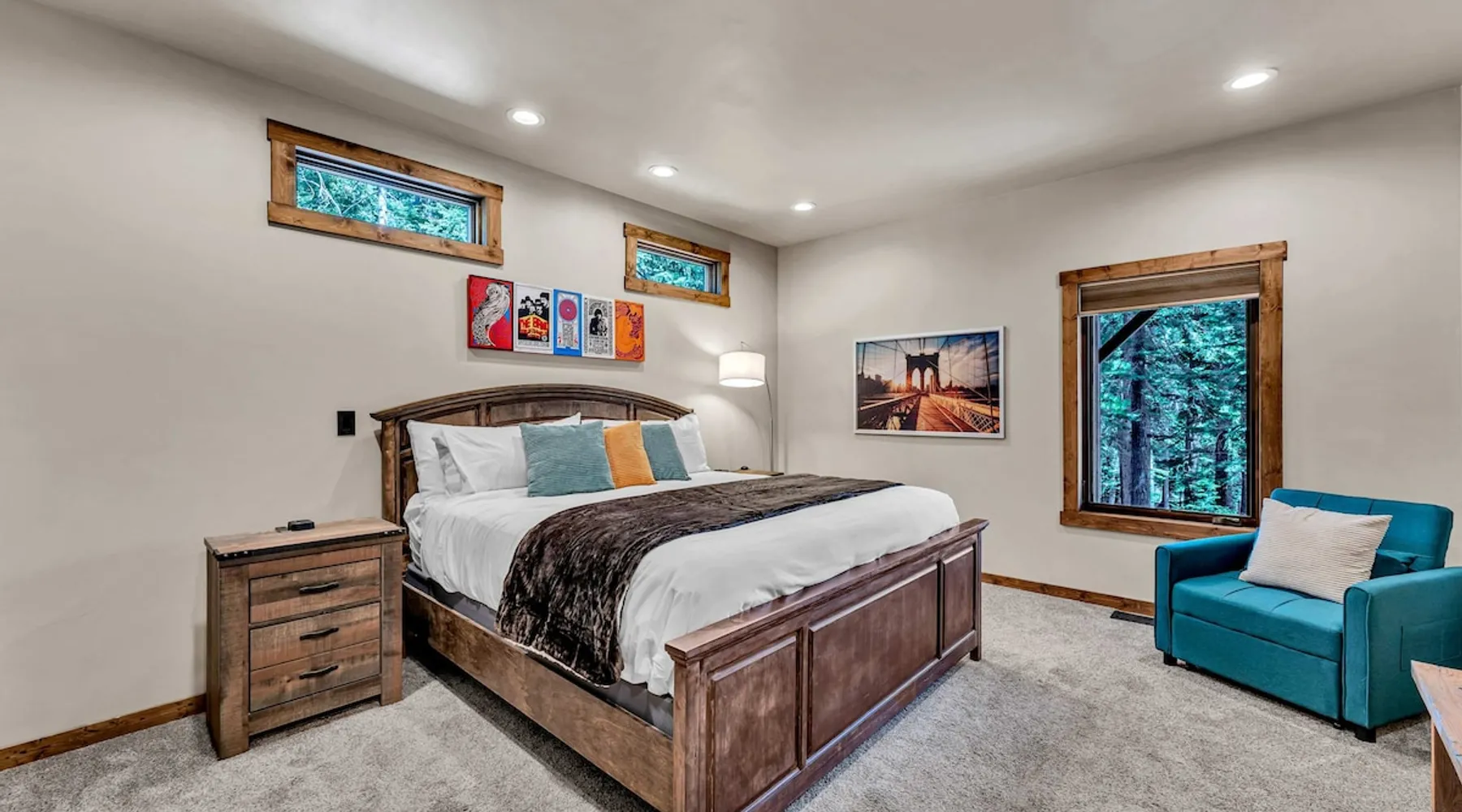 Nestled in North Lake Tahoe, this Agate Bay vacation rental combines space and charm with modern comforts. Enjoy the chef’s dream kitchen, filtered lake view deck, gas fireplace, reliable WiFi, and stand-up arcade. With nearby trails, walking distance to the lake, restaurants,miniature golf and year-round activities, it’s a perfect base for adventure and relaxation. The space Location perks: Patton Beach/Lake Tahoe, Magic Carpet Mini Golf, Garwoods Restaurant/CB’s Bistro/7-11 (1.2 miles walking through the neighborhood, 1.4 miles driving), Sandy Beach (1.5 miles), North Tahoe Regional Park (2.7 miles), Kings Beach State Recreation Area (3.1 miles), Tahoe Cross Country Ski Area (5.1 miles), Northstar California Resort (8.8 miles) Floor configuration: Main Entry floor: 1 primary bedroom (Cal king bed, en-suite bathroom with standing shower, 2 vanity sinks and 48” Smart TV with Apple TV and 2 guest bedrooms queen bed; 2 twin XL beds, 1 full bathroom with tub/shower combo, Laundry Room with sink Upper floor: Living room with vaulted ceilings, large kitchen and dining area, half bathroom, dedicated workspace, access to deck and grill Interior: — Kitchen (drip coffee maker & keurig, Crockpot, microwave, toaster, blender, kettle, waffle maker, food processor, cooking pots/pans/utensils, tableware, barware, Spices: salt, pepper, granulated garlic, crushed red pepper flakes) — Sonos Sound System — Smart TVs (75”) with Apple TV — Gas fireplace –- Stand-up arcade game (loft) —-Various puzzles and board games — Free WiFi (280 Mbps) — Central heat and no A/C (Fans provided for each bedroom) — 4 Moms Brand Pak N’ Play — 5 ft x 3 ft Kids blow up mattress — 2,827 sq. ft. Exterior: — Gas grill — Deck — On-site parking for 3 cars (driveway only) STR License Number: STR25-9454 Max Occupancy: 6 Parking Info: There are 3 parking spaces in the driveway Guest access Guests have access to the entire home, including the deck, grill, arcade/ board games and private laundry. Parking is available for up to 3 cars in the driveway. Other things to note — Please keep in mind that if you plan to ski, you are responsible for verifying the ski resorts’ opening and closing dates. — Please note that, like most homes in the area, this home does not have A/C. — 4-wheel drive or 2-wheel drive tires with snow chains may be necessary for safe travel to this property, even if it hasn’t snowed in a few days. — The home is equipped with a ring doorbell camera in the front entryway. Registration Details STR25-9454