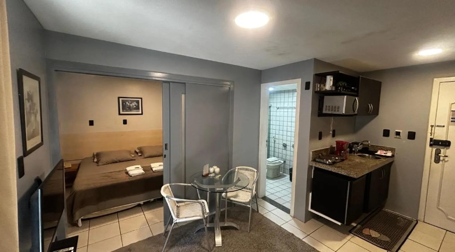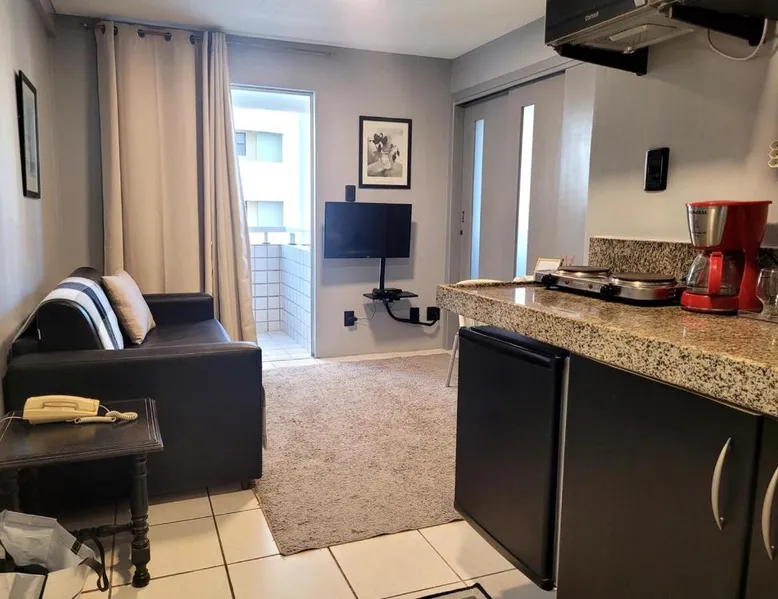 Beachfront Location: America Flat Localização incrível em São Luís in São Luís offers direct beachfront access with Ponta d'Areia Beach just a 7-minute walk away. Jansen Lagoon lies 1969 feet from the property. Exceptional Facilities: Guests enjoy a sauna, fitness center, open-air bath, outdoor swimming pool, and a bar. Additional amenities include a steam room, sauna, terrace, and free WiFi throughout the apartment. Comfortable Accommodations: The recently renovated apartment features one bedroom, one bathroom, and a living room. Amenities include air-conditioning, a kitchenette, balcony with sea views, and a work desk. Convenient Location: Marechal Cunha Machado International Airport is 9.9 mi away. Nearby attractions include Lion's Palace and the Sacred Art Museum, each 3.1 mi from the property. The pool with a view and sauna are the standout features of this apartment. Boasting a private entrance, this air-conditioned apartment includes 1 living room, 1 separate bedroom and 1 bathroom with a shower and a hairdryer. Guests can make meals in the kitchen that is fitted with a stovetop, a refrigerator, kitchenware and a microwave. This apartment has a mini-bar, flat-screen TV with streaming services, sea views, as well as chocolate for guests. The unit has 3 beds.