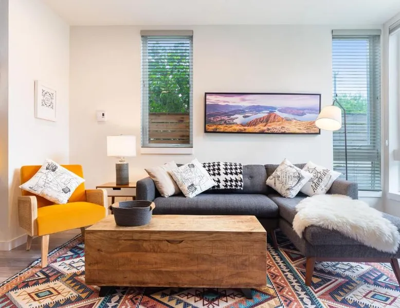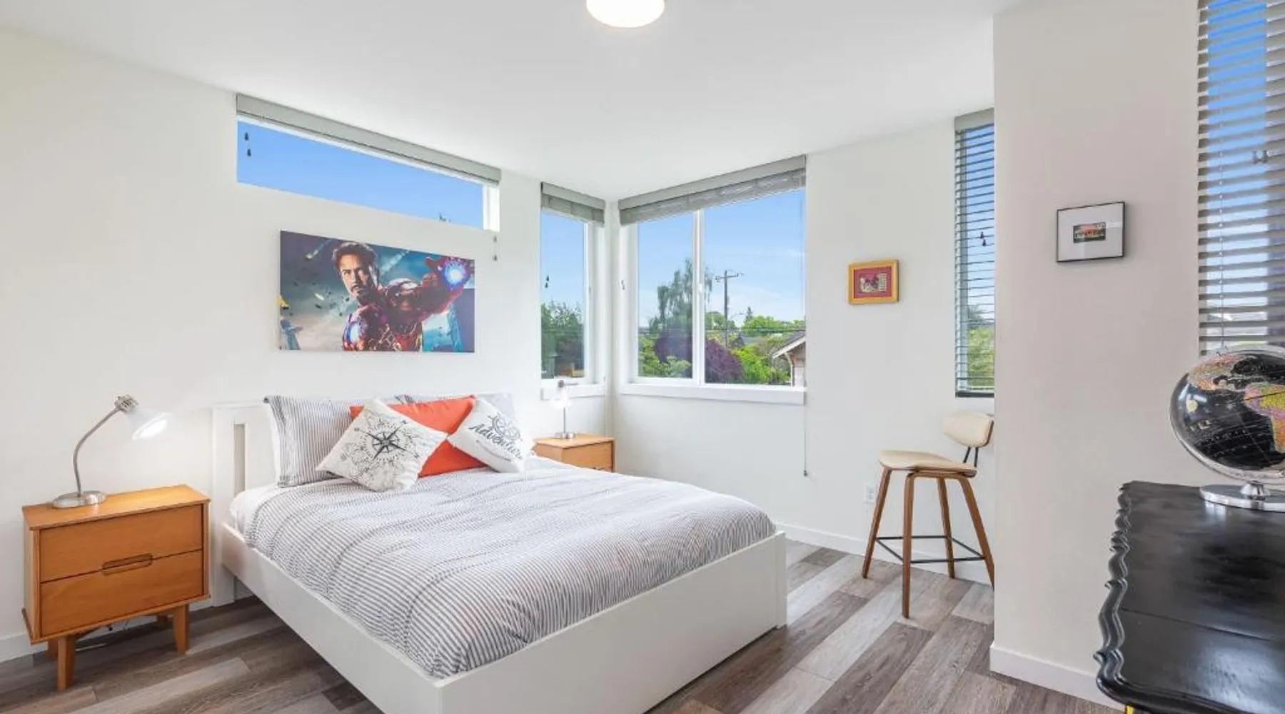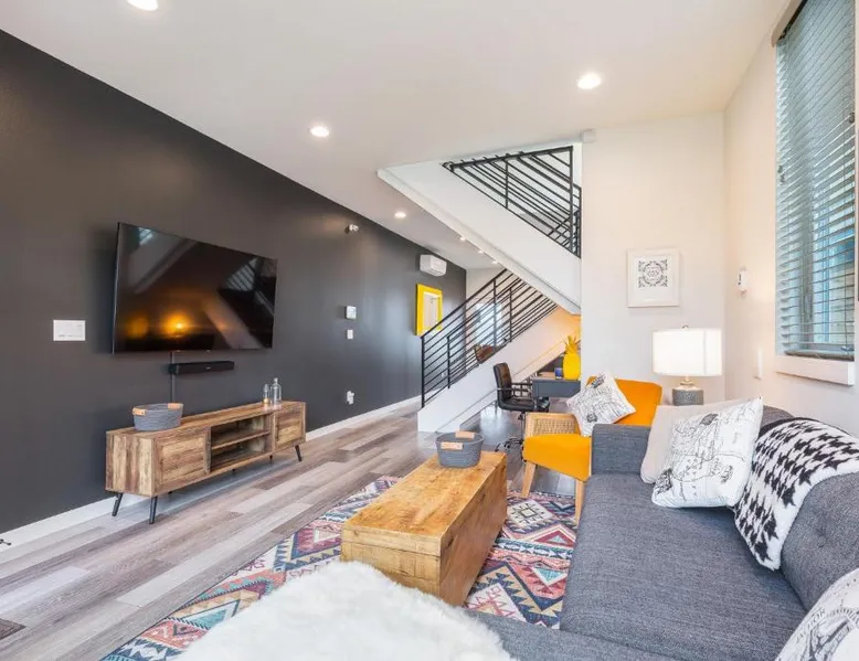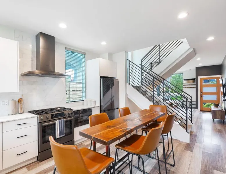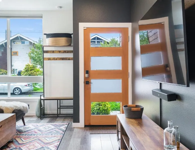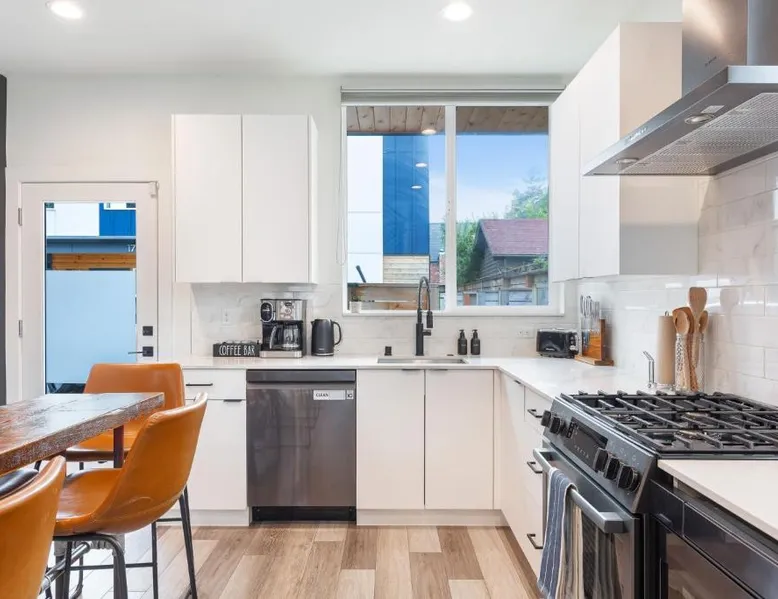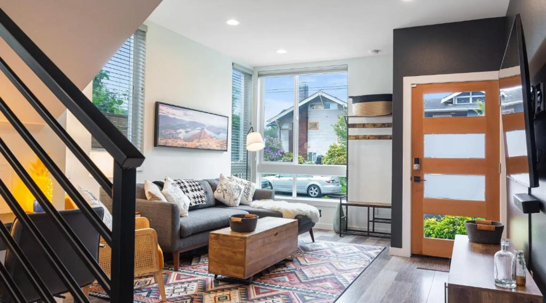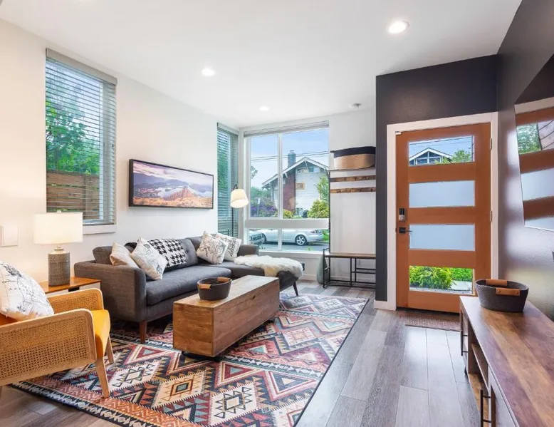 Spacious Accommodations: Stylish Townhouse Near Seattle Attractions in Seattle offers a spacious holiday home with four bedrooms and two bathrooms. The property features a sun terrace and free WiFi, ensuring a comfortable stay. Modern Amenities: Guests enjoy air-conditioning, a terrace, balcony, and streaming services. The kitchen is equipped with a refrigerator, microwave, dishwasher, and oven. Additional amenities include a washing machine, work desk, and free toiletries. Convenient Location: Located 4.3 mi from Seattle Lake Union Seaplane Base and 3.7 mi from the Space Needle, the property is near attractions such as the University of Washington and Seattle Asian Art Museum. Boating and hiking are available in the surroundings. Highly Rated: Guests appreciate the convenient location and excellent facilities, making it a highly rated choice for a Seattle holiday. Guests will find a stovetop, a refrigerator, a dishwasher and an oven in the well-equipped kitchen. The holiday home also includes a barbecue. The spacious air-conditioned holiday home features a flat-screen TV with streaming services, a washing machine, a private entrance, a tea and coffee maker as well as city views. The unit has 4 beds.