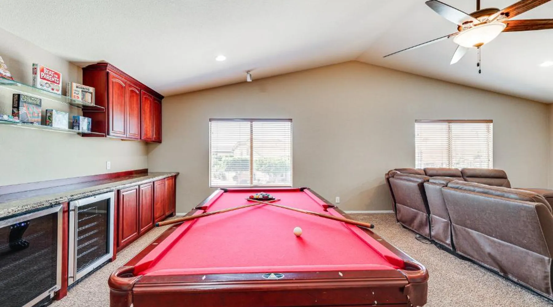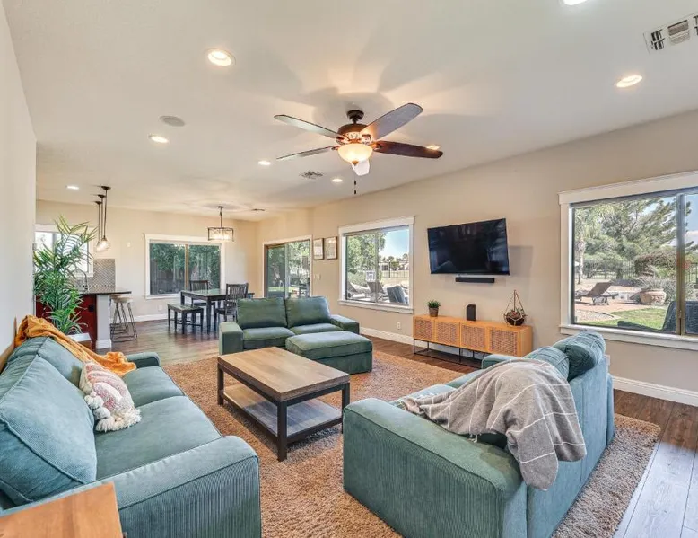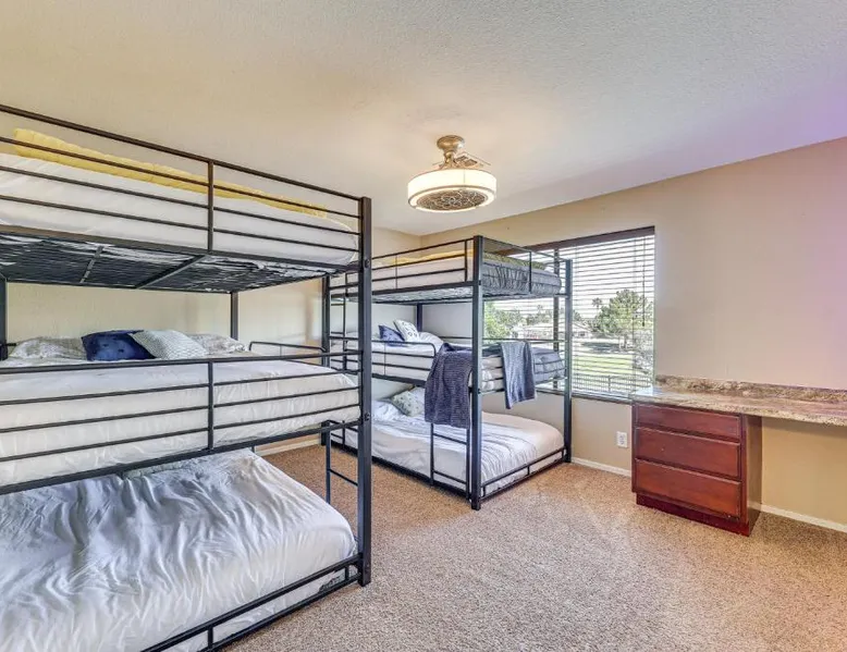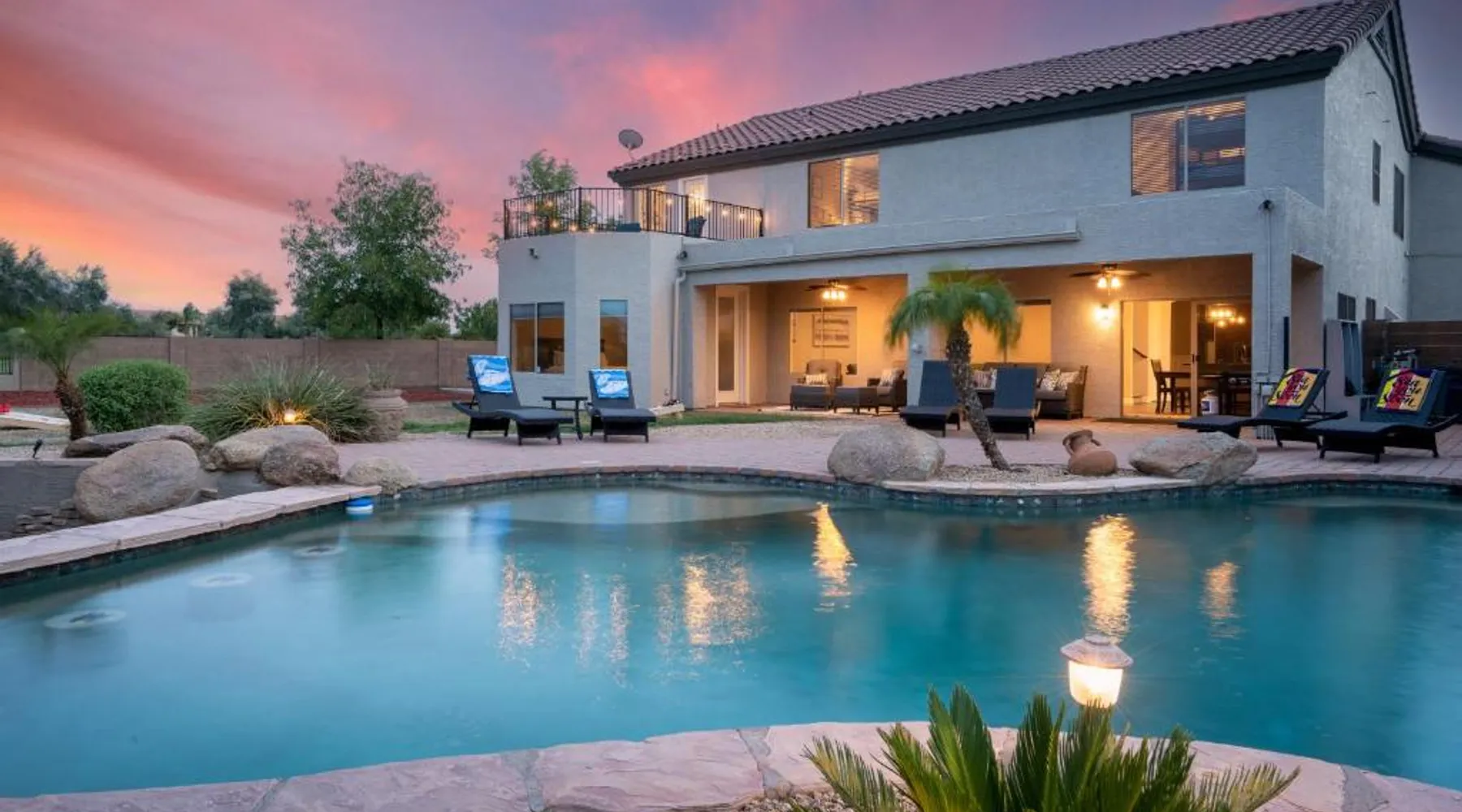 Spacious Accommodations: Expansive Mesa Retreat with Private Outdoor Pool! in Mesa offers a spacious holiday home with five bedrooms and three bathrooms. The property includes a living room and a fully equipped kitchen. Outdoor Amenities: Guests can enjoy an outdoor swimming pool and a hot tub. Free WiFi is available throughout the property, ensuring connectivity. Additional Facilities: The holiday home features a games room and a private entrance. Paid on-site parking is provided for convenience. Local Attractions: Phenix-Mesa Gateway Airport is 5 mi away. Nearby attractions include Sea Life Arizona (21 mi) and Phenix Zoo (24 mi). This luxurious holiday home features a private pool, a hot tub and a fireplace. Boasting a private entrance, this air-conditioned holiday home comes with 2 living rooms, 5 separate bedrooms and 3 bathrooms with a bath and a shower. The fully equipped kitchen has a stovetop, a refrigerator, a dishwasher and kitchenware. The spacious holiday home features a washing machine, a coffee machine, a wardrobe, a safe deposit box, as well as a TV. The unit has 14 beds.