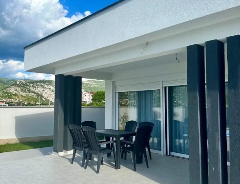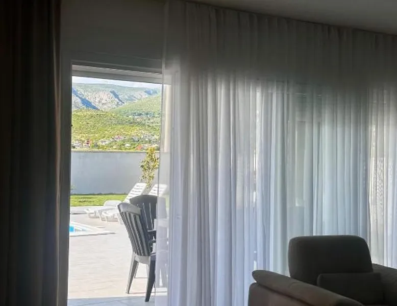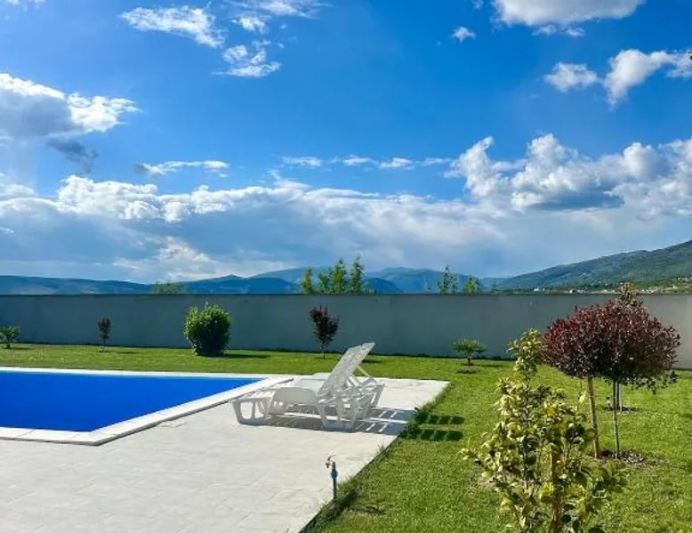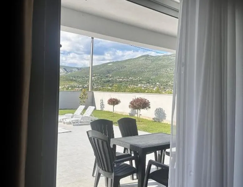 Elegant Accommodations: Villa Dora in Mostar offers a spacious villa with three bedrooms and two bathrooms. The property features a living room, family rooms, and a private entrance. Outdoor Amenities: Guests can enjoy a seasonal outdoor swimming pool, terrace, and garden. The terrace and balcony provide relaxing spaces with garden and pool views. Modern Facilities: The villa provides free WiFi, air-conditioning, and a fully equipped kitchen with a refrigerator, microwave, dishwasher, and oven. Additional amenities include a washing machine, dining area, and TV. Convenient Location: Located 1.2 mi from Mostar International Airport, Villa Dora is 7.5 mi from Old Bridge Mostar and 28 mi from Kravica Waterfall. Nearby attractions include Muslibegovic House and Old Bazar Kujundziluk. The private pool is the standout feature of this villa. Boasting a private entrance, this air-conditioned villa comes with 1 living room, 3 separate bedrooms and 2 bathrooms with a shower and a hairdryer. Guests will find a stovetop, a refrigerator, a dishwasher and an oven in the fully equipped kitchen. The villa also includes a barbecue. Featuring a terrace with garden views, this villa also features a washing machine and a flat-screen TV. The unit has 3 beds.