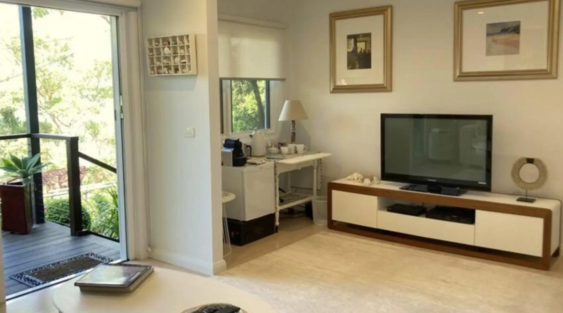 Comfortable Living: Surf'n'Joe luxury one bedroom suite in Palm Beach offers a spacious apartment with one bedroom and one bathroom. Guests enjoy free WiFi, air-conditioning, and a balcony for relaxation. Convenient Facilities: The property provides free on-site private parking, a hairdryer, and a TV. Reception staff speak English, French, and Italian, ensuring smooth communication. Prime Location: Located 30 mi from Sydney Kingsford Smith Airport, the apartment is a 12-minute walk from Whale Beach. Nearby attractions include Taronga Zoo (20 mi) and Sydney Opera House (22 mi). Boating is available in the surroundings. Highly rated by guests. Boasting a balcony, this apartment also features air conditioning, heating and a flat-screen TV. The unit has 1 bed.