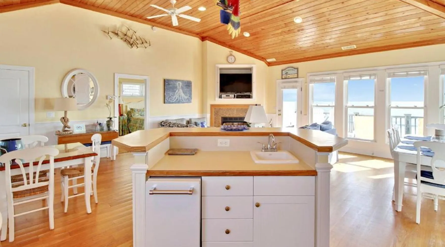 Beachfront Location: C-Breeze in Surf City offers direct beachfront access and stunning sea views. Guests enjoy free WiFi throughout the property, ensuring connectivity during their stay. Comfortable Accommodations: The holiday home features four bedrooms and four bathrooms, providing ample space for relaxation. The living room includes a dining area, perfect for entertaining. Modern Amenities: Equipped with air-conditioning, a balcony, washing machine, and a fully fitted kitchen with a refrigerator, oven, and dishwasher. Additional amenities include a TV, dining table, and free on-site private parking. Local Attractions: Located 30 mi from Wilmington International Airport, C-Breeze is close to Arlie Gardens (27 mi) and Bellamy Mansion Museum Of History And Design Arts (31 mi). Guests can make meals in the kitchen that is equipped with a stovetop, a refrigerator, a dishwasher and kitchenware. The air-conditioned holiday home provides a flat-screen TV with cable channels, a washing machine, a tea and coffee maker, a seating area as well as sea views. The unit offers 7 beds.