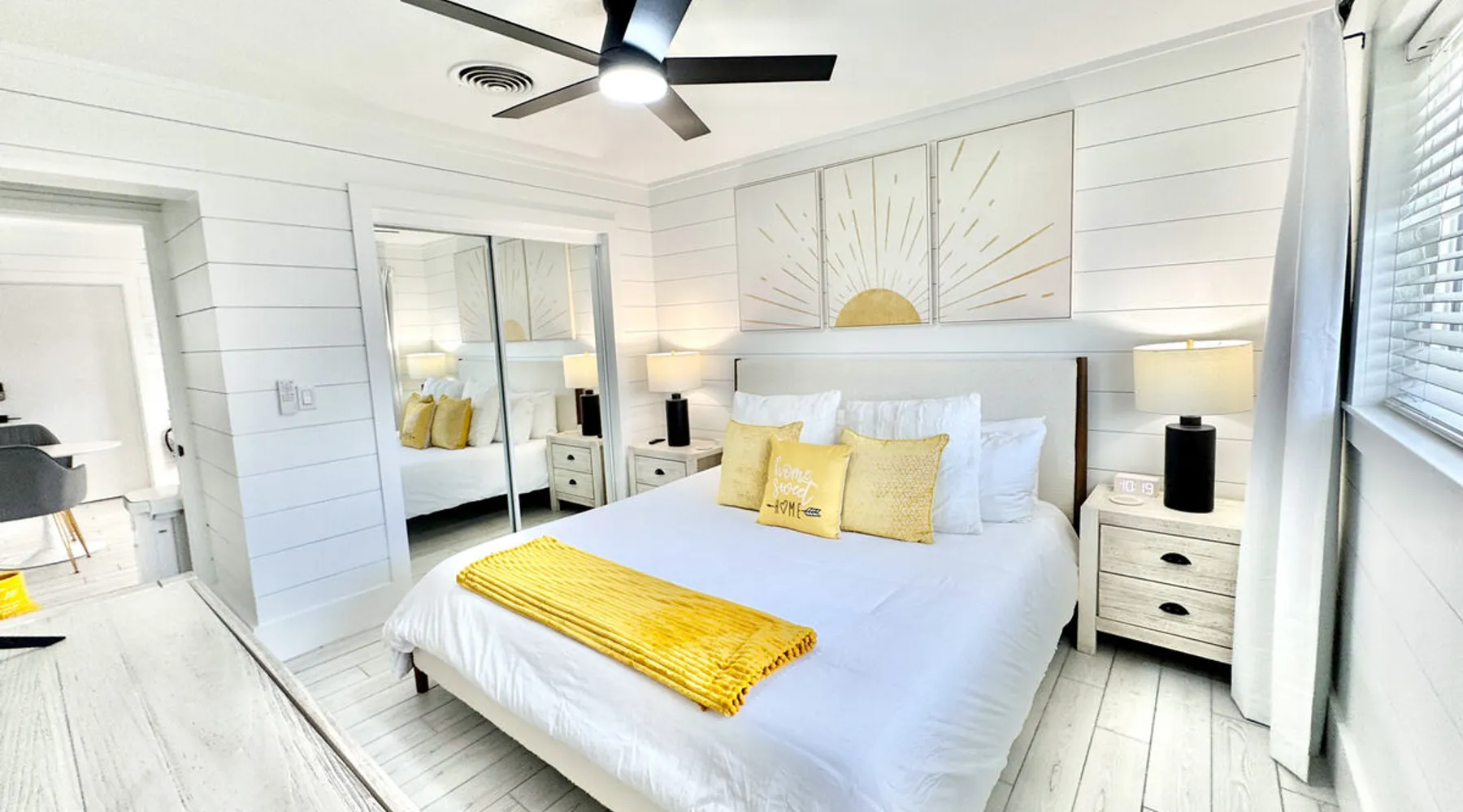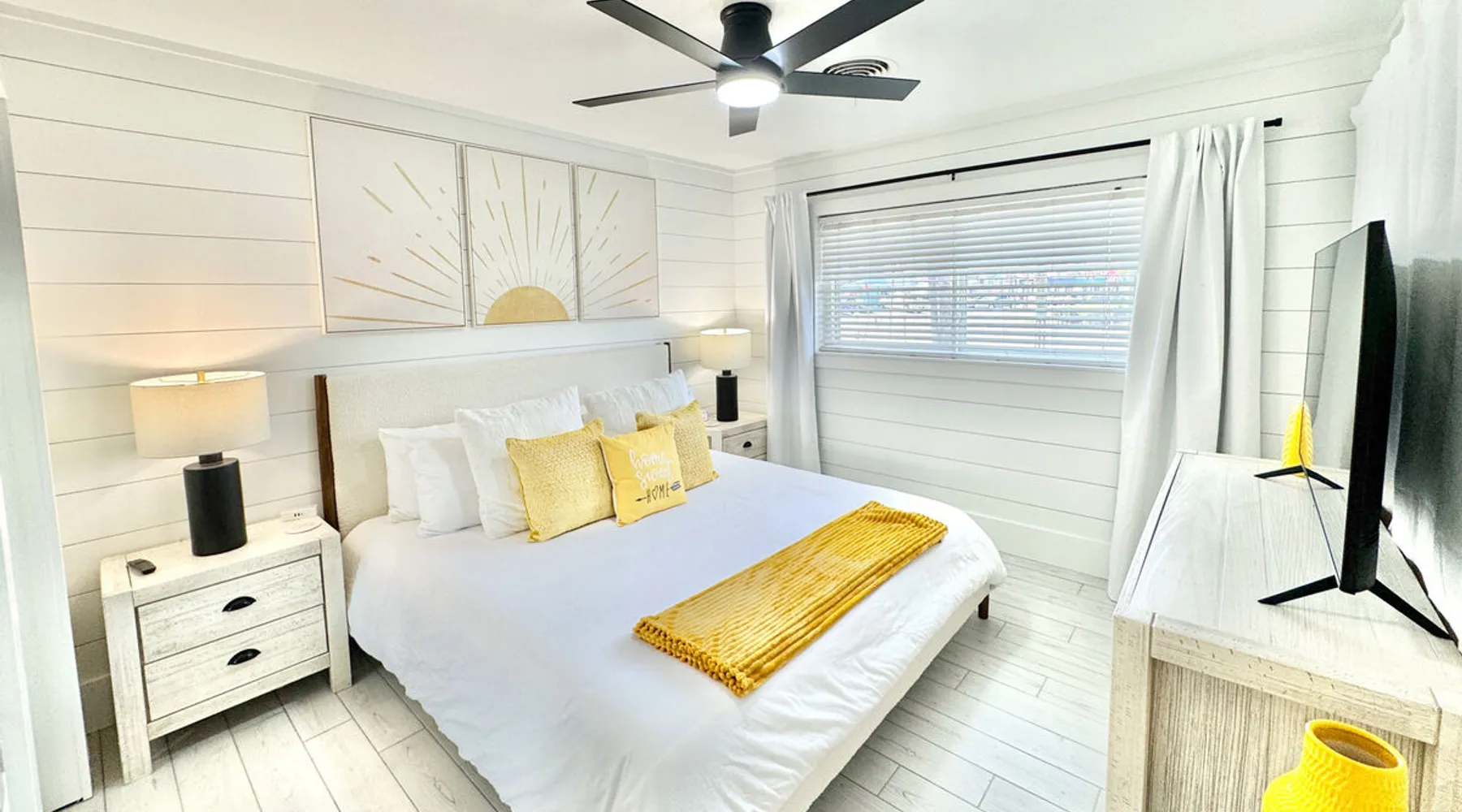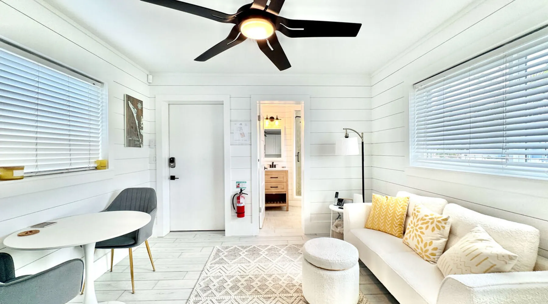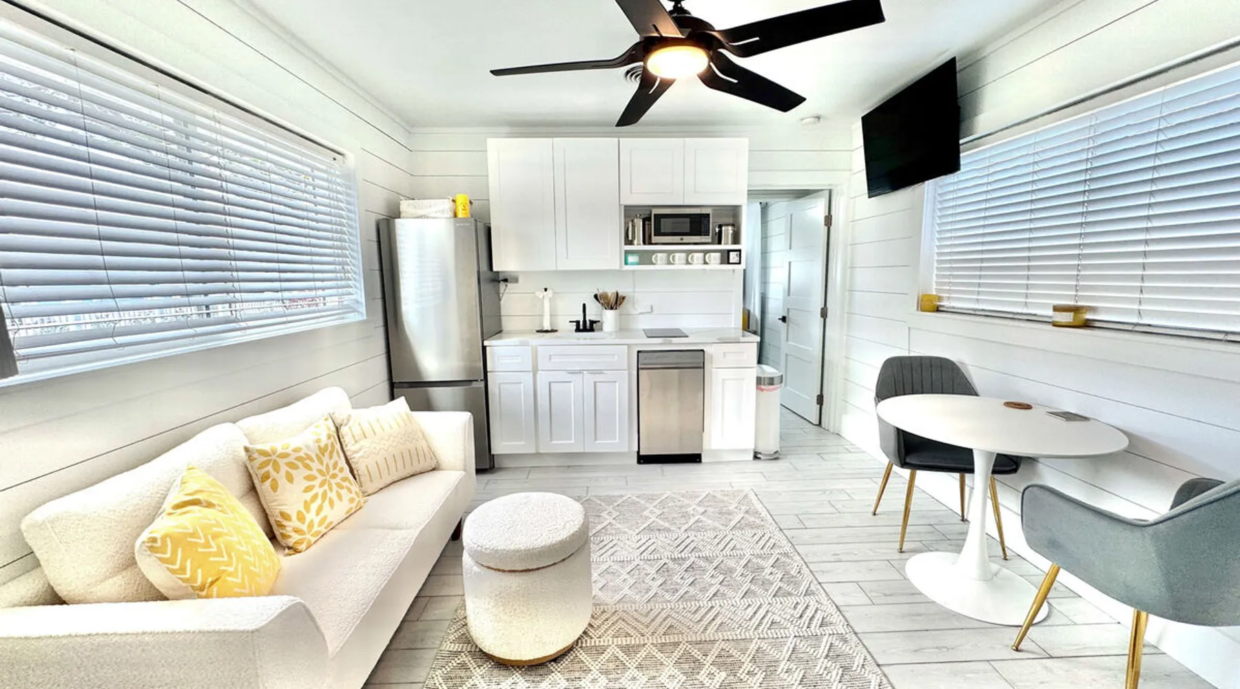Cozy ground level one bed one bath studio is bright and has shiplap throughout after being recently updated. Amazing location, walk to many shops, restaurants & bars. Located just 0.4 miles from the white sandy beach. The kitchenette has fridge/freezer, hob, microwave and dishwasher. Garden with patio, 2 x sun loungers & BBQ. Screened in porch with seating. Bedroom has a smart TV and King bed. Property is duplex attached to another home with a pool that is not part of the rental. The space 7-minute walk to the beach. Close to restaurants and grocery stores. Welcome to Happy Place, a cozy ground level one bedroom one bathroom studio is bright and has shiplap throughout after being recently updated. Located just 0.4 miles from the white sandy beaches of the Gulf of Mexico. surrounded by tropical landscaping. This bungalow has all the essentials for a fabulous vacation. There is a kitchenette with stainless steel fridge, hob & microwave and dish-ware. There is a bistro table set for two guests. After a long day of fun at the beach and watch your favorite show on the large flat screen TV and fall asleep to the sound of the nearby palm trees swaying. The bedroom has a smart TV and King bed with Tuft & Needle mattress, the bathroom has a walk-in shower. Stroll to the beach each evening to watch the amazing Anna Maria Island sunsets. Everything you could want is in close proximity, including the beach, restaurants, and shopping centers, and up the street is an Anna Maria Island trolley stop that can take you and your guests anywhere you like on this coastal 7-mile island. If you would like to relax by a swimming pool day passes can be purchased for $20 (price may be subject to change) from Resort Pass for the "Waterline Villas & Marina" just a short walk away! The Chateau restaurant/bar is next to the pool where you can purchase food and drinks. Search the Resort Pass website for Holmes Beach to reserve the day pass or explore other close by resort pools. One of the best features of this home is the location, you can walk to restaurants such as The Ugly Grouper, The Chateau, Isola Bella Italian Eatery, Breakfast At Victoria's, Minnie's Beach Cafe, Pizzano's Pizza, AMI Mediterranean Express and more such as Blueberries Cafe, Anna Maria Island Coffee Shack, Scott's Deli and Small Town Creamer Ice Cream store. You can also walk to bars such as The Doctors Office, The Freckled Fin, D'Coy Ducks, Duffy's Tavern, Fifty Three Fifty The Pourhouse & Hurricane Hanks. Also within walking distance is AMI Health & Fitness Gym, the soccer field, playground, pickle ball and tennis courts, skate park and public boat ramp. There is a free shuttle and the Monkey Bus if you would like to check out bars and restaurant's outside of Holmes Beach. Seaside Laundromat is located within walking distance, just 0.2 of a mile away. Another option within driving distance are YoWash Laundromat in Bradenton 8.4 miles away. Please note this property is duplex that is attached to another home with a pool that is not part of the rental. General Complimentary high-speed wireless internet Smoke-free and pet-free for your comfort Towels and linens are provided Fully equipped kitchen Keyless entry 2 x Beach Chairs Living Area/Kitchen Smart TV Sofa Bed Table & 2 Chairs Fridge/Freezer, Hob, Dishwasher & Microwave Bedroom/Bed Sizes Bedroom 1 - King (Downstairs) Garden Patio With Seating 2 x Sun loungers BBQ Grill Professionally managed to offer you superior, personalized service. No hassle with key pick-up! Drive straight to your vacation rental!