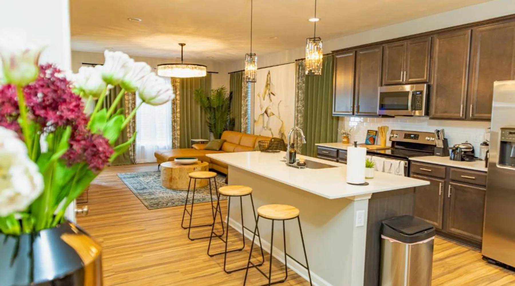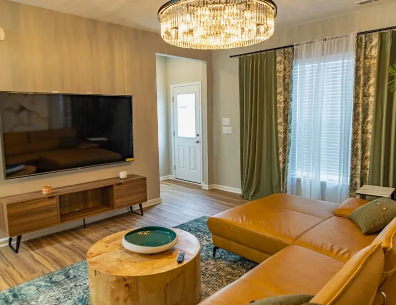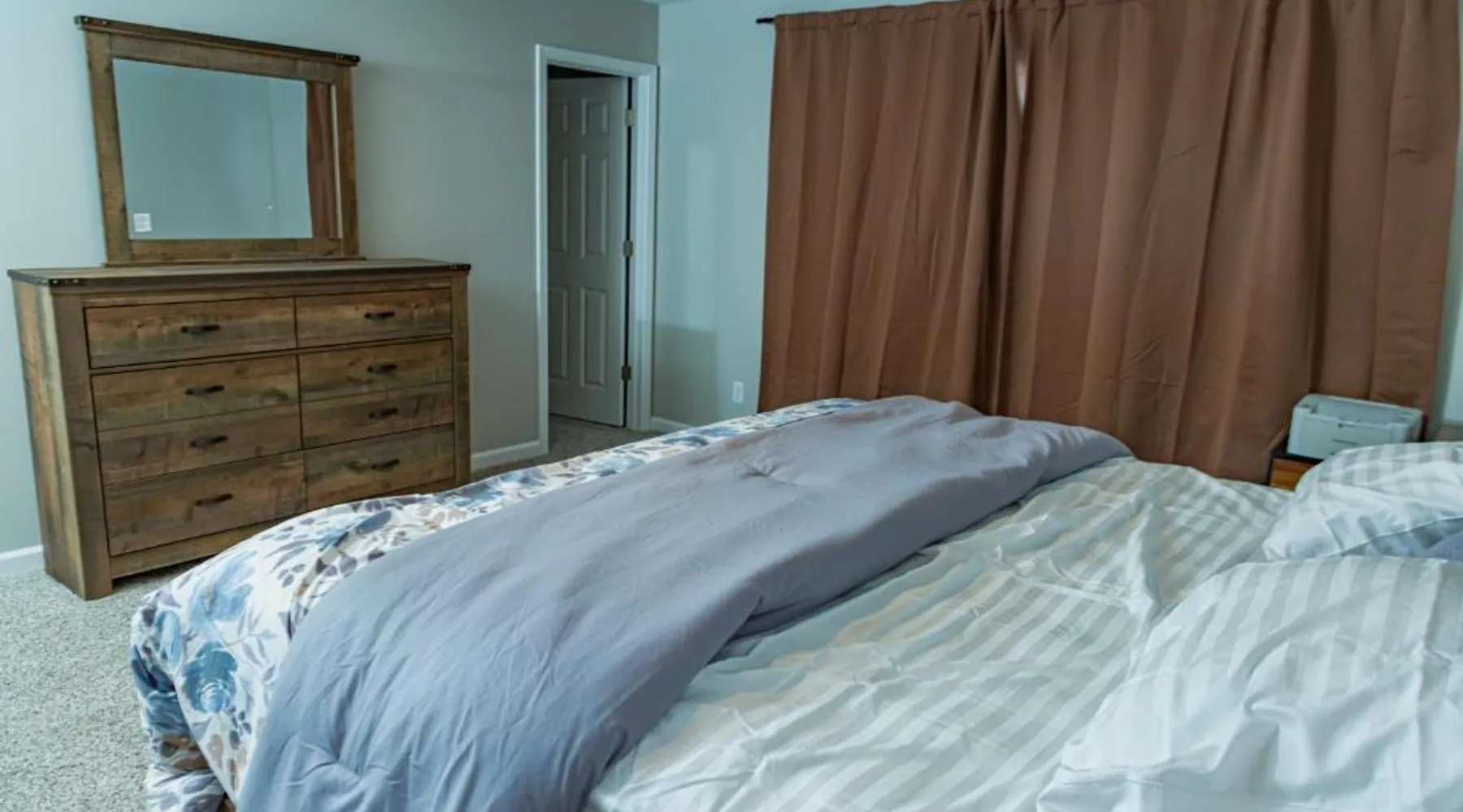 Spacious Holiday Home in Indianapolis: 2 Story New Build 4 Miles to Downtown 3 Miles to Speedway 8 Miles to Airport offers a spacious holiday home in Indianapolis. The property features three bedrooms and three bathrooms, a terrace, and free WiFi. Comfortable Living Spaces: The home includes a living room with a sofa bed, a fully equipped kitchen, and a washing machine. Additional amenities include air-conditioning, a work desk, and free toiletries. Convenient Facilities: Guests benefit from free on-site private parking, a paid airport shuttle service, and full-day security. The property also provides family rooms and a private entrance. Nearby Attractions: Located 4.3 mi from Indianapolis International Airport, the holiday home is close to Indianapolis Motor Speedway (3 mi), Lucas Oil Stadium (3.7 mi), and the Indianapolis Zoo (1.9 mi). Boasting a private entrance, this air-conditioned holiday home comes with 1 living room, 3 separate bedrooms and 3 bathrooms with a bath and a shower. In the fully equipped kitchen, guests will find a refrigerator, kitchenware, a microwave and a tea and coffee maker. A seating area with a flat-screen TV, a washing machine and a terrace are available in this spacious holiday home. The unit has 5 beds.