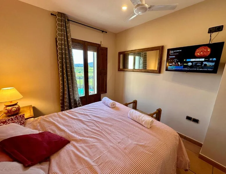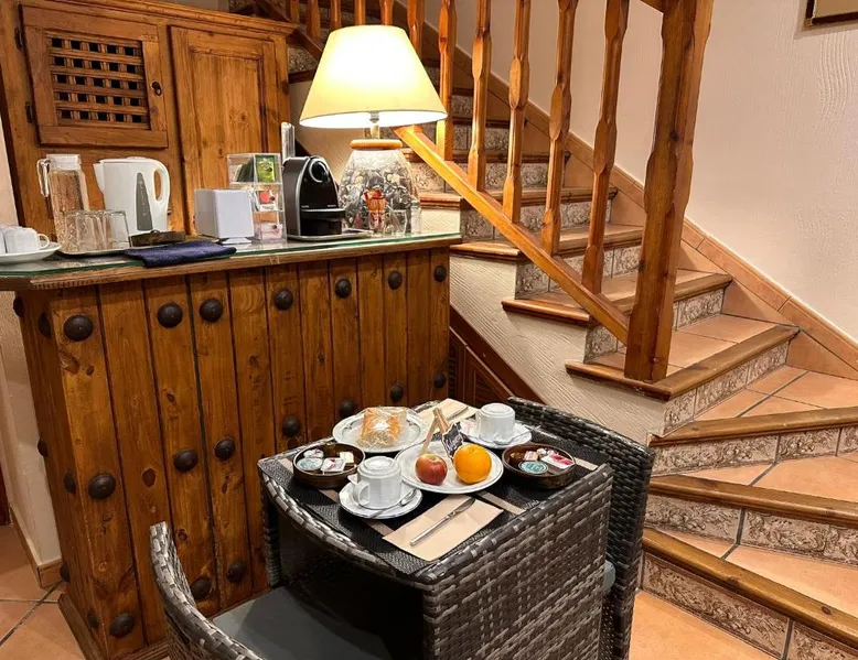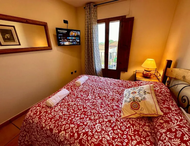 Comfortable Accommodations: Posada La Fragua in Gandullas offers comfortable rooms with private balconies, mountain or city views, and modern amenities including free WiFi, streaming services, and private bathrooms with bidets. Dining Experience: The family-friendly restaurant serves Argentinian and European cuisines for lunch, offering vegetarian and vegan options. Guests can also enjoy the terrace and bar for relaxation. Convenient Facilities: The hotel provides private and express check-in and check-out services, a coffee shop, outdoor seating area, and a tour desk. Additional amenities include a tour desk and walking tours. Local Attractions: Located 43 mi from Adolfo Suarez Madrid-Barajas Airport and 30 mi from Monasterio de Santa Maria de El Paular, the hotel offers walking and hiking tours. Guests appreciate the quietness of the area. The suite features 1 bedroom and 1 bathroom with a shower and free toiletries. Featuring a balcony with mountain views, this suite also offers a wardrobe and a flat-screen TV with streaming services. The unit offers 2 beds.