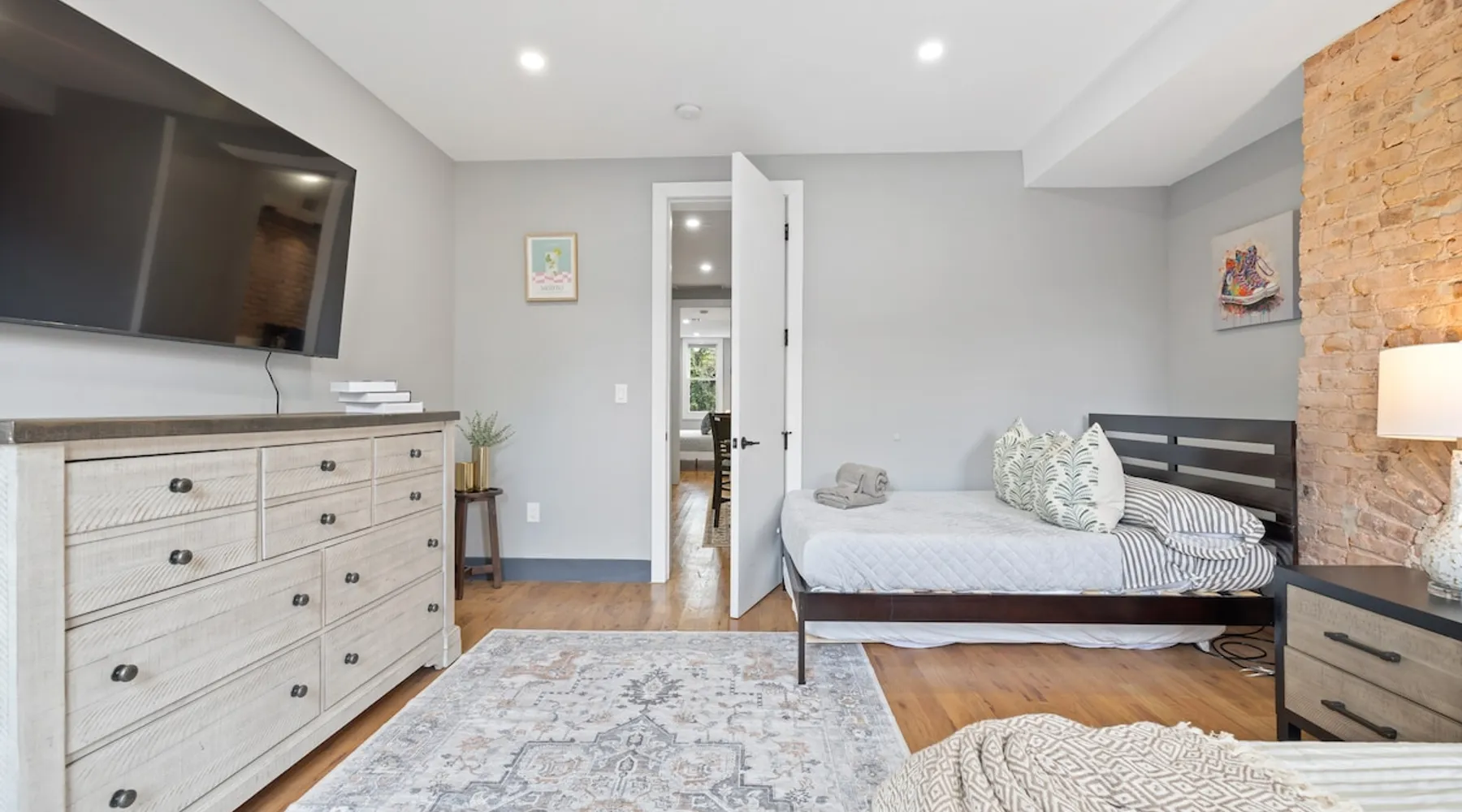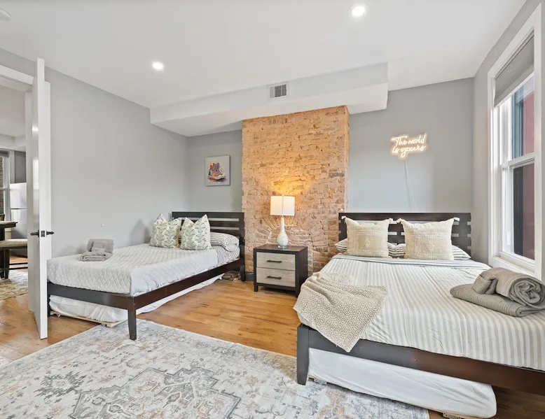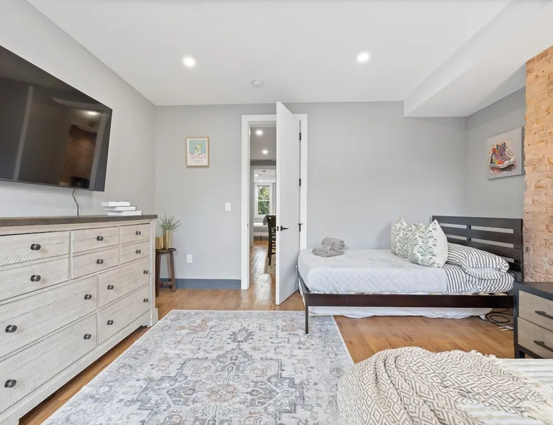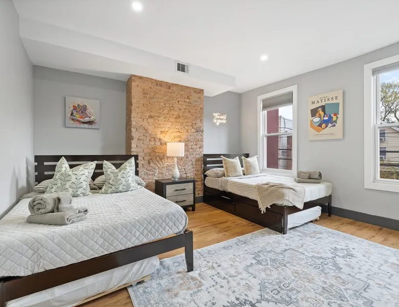 🗽 Your Stylish Escape Just Minutes from NYC — Reach Manhattan in just 15 minutes by car or PATH. Nestled in a peaceful neighborhood near Central Avenue and only 5 minutes from Hoboken, this spacious, design-forward retreat is your perfect launchpad for exciting city adventures and vibrant local gems. 🥐 Start your morning with a stroll to the renowned Choc·O·Pain bakery, then return to unwind in a home with sleek furnishings, luxe finishes, and cozy, elegant comfort. See more below! The space ★ Welcome to Your Upgraded Haven | Comfort, Style & NYC Access ★ Experience comfort and style in this beautifully appointed 2-bedroom, 2-bath apartment in the heart of Jersey City Heights. Filled with natural light, modern touches, and functional space, this retreat is perfect for families, groups, and business travelers—just minutes from Hoboken and Manhattan. 🛋️ Living Area – Relax & Recharge ✨ Open layout for lounging, dining, and gathering 📶 High-speed Wi-Fi for work or streaming 🧺 In-unit washer & dryer for convenience 🪑 Dining area with comfortable seating 🍳 Kitchen – Fully Equipped for Easy Living 🔥 Oven, stove, and full-size refrigerator ☕ Coffee maker, toaster, cookware, utensils, and deep sink 🌟 Bright, spacious, and perfect for takeout or home-cooked meals 🛏️ Bedrooms – Peaceful, Plush & Private 👑 Primary Bedroom – King bed + private ensuite bath 🛌 Second Bedroom – Two full beds with trundles (sleeps up to 6) 📺 Smart TVs in both rooms 🛏 Soft linens, pillows, and fresh towels 💡 Dressers and bedside lighting for comfort 🛁 Bathrooms – Clean & Modern 🚿 Two full bathrooms with shower-tub combos 🪞 Large vanity mirrors and storage 🧴 Fresh toiletries and fluffy towels provided 📍 Nearby Points of Interest 🌆 Times Square – 25–30 min via PATH | ~20 min by car 🚆 Journal Square PATH Station – 7–8 min drive 🚉 Hoboken Terminal – 8–10 min drive 🌿 Riverview Fisk Park – 2–3 min walk 🗽 World Trade Center – 20 min via PATH 🛍 Newport Centre Mall – 10–12 min drive 🌳 Liberty State Park – 15 min drive 🌟 Perfect for Work, Play, or Longer Stays Whether you’re visiting for business, vacation, or a longer escape, this light-filled, functional home offers the ideal balance of comfort, access, and style. Make it your home base for exploring the NYC metro area. ⏰ House Notes ⏳ Check-out strictly at 11:00 AM 💲 $200 late check-out fee applies ⏱ Early check-in before 4:00 PM available for an additional fee Guest access ✨ Your Private Urban Retreat – Peaceful, Spacious, and All Yours Step into your own slice of comfort in this fully private 2-bedroom, 2-bath apartment designed for relaxation and connection. From the moment you arrive, you'll enjoy exclusive access to every corner of the home—no shared spaces, no interruptions. Just you, your group, and a beautifully curated environment to make your own. Spread out in open, light-filled living spaces. Cook meals in the modern, fully stocked kitchen. Then step outside to your private backyard oasis featuring a cozy firepit—the perfect spot to unwind with a drink or chat late into the evening. Please note: The building does not have an elevator (walk-up access only). Included for your comfort and convenience: ✔ High-speed Wi-Fi throughout the apartment ✔ Private entrance for easy, secure access ✔ 24-hour exterior security cameras for peace of mind Whether you're here for a weekend getaway, an extended stay, or a working trip to the city, this is your serene home base just minutes from Manhattan. GUESTS WHO CHECK OUT AFTER 11:00 AM WILL BE SUBJECT TO A $200 LATE DEPARTURE FEE. IF YOU NEED AN EARLY CHECK-IN BEFORE 4:00 PM, AN ADDITIONAL FEE WILL APPLY. Other things to note 🚗 Parking Free street parking is available on a first-come, first-served basis. Please note that we cannot guarantee a permanent spot. Be sure to check street signs for street cleaning days and hours to avoid tickets. Paid parking garages are also nearby (independently operated and not affiliated with us). 🔑 Entry & Security You’ll receive a secure private entry code for the duration of your stay. Please do not share this code with anyone outside your reservation. For your safety, 24-hour exterior security cameras monitor the property. ⏰ Check-In & Check-Out Check-in: After 4:00 PM Check-out: By 11:00 AM Early check-in or late check-out may be available for $100 (pending availability). Please message us ahead of time to request. 🛏 Need an Air Mattress? If you’d like an air mattress, please confirm before booking. We’ll do our best to accommodate your request depending on availability. 🚭 No Smoking or Drug Use This property is strictly non-smoking and drug-free. Violations will result in: • $1,000 penalty • Immediate cancellation of your reservation • No refund 🎉 No Parties or Events Parties, gatherings, or unregistered guests are not permitted. Violations will result in: • $2,000 penalty • Termination of your stay • No refund These house rules ensure a clean, quiet, and respectful experience for everyone. Thank you for your understanding—and please reach out if you have any questions! ⚠️ GUESTS WHO CHECK OUT AFTER 11:00 AM WILL BE SUBJECT TO A $200 LATE DEPARTURE FEE. ⚠️ IF YOU NEED AN EARLY CHECK-IN BEFORE 4:00 PM, AN ADDITIONAL FEE WILL APPLY. Registration Details STR-003036-2025