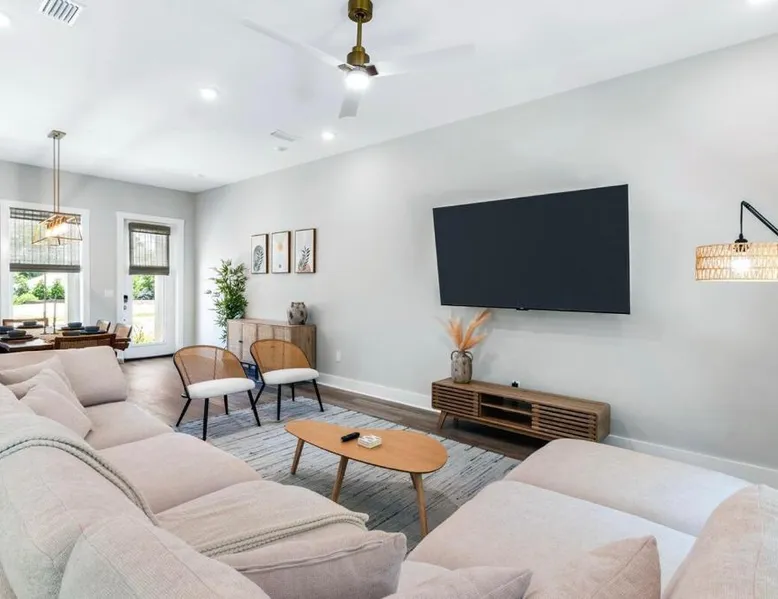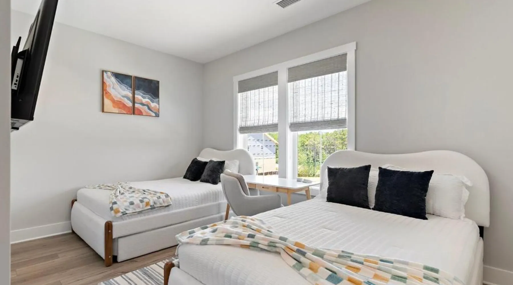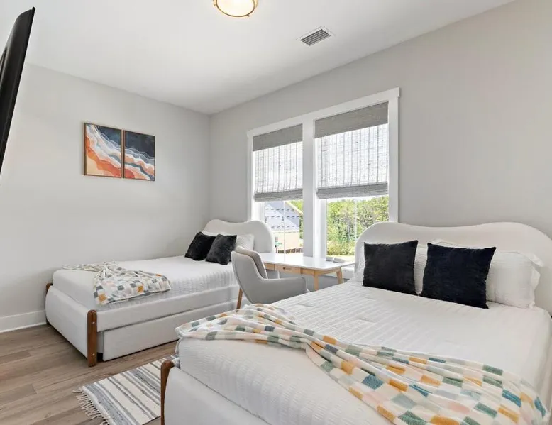 Spacious Accommodations: 3Zs Beach House 30A Sleeps 10! in Inlet Beach offers a spacious holiday home with three bedrooms and three bathrooms. The property includes a living room, dining area, and a terrace with garden views. Modern Amenities: Guests enjoy free WiFi, air-conditioning, and a fully equipped kitchen with a coffee machine, dishwasher, and microwave. Additional amenities include a washing machine, streaming services, and a work desk. Convenient Location: Located 21 mi from Northwest Florida Beaches International Airport, the property is a 12-minute walk from Inlet Beach. Nearby attractions include Russell-Fields Pier and Pier Park, each 9.9 mi away. Featuring a private entrance, this air-conditioned holiday home is consisted of of 1 living room, 3 separate bedrooms and 3 bathrooms with a shower and a hairdryer. Meals can be prepared in the well-fitted kitchen, which is fitted with a stovetop, a refrigerator, a dishwasher and an oven. The spacious holiday home offers a washing machine, soundproof walls, a tea and coffee maker, a flat-screen TV with streaming services, as well as garden views. The unit offers 5 beds.