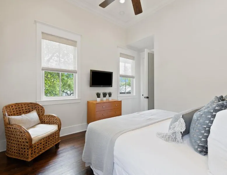 Spacious Accommodations: PTO Cottage in Rosemary Beach offers a spacious holiday home with three bedrooms and three bathrooms. The property features a fully equipped kitchen, dining area, and a comfortable seating space. Outdoor Amenities: Guests can enjoy an outdoor swimming pool and free WiFi, perfect for relaxation. The property includes a balcony with scenic views, ideal for outdoor activities. Convenient Facilities: The holiday home provides free on-site private parking, a tour desk, and air-conditioning. Additional amenities include a fireplace, barbecue, and a work desk, ensuring a comfortable stay. Nearby Attractions: Rosemary Beach is a 5-minute walk away, while Northwest Florida Beaches International Airport is 21 mi from the property. Other attractions include Russell-Fields Pier and Pier Park, both 9.9 mi away. Guests will have a special experience as this holiday home offers a fireplace. This spacious holiday home is consisted of of a kitchen, a seating area, 3 separate bedrooms and 3 bathrooms with a bath or a shower and a hairdryer. Guests will find a stovetop, a refrigerator, a dishwasher and kitchenware in the well-fitted kitchen. The holiday home also has a barbecue. This air-conditioned holiday home consists of a dining area, a flat-screen TV with cable channels a tea and coffee maker and a balcony. The unit offers 4 beds.