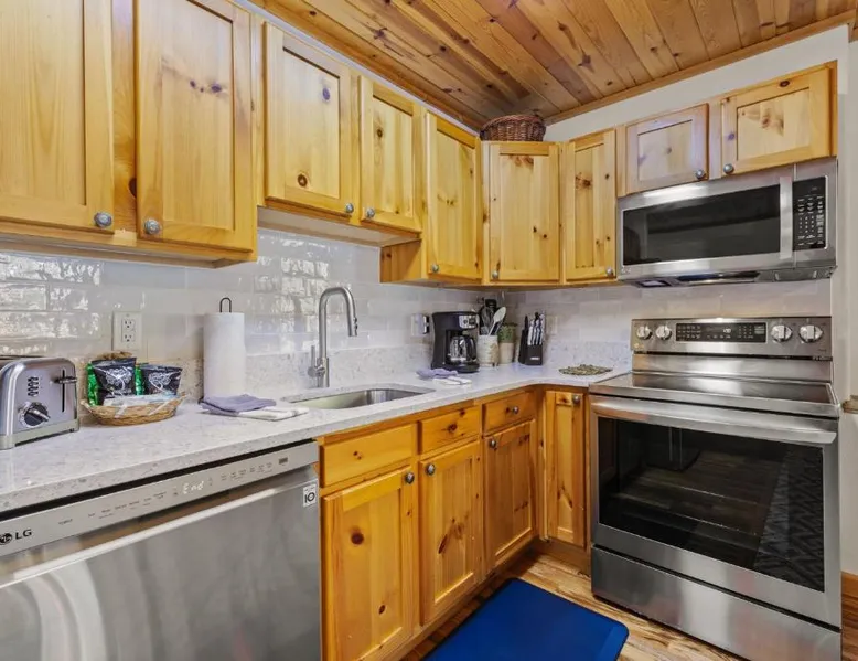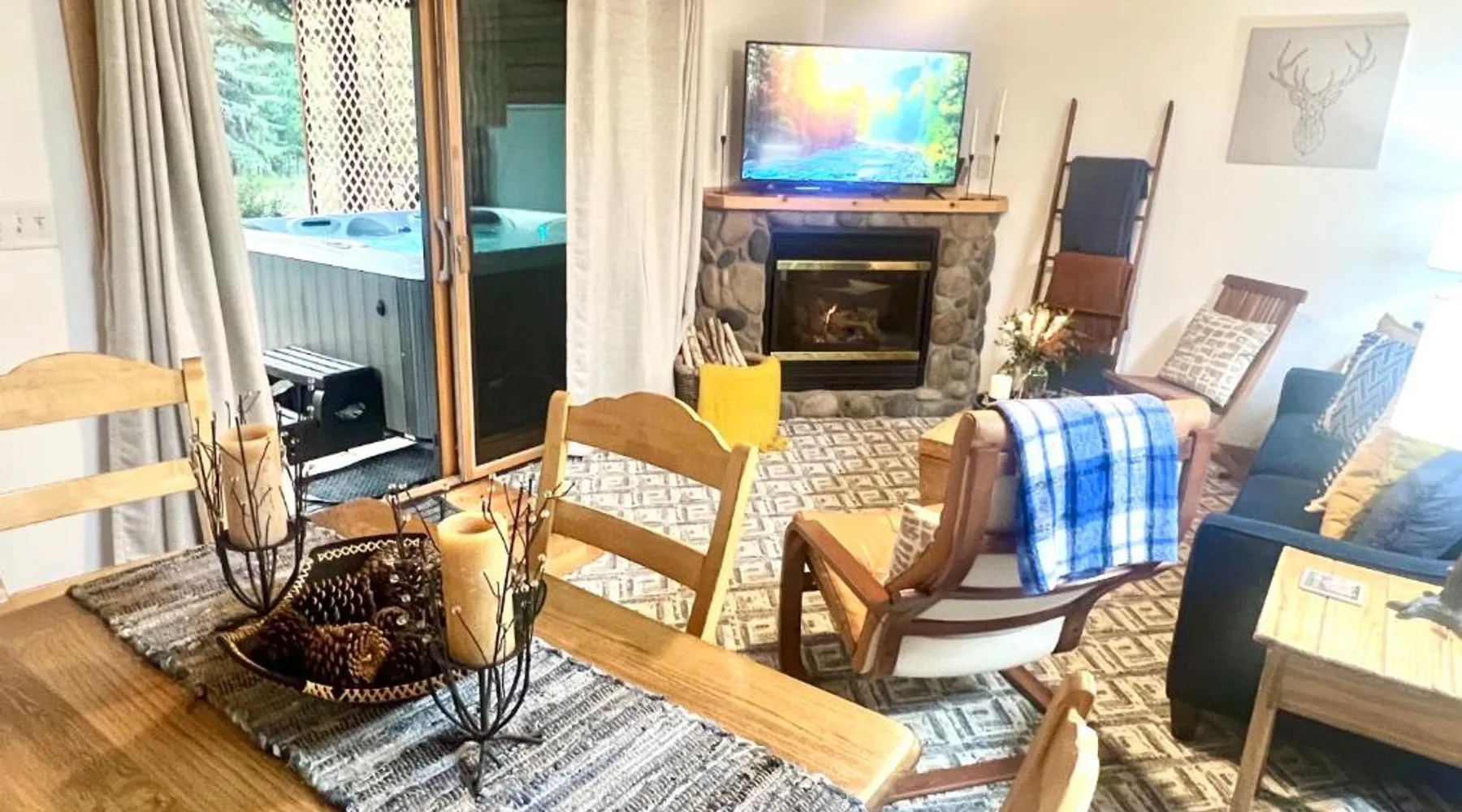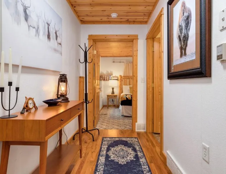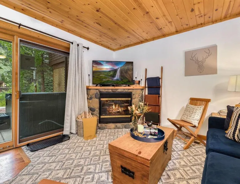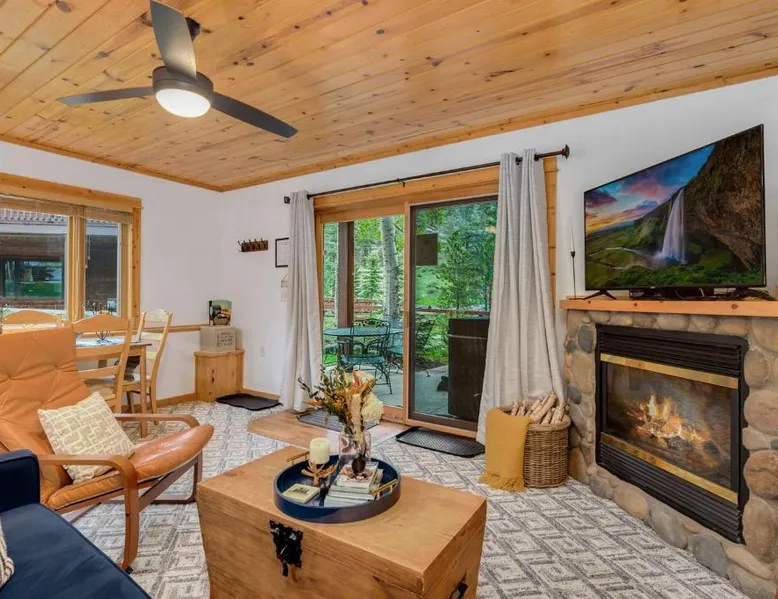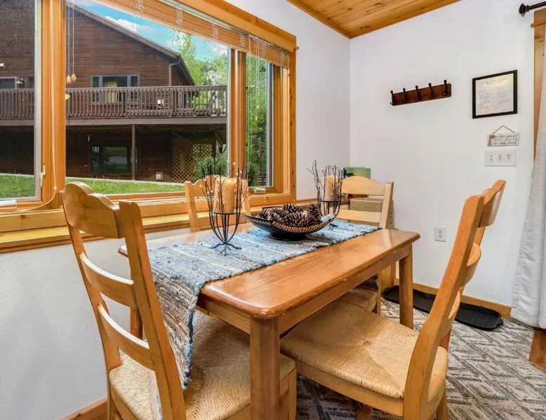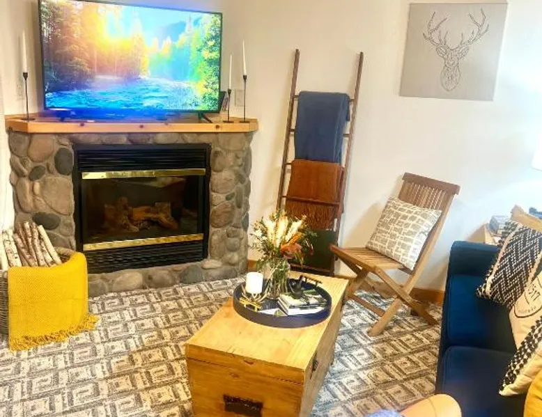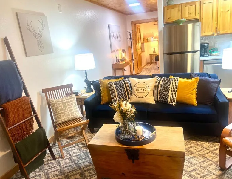 Spacious Living: Bugle Pointe B08 by Estes Park Condos in Estes Park offers a spacious apartment with one bedroom and a living room. The property features a private entrance and a fully equipped kitchen with modern appliances. Modern Amenities: Guests enjoy free WiFi, a hot tub, and an outdoor seating area. Additional amenities include streaming services, a washing machine, and a fireplace. The apartment offers mountain and river views, ensuring a relaxing stay. Convenient Facilities: The property provides free on-site parking, a dining area, and a fully equipped kitchen. Amenities include a dishwasher, microwave, and a variety of kitchenware. Free toiletries and a hairdryer are also available. Comfortable Living: The apartment features carpeted and tiled floors, a sofa bed, and a dining table. The living room is equipped with a TV and a comfortable sofa, while the bedroom offers a bath with free toiletries. This apartment's standout feature is the fireplace. This spacious apartment includes 1 living room, 1 separate bedroom and 1 bathroom with a bath and free toiletries. The apartment offers a flat-screen TV with streaming services, a washing machine, a private entrance, a tea and coffee maker as well as mountain views. The unit has 1 bed.