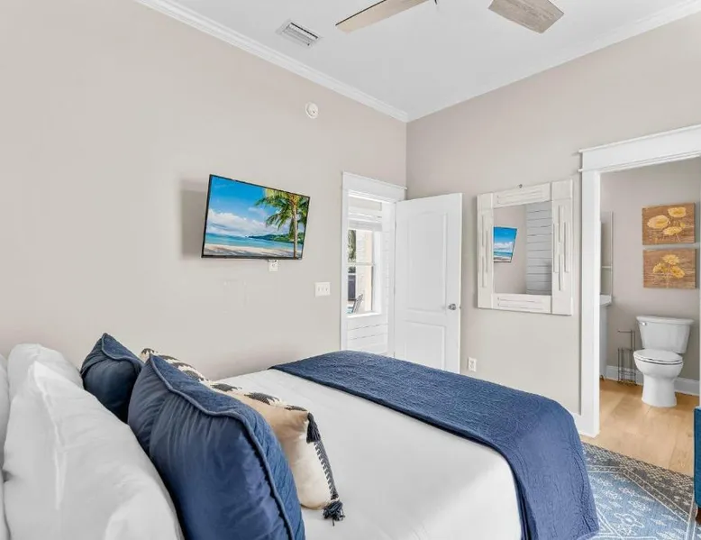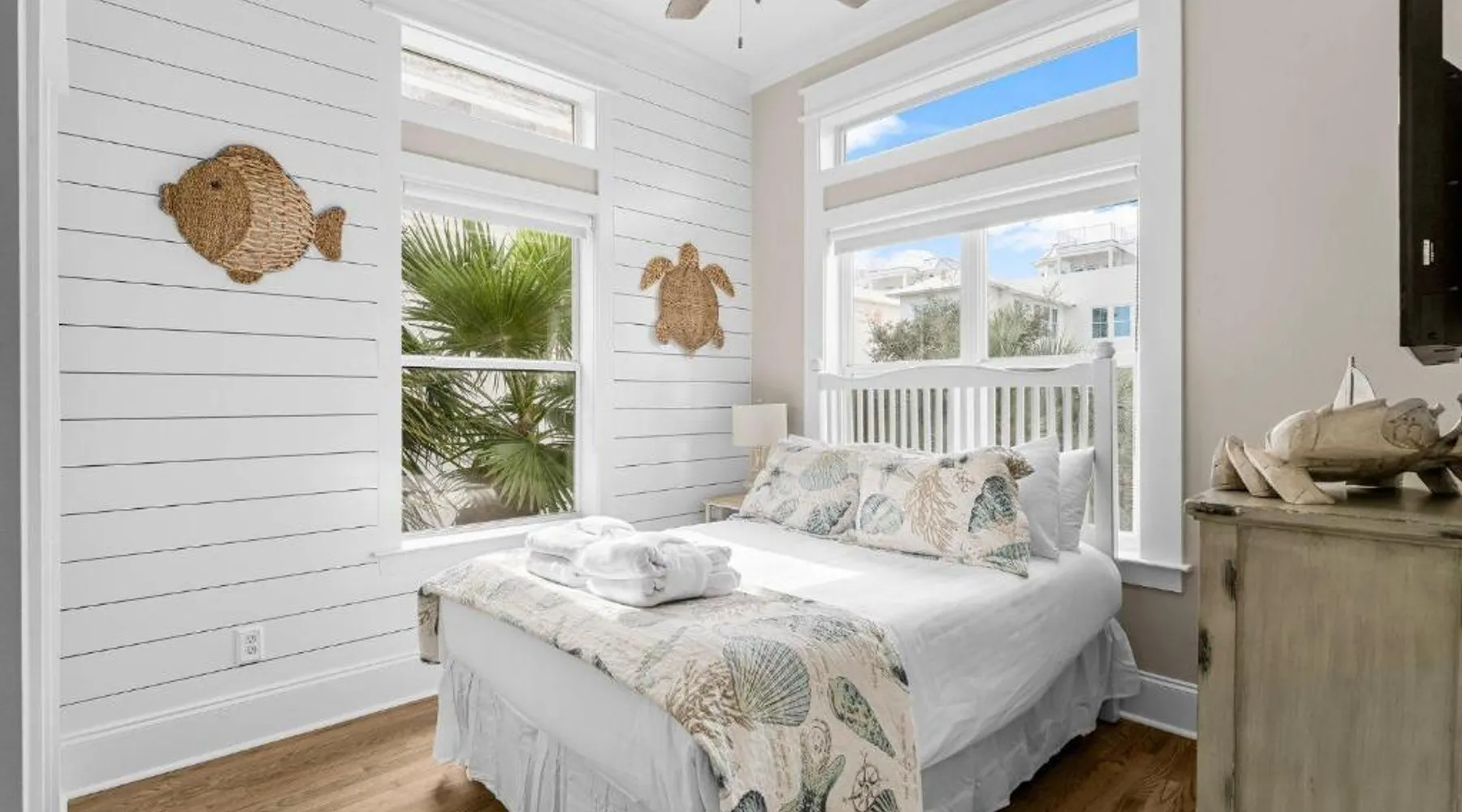 Spacious Accommodations: Coastal Vue in Seacrest offers a spacious holiday home with five bedrooms and four bathrooms. The property includes a living room, dining area, and a fully equipped kitchen. Exceptional Facilities: Guests can enjoy massage services, an outdoor swimming pool, and free WiFi. Additional amenities include a balcony with sea views, air-conditioning, and a private pool. Convenient Location: Located 21 mi from Northwest Florida Beaches International Airport, Coastal Vue is a 5-minute walk from Rosemary Beach. Nearby attractions include Russell-Fields Pier and Pier Park, each 11 mi away. This holiday home offers a private pool. This spacious holiday home consists of 1 living room, 5 separate bedrooms and 4 bathrooms with a bath and a shower. Guests will find a stovetop, a refrigerator, a dishwasher and kitchenware in the fully equipped kitchen. The holiday home also provides guests with a barbecue. The air-conditioned holiday home provides a flat-screen TV with cable channels, a tea and coffee maker, a seating area, a dining area as well as sea views. The unit offers 7 beds.