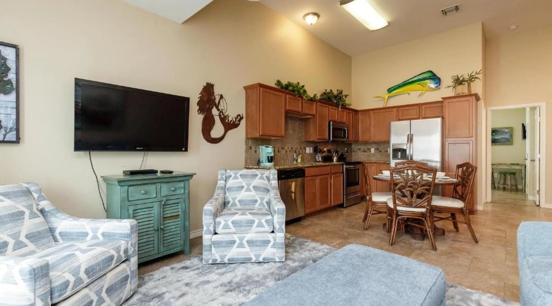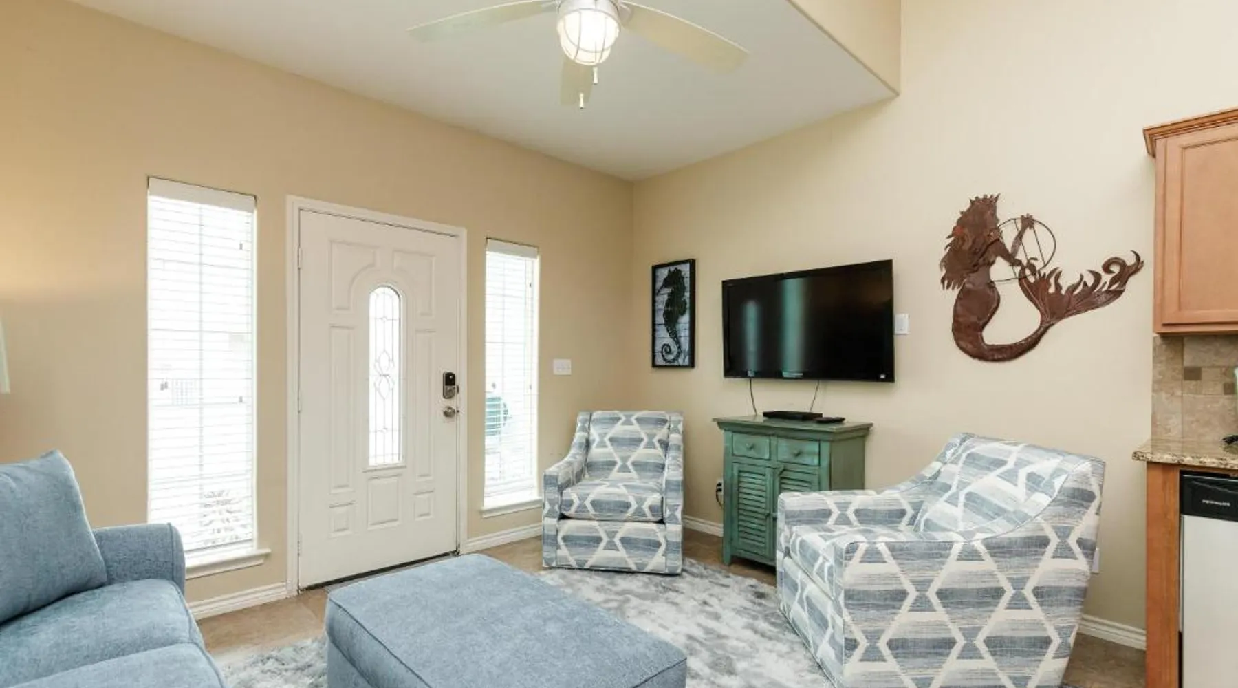 Comfortable Accommodations: Cozy 2 Bedroom Monthly Rates Pets & Pool in Port Aransas offers a holiday home with two bedrooms and two bathrooms. The property includes a living room and a private entrance. Modern Amenities: Guests enjoy free WiFi, air-conditioning, and a fully equipped kitchen with a refrigerator, microwave, dishwasher, and oven. Additional amenities include a washing machine, dining table, TV, and private pool. Outdoor Leisure: The holiday home features an outdoor swimming pool and a barbecue area. Free on-site parking is available for guests. Local Attractions: Port Aransas Beach is a 16-minute walk away. Nearby points of interest include Bob Hall Pier (19 mi) and Palmilla Beach Golf Club (1.7 mi). Corpus Christi International Airport is 37 mi from the property. The private pool is a top feature of this holiday home. Boasting a private entrance, this air-conditioned holiday home features 1 living room, 2 separate bedrooms and 2 bathrooms with a hairdryer. Guests will find a stovetop, a refrigerator, a dishwasher and kitchenware in the well-fitted kitchen. The holiday home also comes with a barbecue. The holiday home features a washing machine, a tea and coffee maker, tumble dryer, a TV, as well as city views. The unit has 4 beds.
