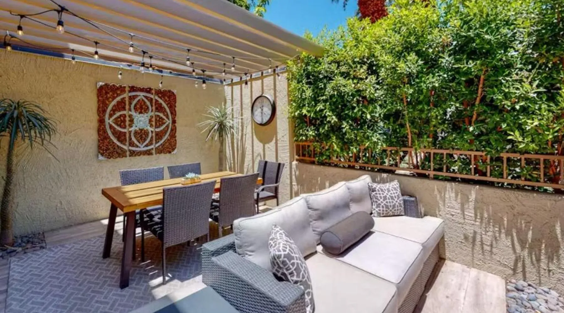 Elegant Accommodations: Indian Wells Mtn Cove with Kitchen Living Room Patio Firepit BBQ Tennis Stadium offers a villa in Indian Wells. The property features a swimming pool with a view, a lush garden, and a spacious terrace. Free WiFi is available throughout the villa. Comfortable Amenities: Guests can enjoy air-conditioning, a fully equipped kitchen, and a balcony with garden, pool, and mountain views. Additional amenities include a washing machine, streaming services, and a private entrance. The villa provides free on-site private parking and full-day security. Convenient Location: Located 12 mi from Jacqueline Cochran Regional Airport, the villa is near attractions such as Saks Fifth Avenue Palm Desert (5.6 mi) and Palm Springs Aerial Tramway (22 mi). Free toiletries and a hairdryer enhance the guest experience. The pool with a view and fireplace are the standout features of this villa. Guests will find a stovetop, a refrigerator, a dishwasher and kitchenware in the kitchen. The villa also provides guests with a barbecue. The air-conditioned villa provides a flat-screen TV with streaming services, a washing machine, a private entrance, a tea and coffee maker as well as garden views. The unit offers 1 bed.