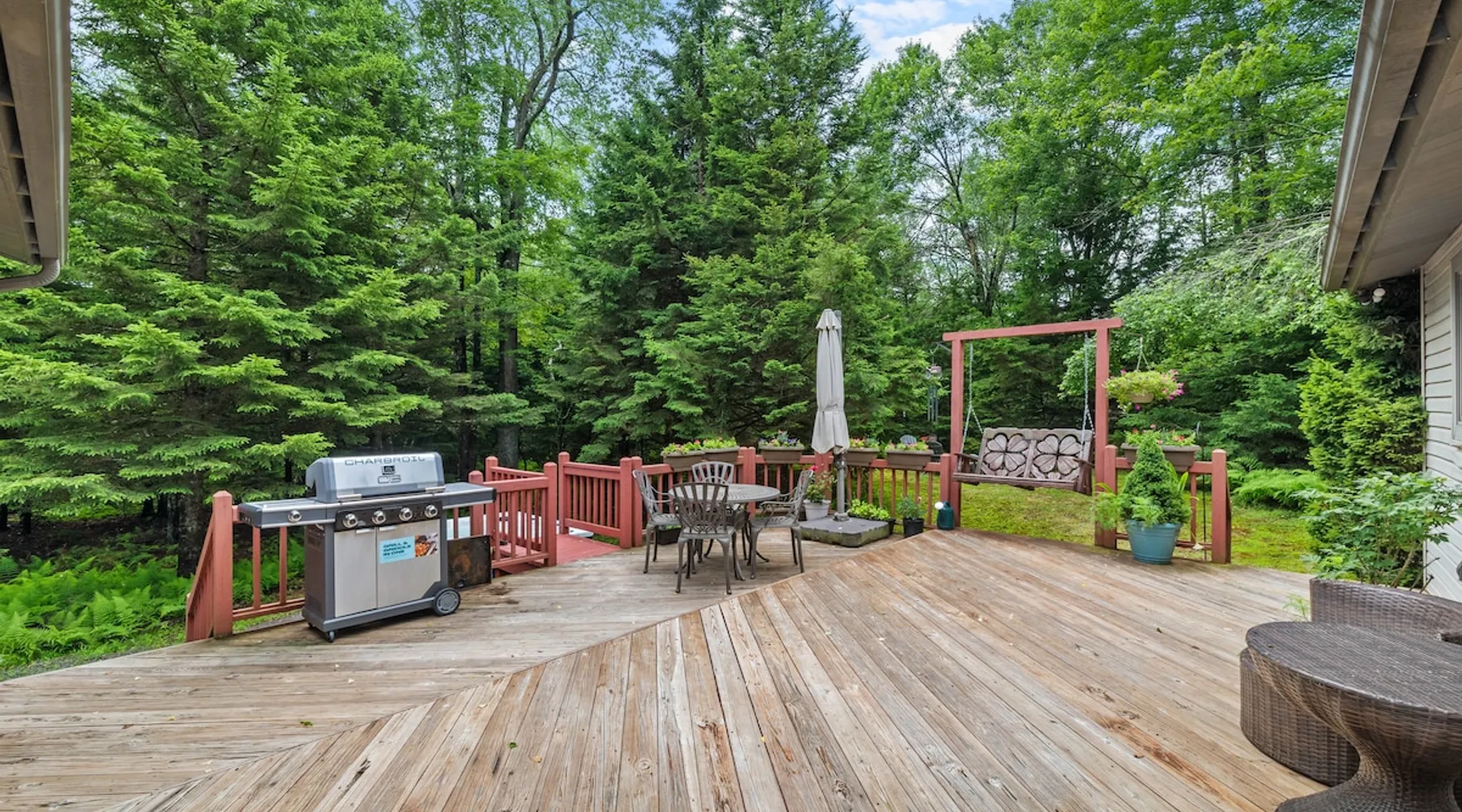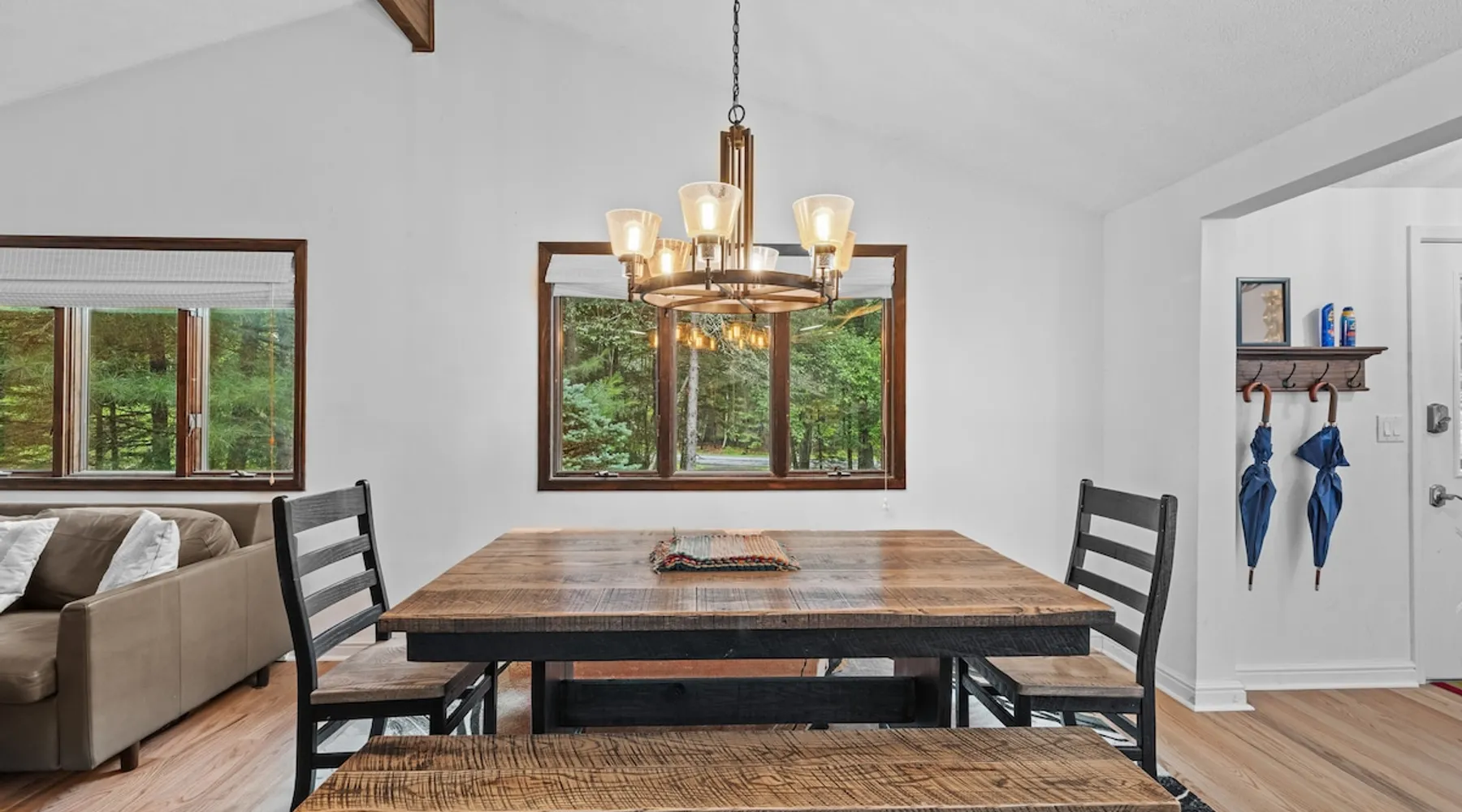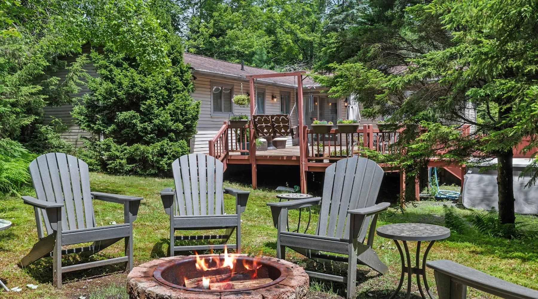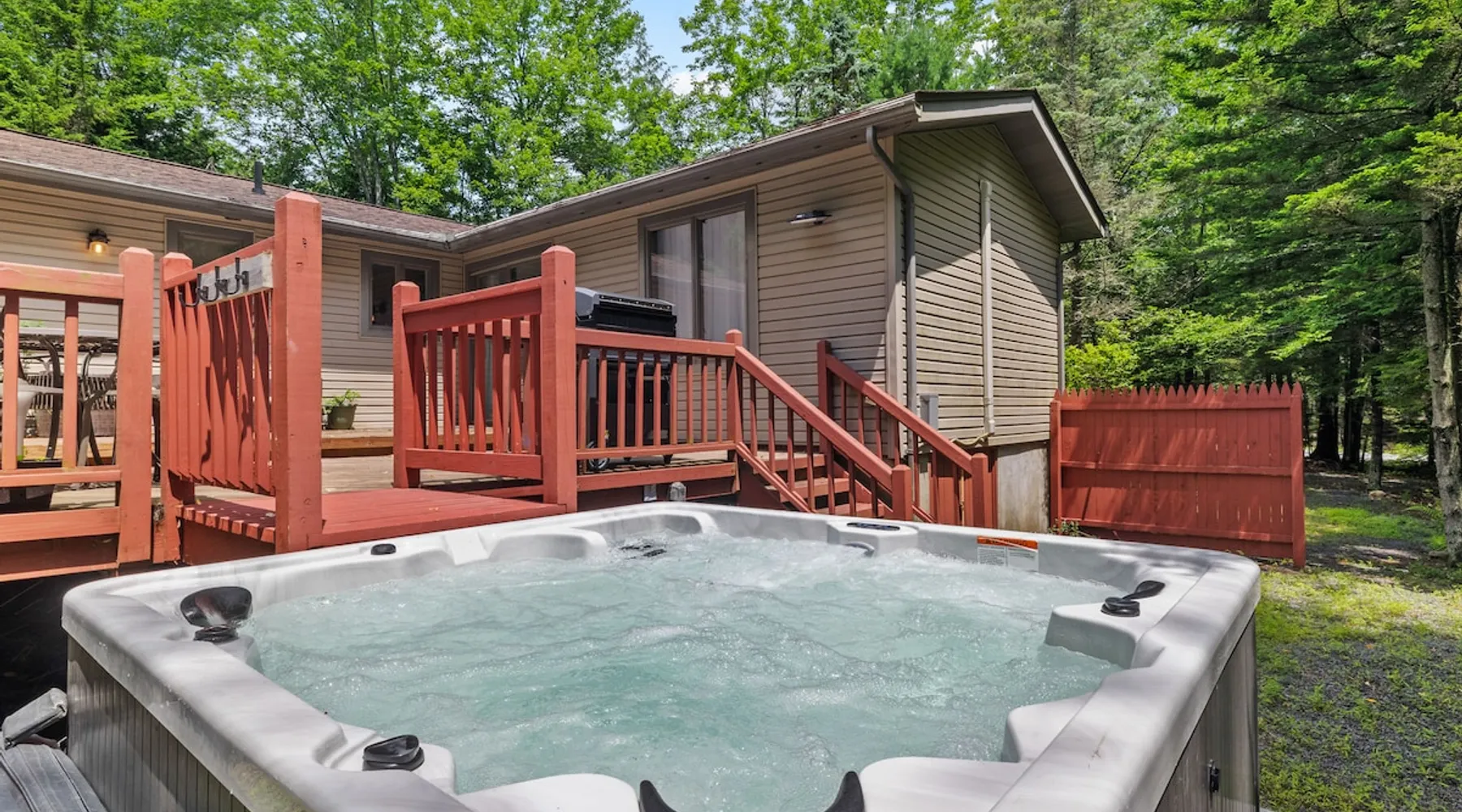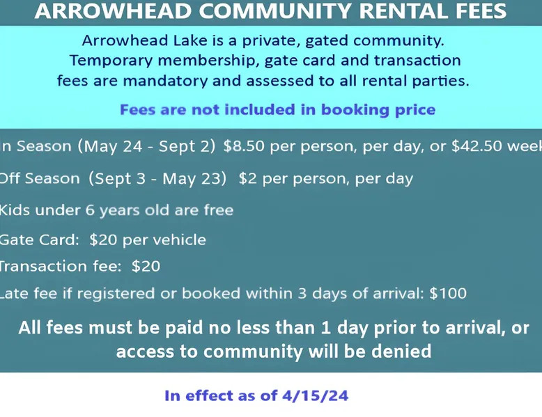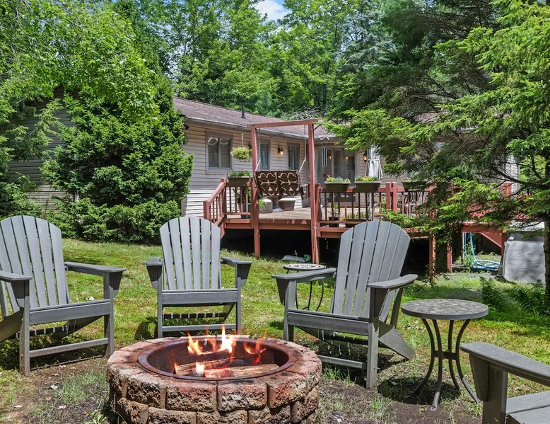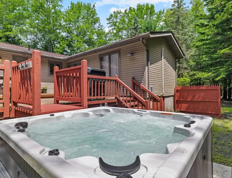 Relax in this peaceful single-level getaway nestled on a private acre in gated Arrowhead Lake community. Featuring 3 bedrooms, 2 bathrooms, a private hot tub, and outdoor amenities like a firepit, BBQ, and rear deck—perfect for families or small groups year-round. We are nearby Minisink Pool and Beach 2. (community HOA fees are mandatory and not included in the booking price) The space Escape to this charming single-level home tucked away in the beautiful, gated Arrowhead Lake community. Surrounded by trees and sitting on a full acre of land, this home offers the perfect mix of comfort, privacy, and outdoor fun. We are 2 minute drive to Minisink Pool or Beach 2. 🛏 Sleeping Arrangements (up to 6 guests) Bedroom 1: Queen bed Bedroom 2: Queen bed Bedroom 3: Full bed 🛁 Bathrooms 2 full bathrooms (one is en suite) 🔥 Indoor Features ↣ Full house air conditioning (split system) ↣ Smart TV's ↣ Fast Wi-Fi, perfect for remote work or streaming ↣ Fully equipped kitchen with basics, large fridge, dishwasher, microwave, and range oven ↣ Electric decorative fireplace ↣ Dining area with seating for the whole group ↣ Washer and dryer for your convenience 🌲 Outdoor Amenities ↣ Private hot tub (available year-round) ↣ Rear deck with BBQ grill and outdoor dining space ↣ Firepit with seating for evening relaxation ↣ Parking for up to 3 vehicles in private driveway 📍 Location Perks 2-minute drive to Beach 2 and Minisink Pool (open in summer) Peaceful wooded setting, ideal for a nature-filled escape A car is required to reach the property and nearby attractions 🚨 Please Note: Arrowhead Lake has mandatory community fees (not included in nightly rate). These must be paid before arrival—see “Other things to note” for details. 🛒 Essentials Provided: We stock enough basics for the first 2-3 nights (toilet paper, paper towels, dish soap, etc.). For longer stays or resupply, local options include Ahart’s Market, Weis, Walmart, CVS, and ALDI. 🎯 Nearby Attractions: 25 mins – Pocono Raceway 20–25 mins – Jack Frost & Big Boulder ski areas 25 mins – Kalahari Indoor Waterpark 20 mins – Hickory Run State Park 30 mins – Camelback Mountain Resort & Waterpark 30 mins – Mount Airy Casino (Drive times approximate) Guest access Whole house except locked owner's closet and shed Other things to note **COMMUNITY (HOA) FEES** (mandatory, not included in booking price): Arrowhead Lake Community Fees (to be paid separately online 1+ days prior to arrival): 1) HOA Temporary membership: a) IN SEASON (May 24 to Sept 2): $8.50 per person, per day. or $42.50 per person, per week. b) OFF SEASON (Sept 3 to May 23): $2 per person, per day. c) Children under 6 are free 2) HOA Gate Pass: $20 per vehicle, per stay 3) HOA Administration: $20 one time, per stay (Non-refundable) 4) HOA Late fee (for bookings and registrations submitted within 3 days of arrival date): $100 NOTE: All HOA fees must be paid at least 3+ days prior to arrival to avoid late fee. Community does not accept registrations/payments/changes/additions less than 1 day prior to arrival. **Fees are imposed by the community association (HOA); we are unable to waive or discount them. We will collect following info to be submitted to community with payment: number of guests and kids, names of every driver, full car info and guest names. Temporary Membership grants access to all community facilities and events, as well as access to pools, lakes, beaches, playgrounds, basketball and tennis courts, to Community Lodge with 3 fireplaces, library, fitness room (gym), game rooms and banquet hall. Note: Pools are open starting Memorial Day weekend, until Labor Day. TEMPORARY MEMBERSHIP FEE IS REQUIRED WHETHER AMENITIES/FACILITIES ARE OPEN/USED OR NOT. Community amenities are owned and operated by Arrowhead Lake Community Association. Some amenities are seasonal (pools, beaches, rental shack etc) or maybe closed due to staffing, weather, maintenance or other reasons out of our control. Please double check with us on status of specific amenity. **TRASH RULES**: To avoid attracting wild animals and rodents, all trash must be removed from the house upon departure. The Trash Center is located within the same community, and you can find the address in the Guidebook provided in the house. You can also pick up a flyer with the Trash Center address during check-in at the Rental Office.