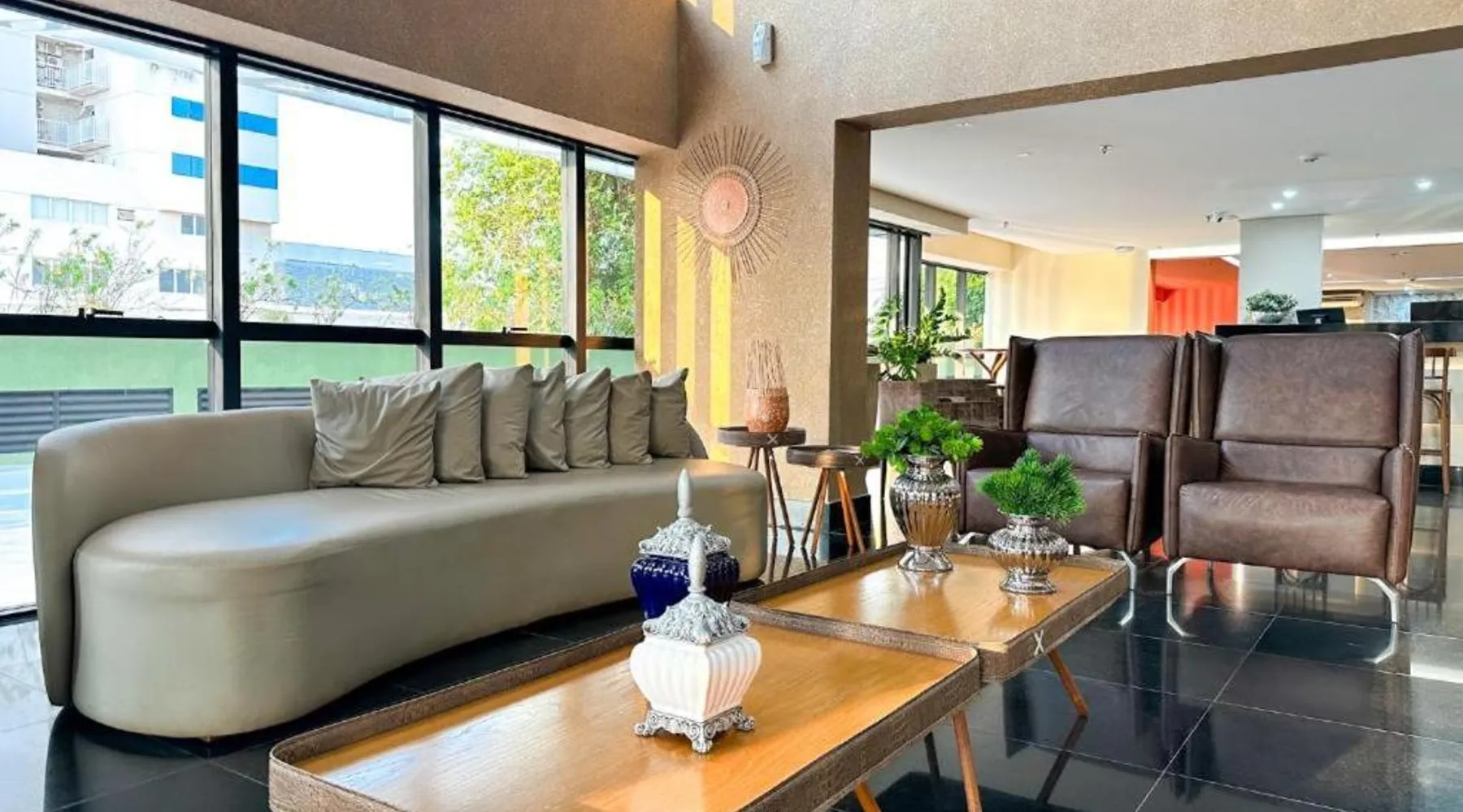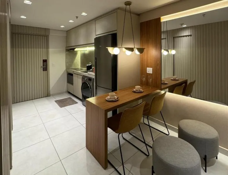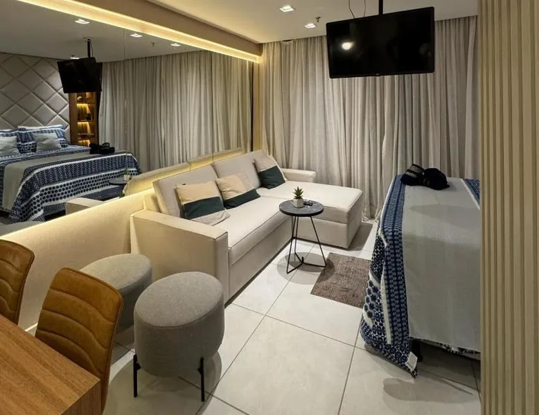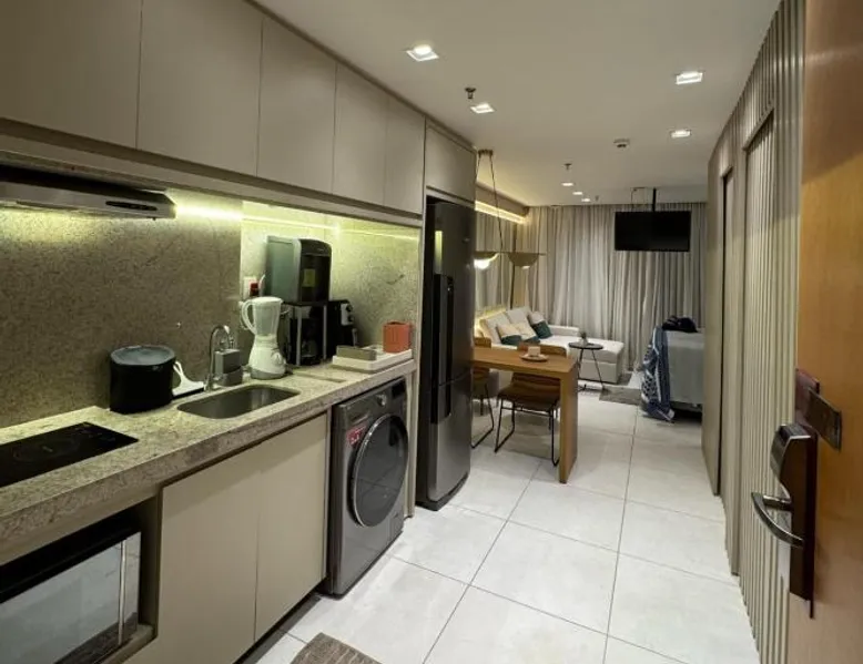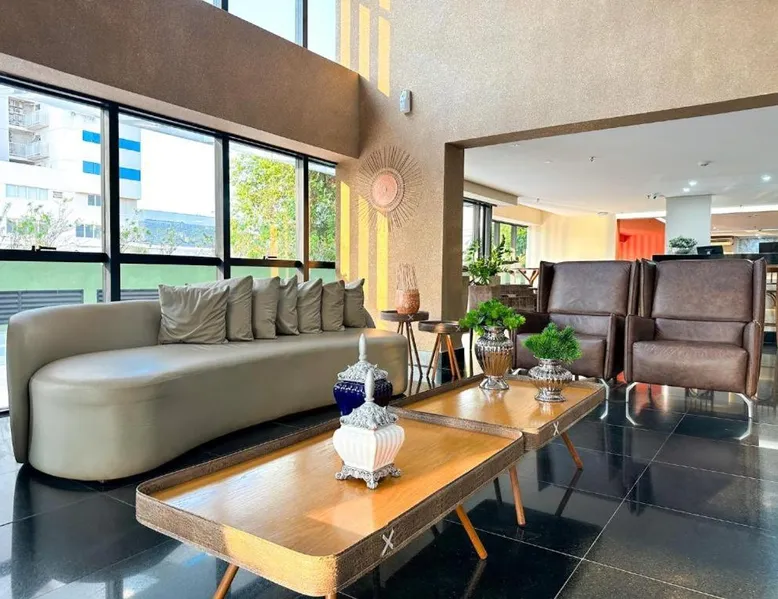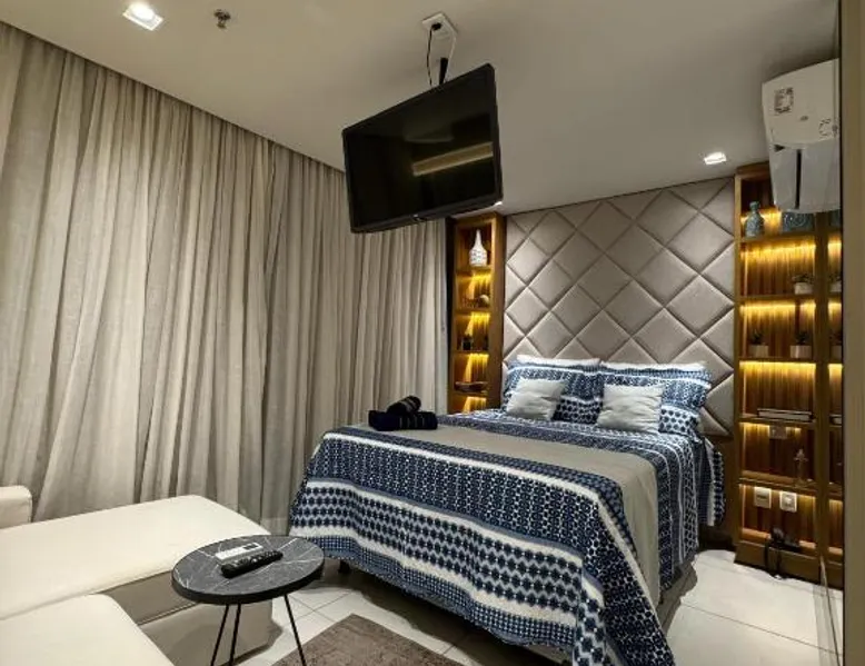 Comfortable Living Space: Flat Presidencial Vivence Hotel in Palmas offers a spacious apartment with one bedroom and one bathroom. Guests enjoy a terrace, balcony, and city views. The apartment includes air-conditioning, a kitchenette, and a washing machine. Modern Amenities: The property features free WiFi, a rooftop pool, and streaming services. Additional amenities include a sauna, coffee machine, and work desk. Free on-site private parking is available for guests. Convenient Location: Located 16 mi from Brigadeiro Lysias Rodrigues Airport, the hotel is a short walk from Girassois Square and 1.1 mi from Araguaia Palace. Palmas Bus Station is 5.6 mi away, and Cesamar Park is 2.1 mi from the property. The pool with a view and sauna are the standout features of this apartment. Guests can make meals in the kitchen that has a stovetop, a refrigerator, kitchenware and a microwave. This air-conditioned apartment features a dining area, a flat-screen TV with streaming services a washing machine and a terrace. The unit has 1 bed.