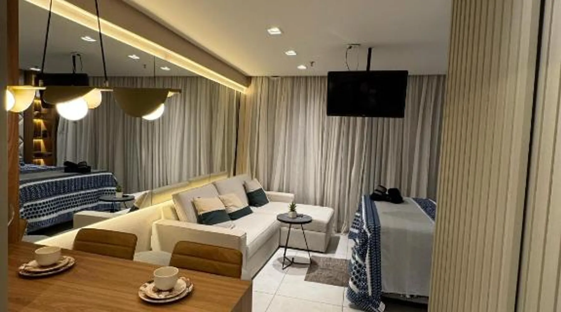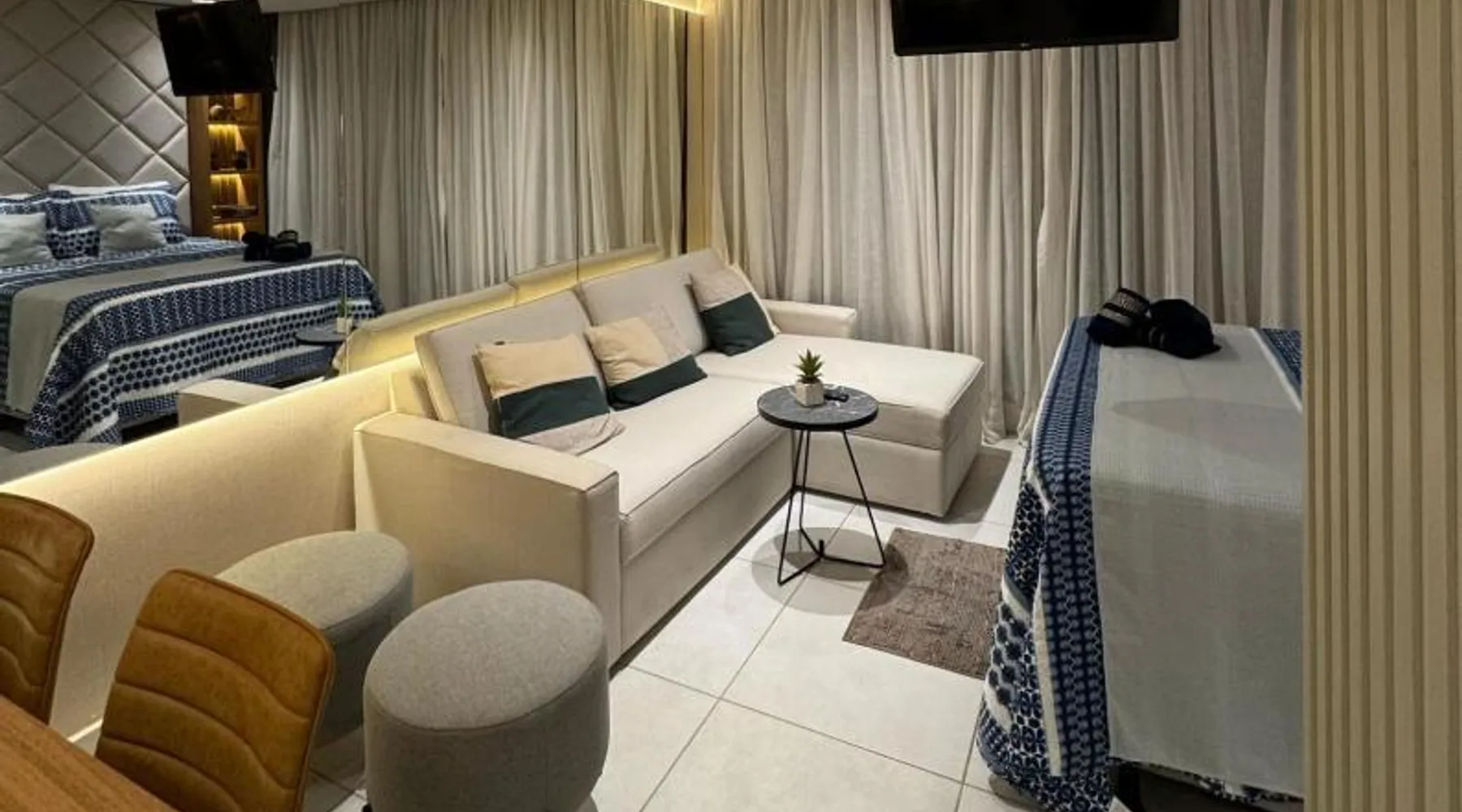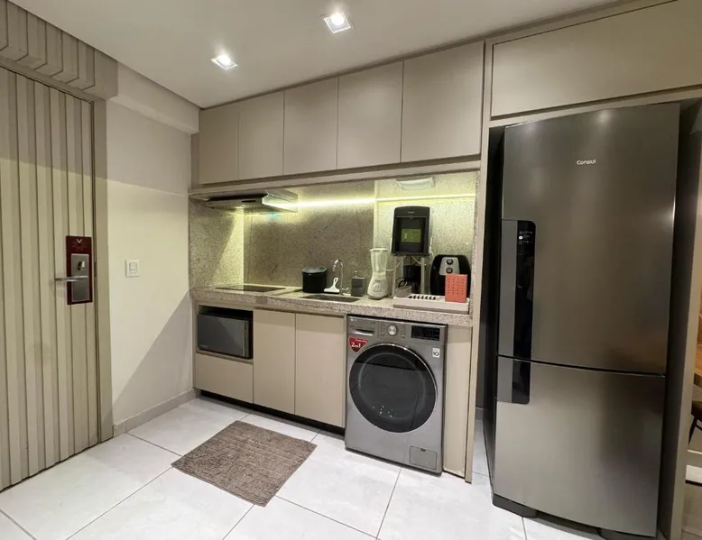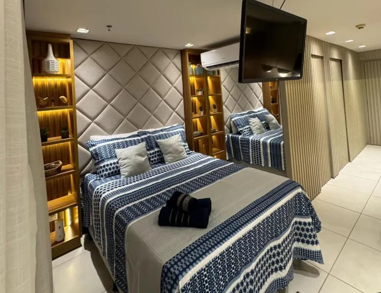 Comfortable Living Space: Flat Presidencial Vivence Hotel in Palmas offers a spacious apartment with one bedroom and one bathroom. Guests enjoy a terrace, balcony, and city views. The apartment includes air-conditioning, a kitchenette, and a washing machine. Modern Amenities: The property features free WiFi, a rooftop pool, and streaming services. Additional amenities include a sauna, coffee machine, and work desk. Free on-site private parking is available for guests. Convenient Location: Located 16 mi from Brigadeiro Lysias Rodrigues Airport, the hotel is a short walk from Girassois Square and 1.1 mi from Araguaia Palace. Palmas Bus Station is 5.6 mi away, and Cesamar Park is 2.1 mi from the property. The pool with a view and sauna are the standout features of this apartment. Guests can make meals in the kitchen that has a stovetop, a refrigerator, kitchenware and a microwave. This air-conditioned apartment features a dining area, a flat-screen TV with streaming services a washing machine and a terrace. The unit has 1 bed.