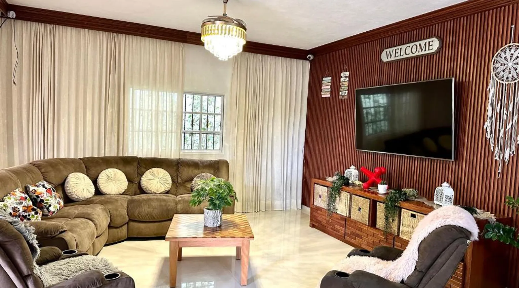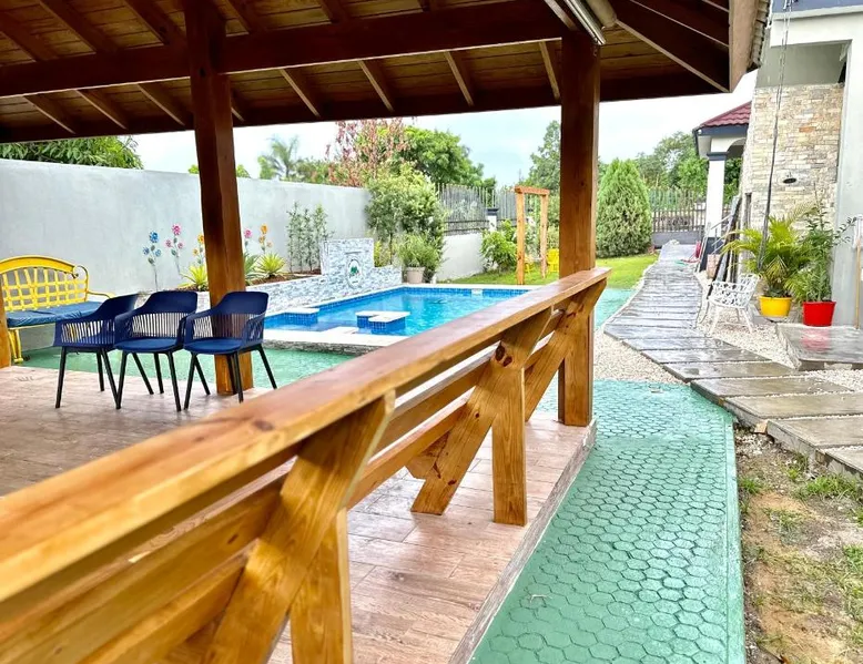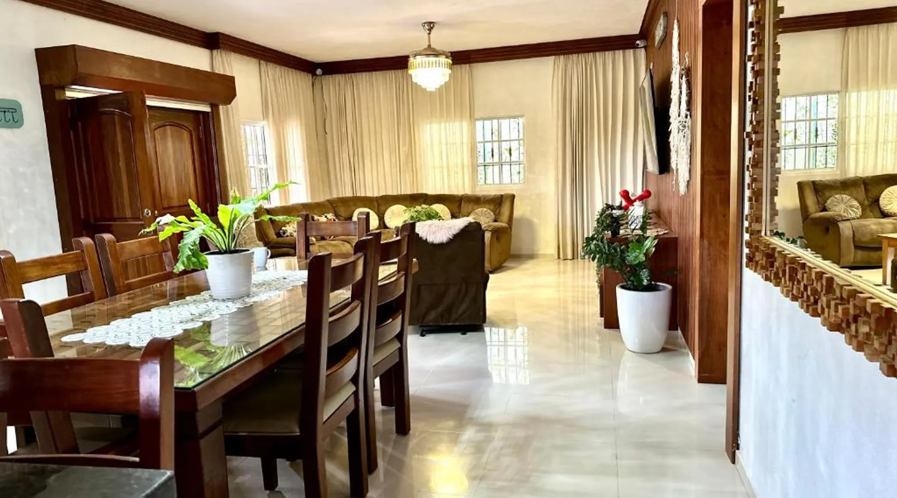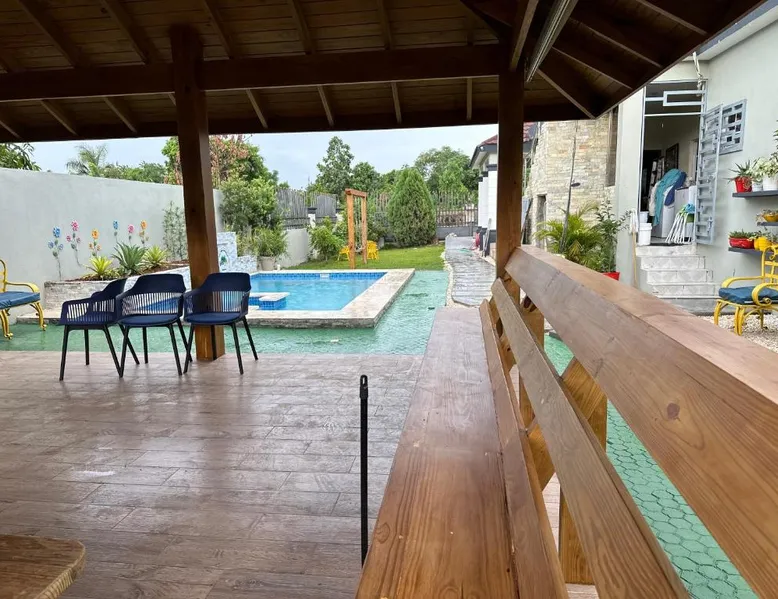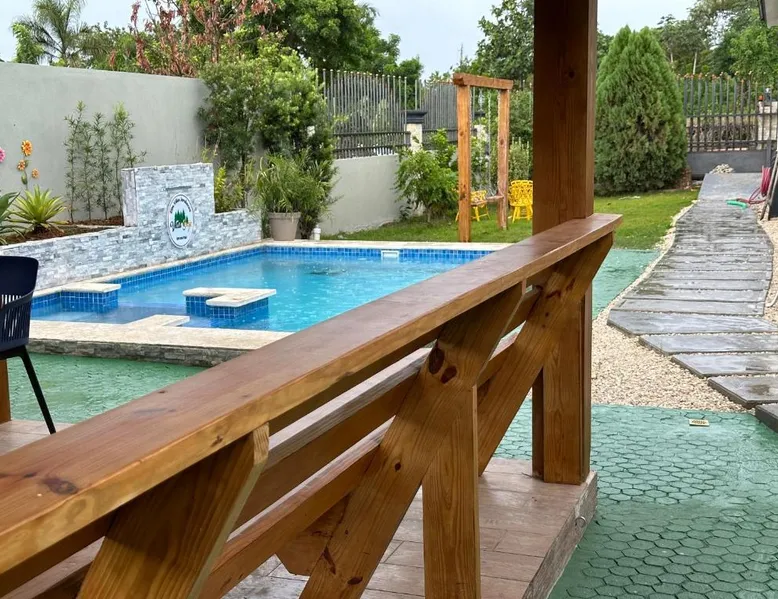 Spacious Accommodations: Villa suge in Jarabacoa offers two bedrooms and four bathrooms, providing ample space for guests. The property features family rooms, ensuring comfort for all. Outdoor Amenities: Guests can enjoy a garden, terrace, and outdoor swimming pool. Free WiFi is available throughout the villa, enhancing the stay experience. Convenient Facilities: The villa includes air-conditioning, a kitchenette, balcony, washing machine, and a fully equipped kitchen. Free on-site private parking is provided. Nearby Attractions: Salto de Jimenoa is 5.6 mi away, Kaskada Park 30 mi, and La Vega Olympic Stadium 19 mi from the property. Cibao International Airport is 27 mi distant. Highly rated by guests. This villa's standout feature is the private pool. The villa's kitchen is available for cooking and storing food. The spacious villa features air conditioning, a washing machine and a terrace. The unit has 2 beds.