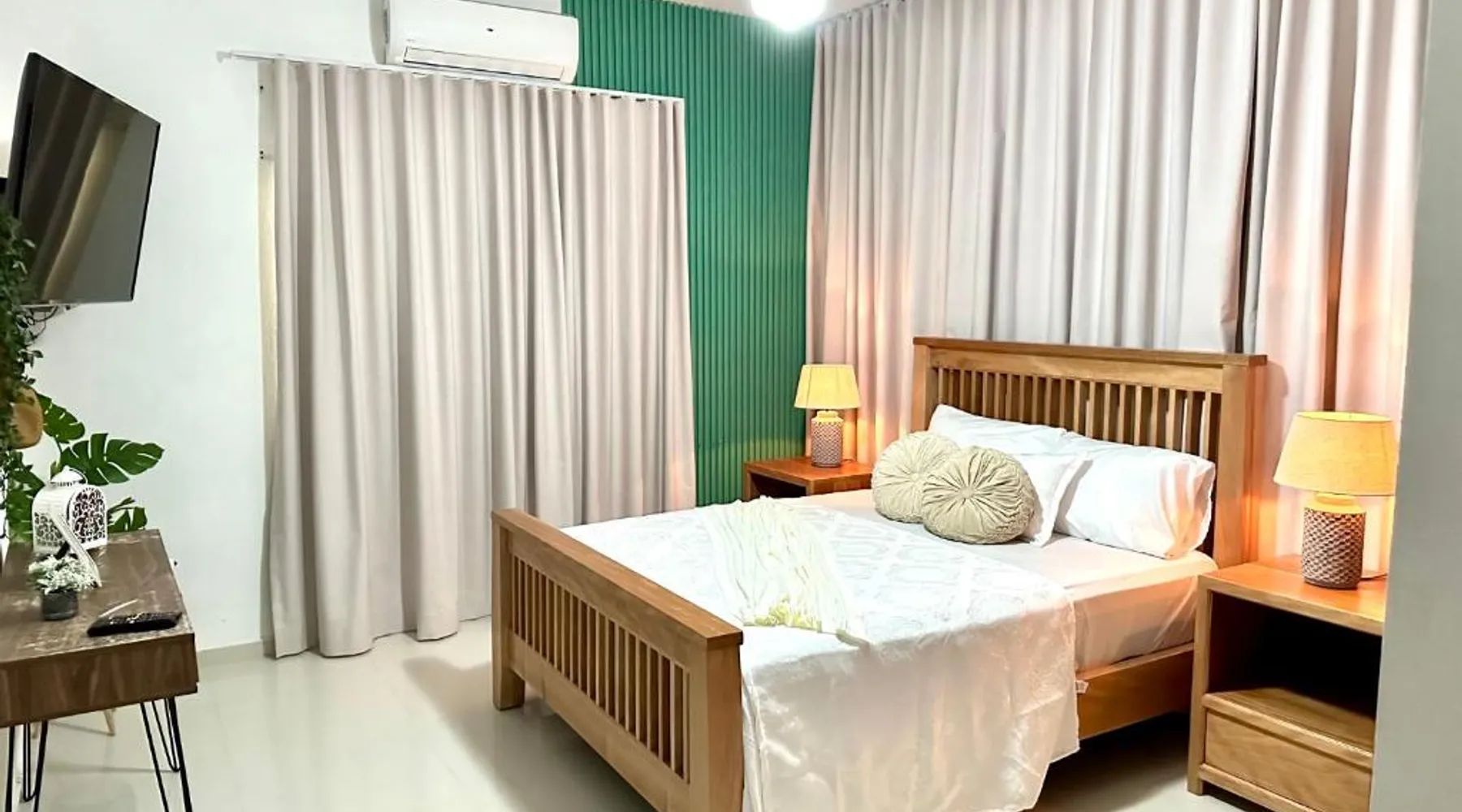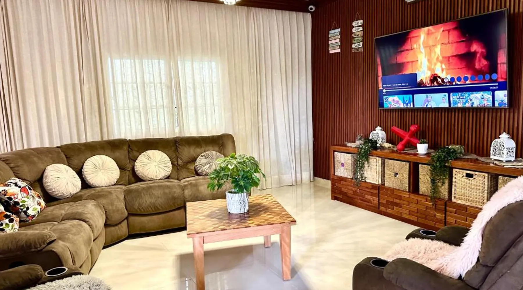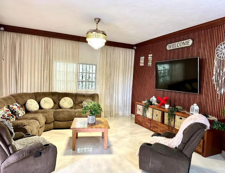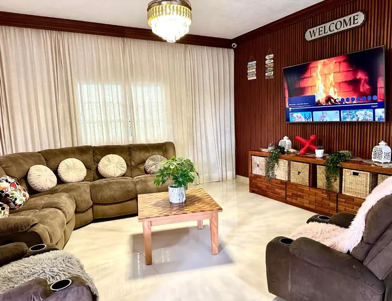Spacious Accommodations: Villa suge in Jarabacoa offers two bedrooms and four bathrooms, providing ample space for guests. The property features family rooms, ensuring comfort for all. Outdoor Amenities: Guests can enjoy a garden, terrace, and outdoor swimming pool. Free WiFi is available throughout the villa, enhancing the stay experience. Convenient Facilities: The villa includes air-conditioning, a kitchenette, balcony, washing machine, and a fully equipped kitchen. Free on-site private parking is provided. Nearby Attractions: Salto de Jimenoa is 5.6 mi away, Kaskada Park 30 mi, and La Vega Olympic Stadium 19 mi from the property. Cibao International Airport is 27 mi distant. Highly rated by guests. This villa's standout feature is the private pool. The villa's kitchen is available for cooking and storing food. The spacious villa features air conditioning, a washing machine and a terrace. The unit has 2 beds.