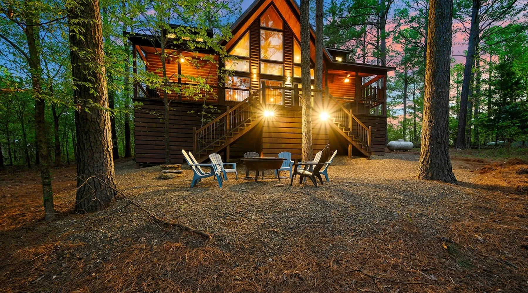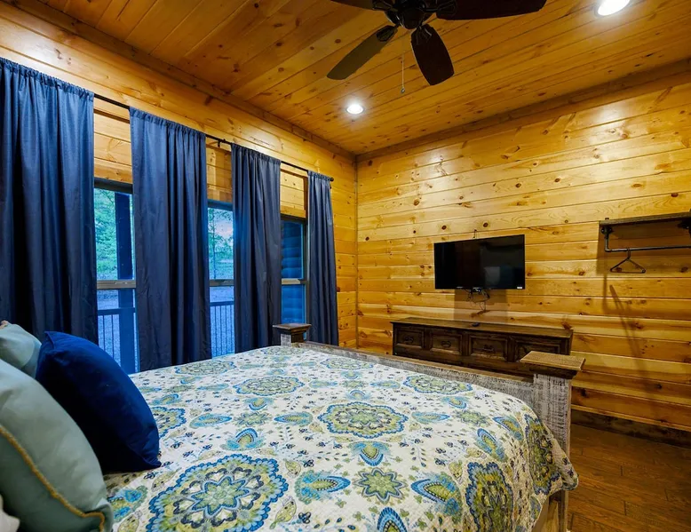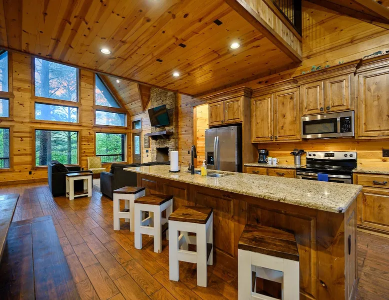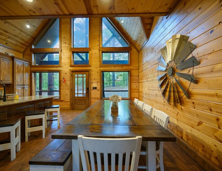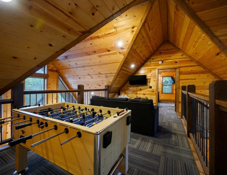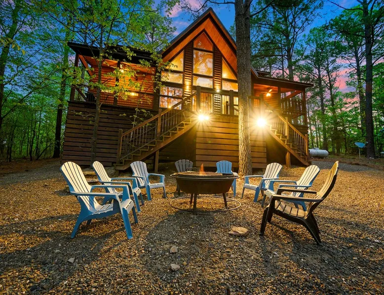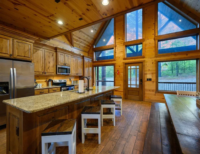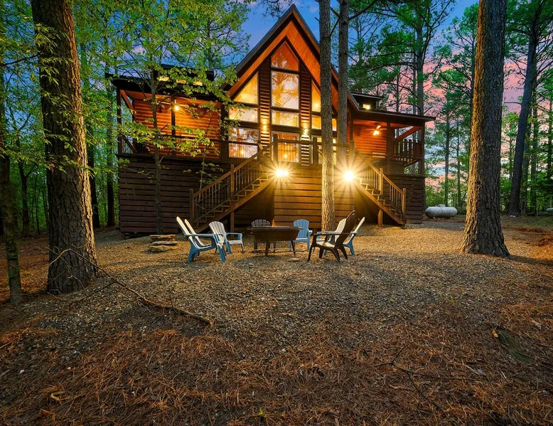 🏡 Welcome to A Little R & R Experience the perfect mix of relaxation, adventure, and upscale comfort at A Little R & R, a beautifully designed two-story cabin in Broken Bow. With 4 master suites, 4 bathrooms, and space for up to 14 guests, this spacious retreat is ideal for families and groups looking to reconnect in luxury. Nestled on 1.5 secluded acres, the cabin is surrounded by mature pines and stunning views, The space 🛋️ Living Room Spacious, cozy, and scenic: Two plush sleeper sofas 55” HDTV & Blu-Ray DVD player Dry-stacked stone gas fireplace Views of the back deck and the surrounding forest 🍽️ Kitchen & Dining Perfect for group gatherings: Fully equipped kitchen with stainless steel appliances 10' granite island with bar seating Oversized custom-built farm table (seats the entire group) Open-concept layout is ideal for entertaining Cookware, bakeware, Keurig & drip coffee makers, and grilling tools provided 🛏️ Bedrooms & Bathrooms 4 Master Suites (2 downstairs, 2 upstairs) King-size beds with memory foam mattresses Luxurious linens and quilted bedding HDTVs in every bedroom Ensuite bathrooms with: Custom-tiled walk-in showers Double granite vanities Elegant barn-style doors 🎯 Loft/Game Room Fun and relaxation for all: Foosball table Pullout sleeper sofa HDTV Vaulted ceilings and open layout 🌳 Outdoor Living Unwind in nature without sacrificing comfort: 6-person hot tub (drained and sanitized after each stay) Covered back porch with gas grill (propane provided) Fire pit with seating – perfect for s’mores & stories Large circle drive with boat & ATV trailer parking 📌 Additional Info Full-size washer & dryer Iron & ironing board provided Seasonal fireplaces: Available Oct–May 15 Free Wi-Fi Max occupancy: 14 guests – NO EXCEPTIONS Guest access Guest has access to entire cabin Other things to note It is located near all the best restaurants, activities, and park amenities. It is just a short drive to Broken Bow Lake, Beavers Bend State Park, popular hiking trails, restaurants, breweries, wineries, and downtown Hochatown, and access to all the outdoors activities you want – boating, hiking, fly-fishing, kayaking, zip-lining, ATV trails, horseback riding, Cedar Creek Golf Course, Choctaw Landing Casino, mini-golf, helicopter rides, mining for gold, train rides, go-carts, and a great petting zoo. Don’t forget these items when you come to visit: • Rain gear and light jackets (Our average rainfall is 55″-60″ each year). • We have beautiful scenic trails; good hiking boots are a must. • Water shoes for our vast shorelines and streams. • Insect repellent, sunblock, and other first-aid supplies. • Coffee and filters – enjoy this while sitting on the deck in the early morning. • Condiments --A starter supply of coffee/filters, salt/pepper, paper towels, toilet paper, bath soap, dish soap, dishwasher tablets, trash bags, and laundry soap is provided. Still, guests may need to bring additional supplies. If we are missing something or you have a question we haven't answered, please feel free to reach out to us directly at Bravo Cabin Rentals and we will personally respond as soon as possible. We look forward to making your next vacation in Broken Bow/Hochatown one you won’t forget!