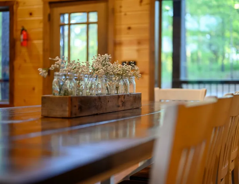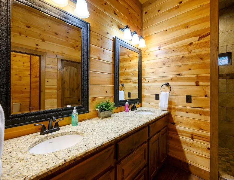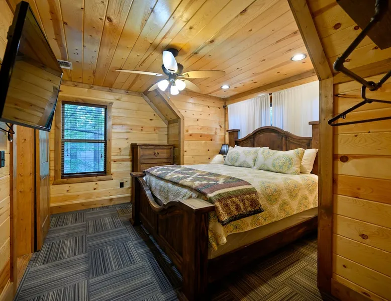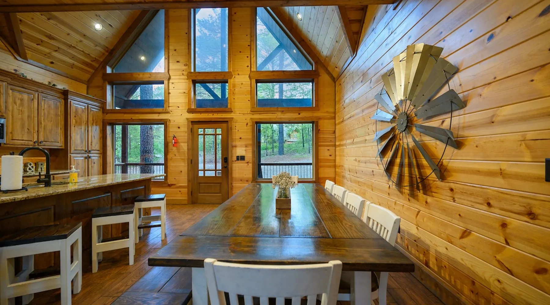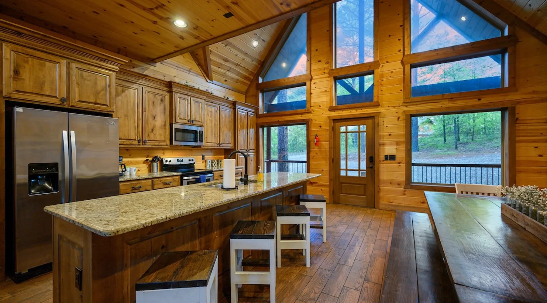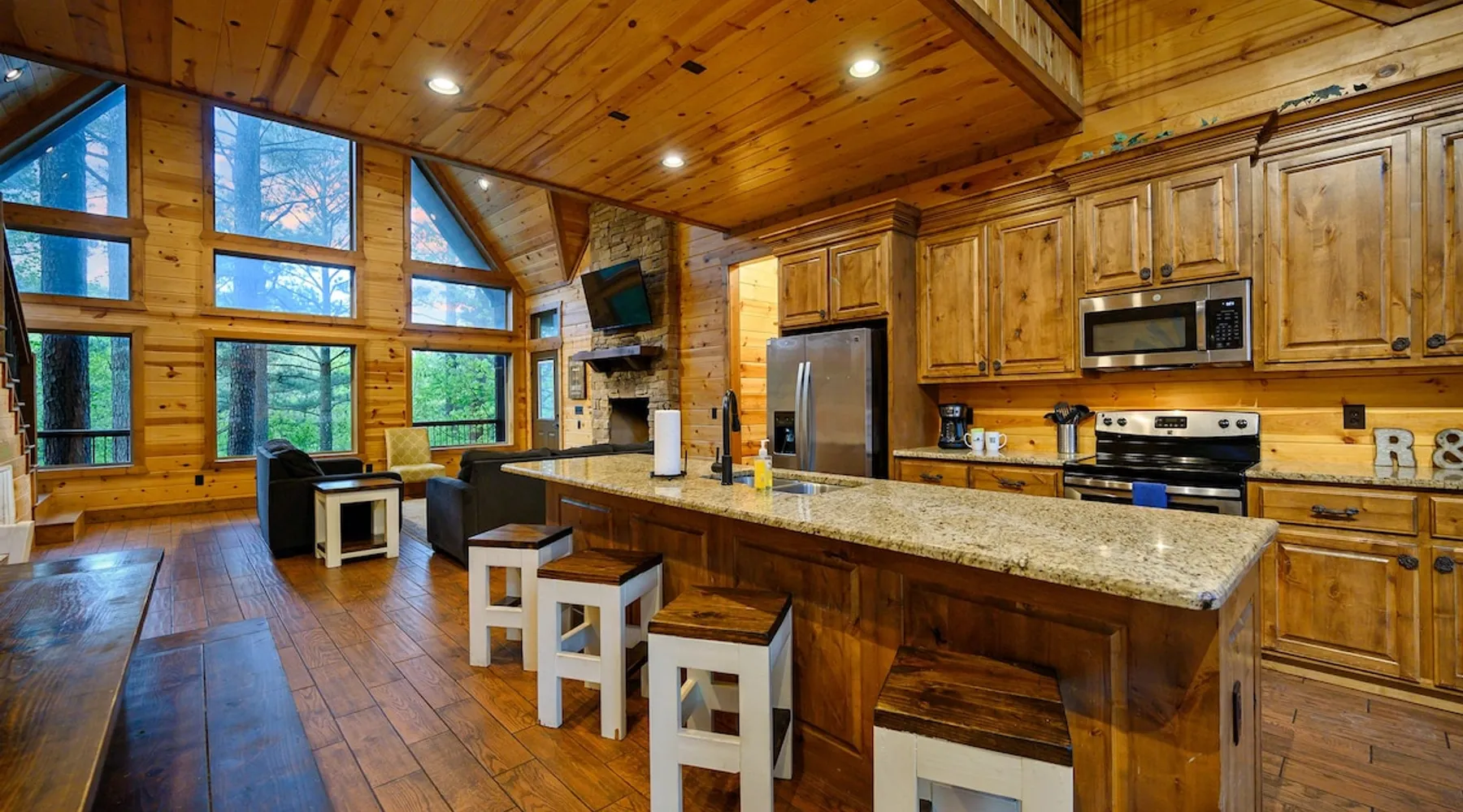 🏡 Welcome to A Little R & R Experience the perfect mix of relaxation, adventure, and upscale comfort at A Little R & R, a beautifully designed two-story cabin in Broken Bow. With 4 master suites, 4 bathrooms, and space for up to 14 guests, this spacious retreat is ideal for families and groups looking to reconnect in luxury. Nestled on 1.5 secluded acres, the cabin is surrounded by mature pines and stunning views, The space 🛋️ Living Room Spacious, cozy, and scenic: Two plush sleeper sofas 55” HDTV & Blu-Ray DVD player Dry-stacked stone gas fireplace Views of the back deck and the surrounding forest 🍽️ Kitchen & Dining Perfect for group gatherings: Fully equipped kitchen with stainless steel appliances 10' granite island with bar seating Oversized custom-built farm table (seats the entire group) Open-concept layout is ideal for entertaining Cookware, bakeware, Keurig & drip coffee makers, and grilling tools provided 🛏️ Bedrooms & Bathrooms 4 Master Suites (2 downstairs, 2 upstairs) King-size beds with memory foam mattresses Luxurious linens and quilted bedding HDTVs in every bedroom Ensuite bathrooms with: Custom-tiled walk-in showers Double granite vanities Elegant barn-style doors 🎯 Loft/Game Room Fun and relaxation for all: Foosball table Pullout sleeper sofa HDTV Vaulted ceilings and open layout 🌳 Outdoor Living Unwind in nature without sacrificing comfort: 6-person hot tub (drained and sanitized after each stay) Covered back porch with gas grill (propane provided) Fire pit with seating – perfect for s’mores & stories Large circle drive with boat & ATV trailer parking 📌 Additional Info Full-size washer & dryer Iron & ironing board provided Seasonal fireplaces: Available Oct–May 15 Free Wi-Fi Max occupancy: 14 guests – NO EXCEPTIONS Guest access Guest has access to entire cabin Other things to note It is located near all the best restaurants, activities, and park amenities. It is just a short drive to Broken Bow Lake, Beavers Bend State Park, popular hiking trails, restaurants, breweries, wineries, and downtown Hochatown, and access to all the outdoors activities you want – boating, hiking, fly-fishing, kayaking, zip-lining, ATV trails, horseback riding, Cedar Creek Golf Course, Choctaw Landing Casino, mini-golf, helicopter rides, mining for gold, train rides, go-carts, and a great petting zoo. Don’t forget these items when you come to visit: • Rain gear and light jackets (Our average rainfall is 55″-60″ each year). • We have beautiful scenic trails; good hiking boots are a must. • Water shoes for our vast shorelines and streams. • Insect repellent, sunblock, and other first-aid supplies. • Coffee and filters – enjoy this while sitting on the deck in the early morning. • Condiments --A starter supply of coffee/filters, salt/pepper, paper towels, toilet paper, bath soap, dish soap, dishwasher tablets, trash bags, and laundry soap is provided. Still, guests may need to bring additional supplies. If we are missing something or you have a question we haven't answered, please feel free to reach out to us directly at Bravo Cabin Rentals and we will personally respond as soon as possible. We look forward to making your next vacation in Broken Bow/Hochatown one you won’t forget!