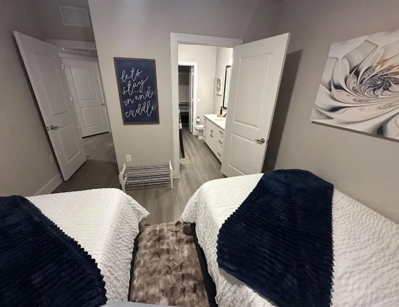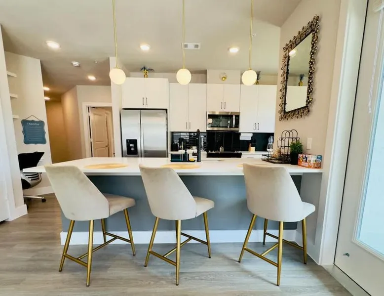 Spacious and Modern: Goldy in Austin offers a spacious, recently renovated apartment with two bedrooms and two bathrooms. The living room features a dining table and comfortable seating areas. Exceptional Facilities: Guests enjoy a fitness center, outdoor swimming pool, and a beautifully maintained garden. Free WiFi is available throughout the property, ensuring connectivity. Convenient Amenities: The apartment includes air-conditioning, a washing machine, and a fully equipped kitchen with a refrigerator, microwave, and dishwasher. Additional amenities include a patio, barbecue, and free on-site parking. Prime Location: Located 16 mi from Austin-Bergstrom International Airport, Goldy is close to attractions such as Moody Center and Texas Memorial Stadium, each 9.3 mi away. This spacious apartment features 1 living room, 2 separate bedrooms and 2 bathrooms with a bath and free toiletries. Guests will find a stovetop, a refrigerator, a dishwasher and an oven in the fully equipped kitchen. The apartment also comes with a barbecue. The air-conditioned apartment features a TV, a washing machine, a tea and coffee maker, a wardrobe as well as city views. The unit has 5 beds.