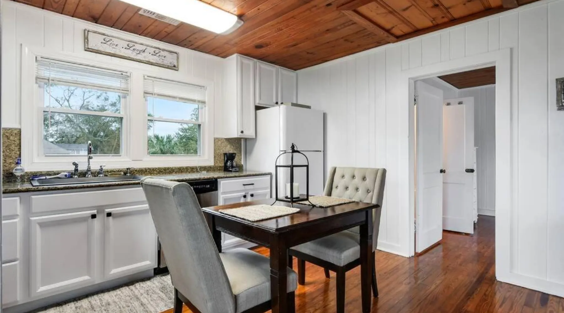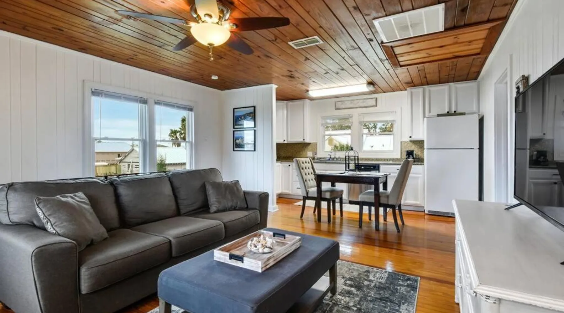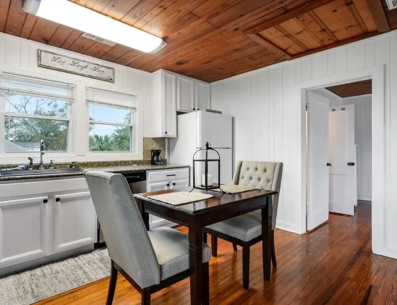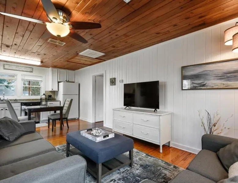 Comfortable Living: Cozy cottage by the Sea in Gulfport offers a holiday home with one bedroom and one bathroom. The property features air-conditioning, a washing machine, and a fully equipped kitchen with a coffee machine, microwave, and oven. Outdoor Spaces: Guests can relax on the patio or enjoy the private beach area. The cottage includes a dining area with a table and parquet floors, providing a comfortable space for outdoor dining. Convenient Amenities: The holiday home provides free WiFi, free on-site private parking, and a washing machine. Additional amenities include a hairdryer, free toiletries, and a TV. Local Attractions: Gulfport West Beach is 1.2 mi away, West Side Park And Splash Pad less than 0.6 mi, and Gulfport-Biloxi International Airport 4.3 mi from the property. Nearby attractions include Port Of Gulfport and Bert Jones Yacht Harbor, each 1.9 mi away. In the fully equipped kitchen, guests will find a refrigerator, kitchenware, an oven and a microwave. Boasting a patio, this holiday home also offers air conditioning, a washing machine and a flat-screen TV. The unit has 1 bed.