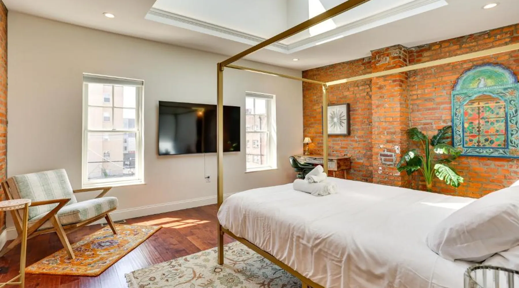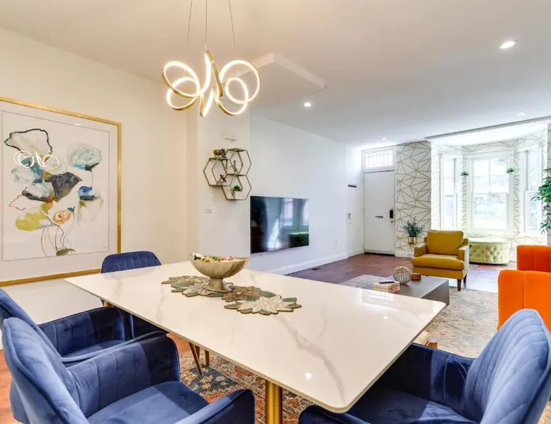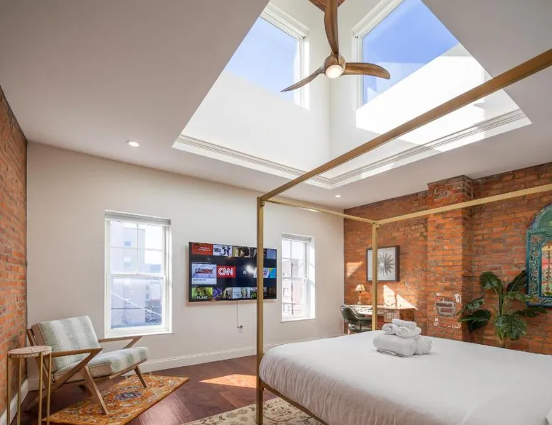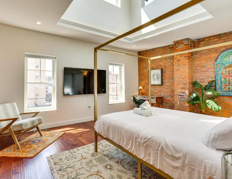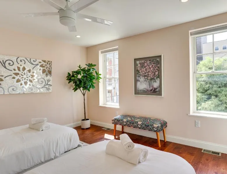 Spacious Accommodations: Your Perch at University City in Philadelphia offers a spacious holiday home with three bedrooms and two bathrooms. The property features a terrace and free WiFi, ensuring a comfortable stay. Modern Amenities: The home includes air-conditioning, a kitchenette, balcony, and streaming services. Additional amenities include a washing machine, dishwasher, and work desk. Free parking is available on-site. Prime Location: Located 5.6 mi from Philadelphia International Airport, the property is a 12-minute walk from the University of Pennsylvania. Nearby attractions include Mutter Museum (1.9 mi) and Philadelphia Museum of Art (2.5 mi). The well-equipped kitchen features a stovetop, a refrigerator, a dishwasher and kitchenware. The spacious air-conditioned holiday home provides a flat-screen TV with streaming services, a washing machine, a private entrance, a tea and coffee maker as well as city views. The unit offers 4 beds.