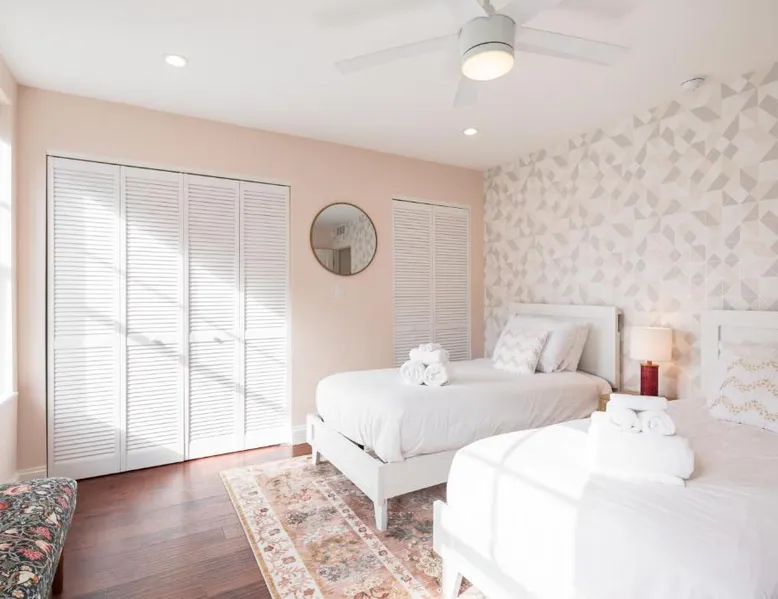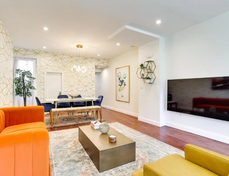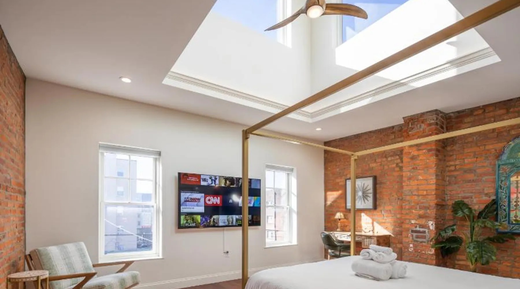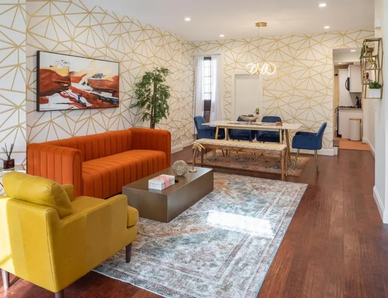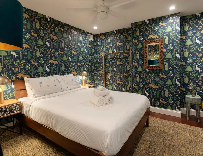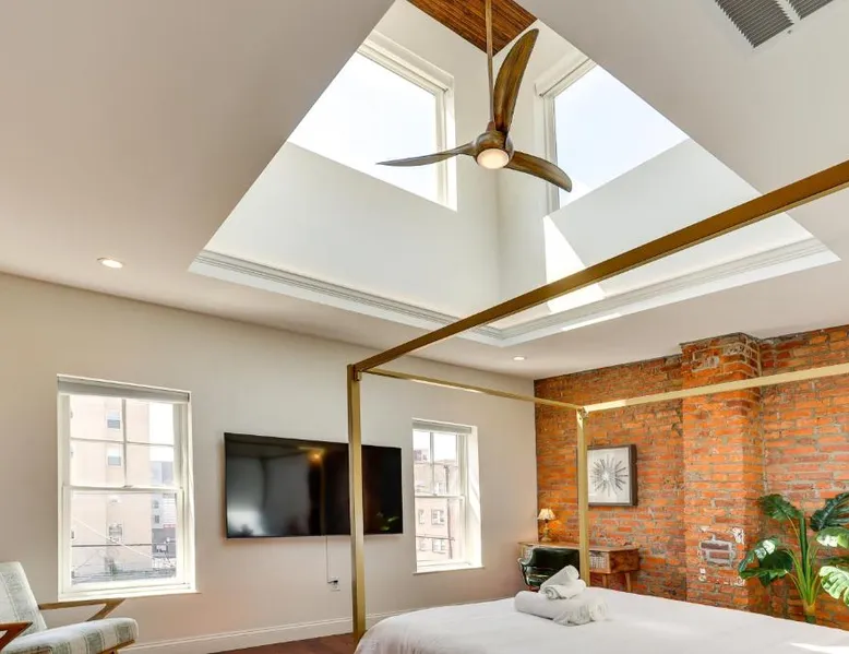 Spacious Accommodations: Your Perch at University City in Philadelphia offers a spacious holiday home with three bedrooms and two bathrooms. The property features a terrace and free WiFi, ensuring a comfortable stay. Modern Amenities: The home includes air-conditioning, a kitchenette, balcony, and streaming services. Additional amenities include a washing machine, dishwasher, and work desk. Free parking is available on-site. Prime Location: Located 5.6 mi from Philadelphia International Airport, the property is a 12-minute walk from the University of Pennsylvania. Nearby attractions include Mutter Museum (1.9 mi) and Philadelphia Museum of Art (2.5 mi). The well-equipped kitchen features a stovetop, a refrigerator, a dishwasher and kitchenware. The spacious air-conditioned holiday home provides a flat-screen TV with streaming services, a washing machine, a private entrance, a tea and coffee maker as well as city views. The unit offers 4 beds.