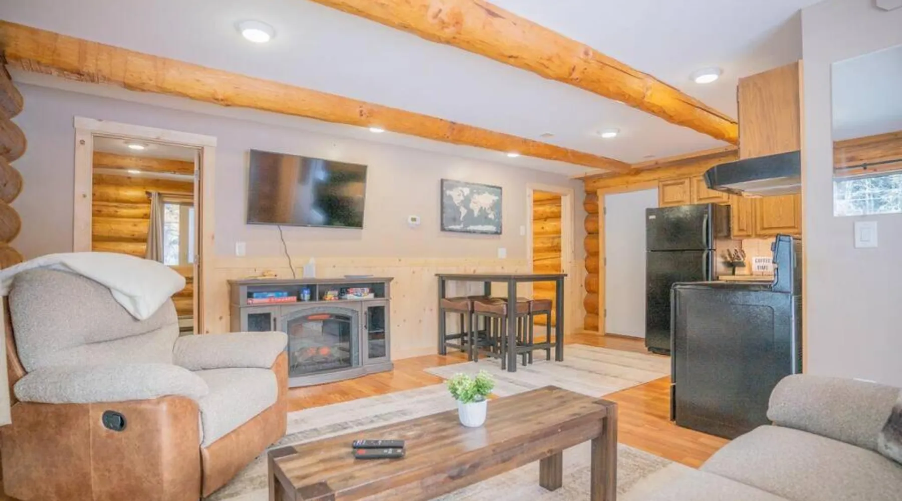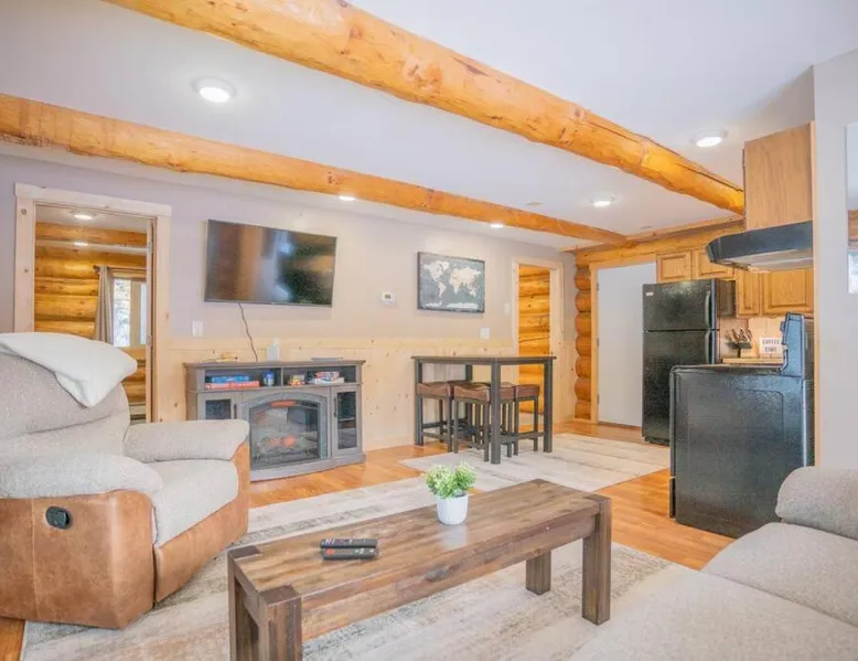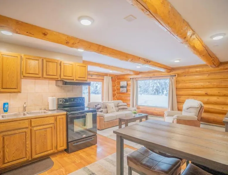 Comfortable Accommodations: Tucked Away Timber Lower Suite in Fairbanks offers a two-bedroom holiday home with a living room. The property features a garden and free WiFi, ensuring a pleasant stay. Convenient Facilities: Guests benefit from private check-in and check-out services, laundry facilities, an outdoor seating area, and family rooms. Additional amenities include free on-site parking, bicycle parking, and express services. Modern Amenities: The home includes a fully equipped kitchen with a dining area, a fireplace, and a washing machine. Other facilities include streaming services, a work desk, and a private entrance. Prime Location: Located 1.2 mi from Fairbanks International Airport and 5 mi from the University of Alaska Fairbanks, the property provides easy access to local attractions. This holiday home features a fireplace. Boasting a private entrance, this holiday home features 1 living room, 2 separate bedrooms and 1 bathroom with a walk-in shower and a hairdryer. In the fully equipped kitchen, guests will find a stovetop, a refrigerator, kitchenware and an oven. This holiday home has a washing machine, a tea and coffee maker, a flat-screen TV with streaming services and a patio. The unit has 2 beds.