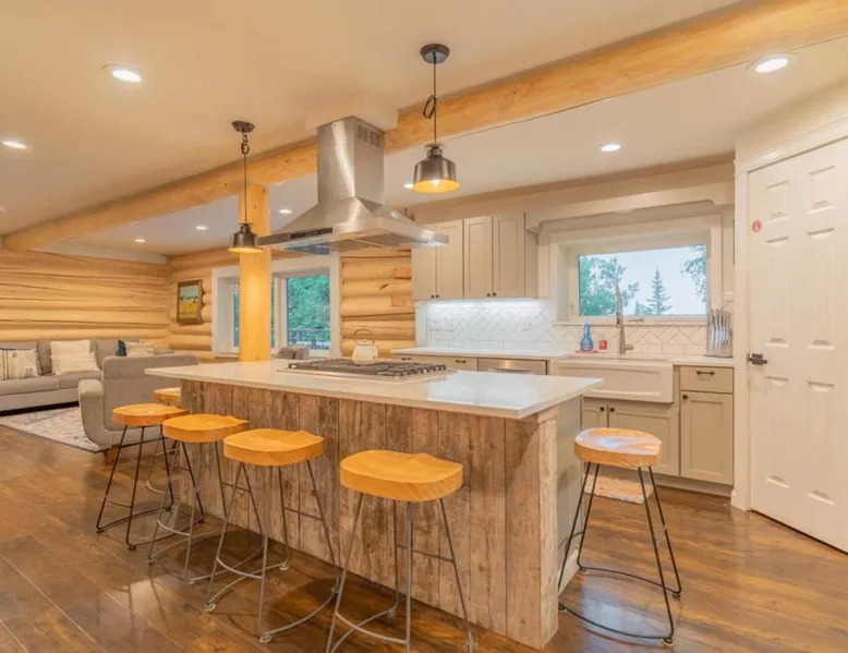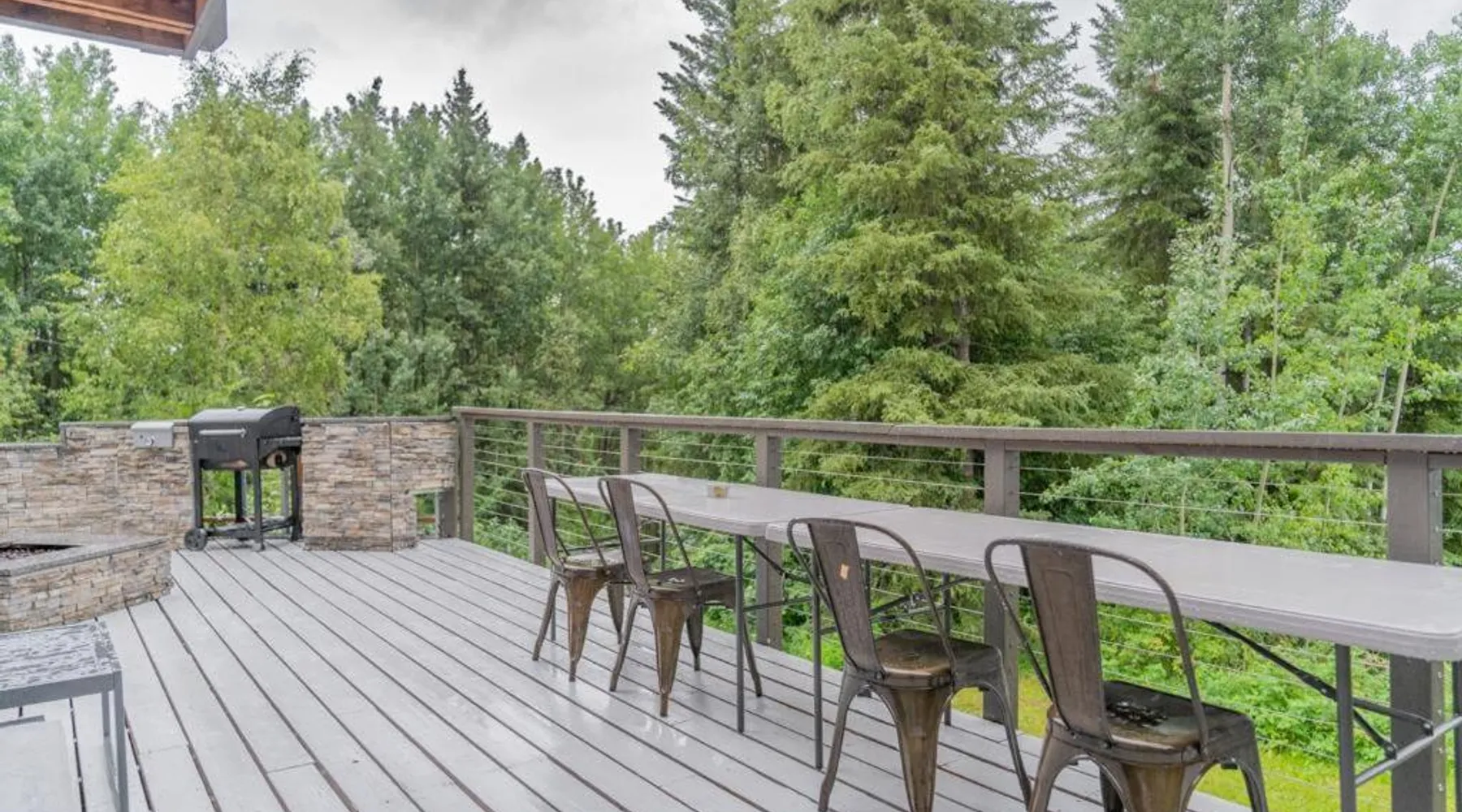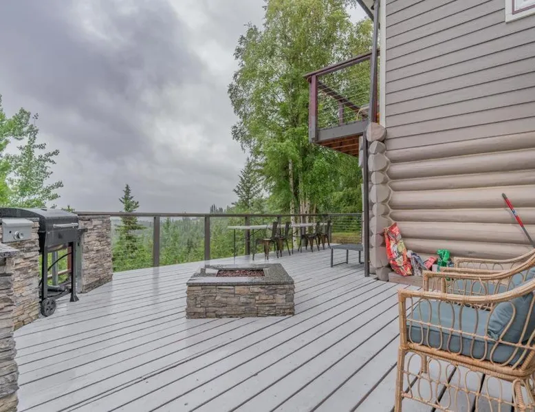 Spacious Accommodations: The Chetana Ridge Cabin in Fairbanks offers five bedrooms and three bathrooms. Guests enjoy mountain views from the balcony and a comfortable seating area. Modern Amenities: The holiday home features free WiFi, a games room, and a tour desk. Free on-site private parking is available, along with a fully equipped kitchen with a dishwasher and microwave. Convenient Location: Located 11 mi from Fairbanks International Airport and 8.1 mi from the University of Alaska Fairbanks, the property provides easy access to local attractions. This holiday home consists of a kitchen, a seating area, 5 separate bedrooms and 3 bathrooms with a bath and a shower. Guests can make meals in the kitchen that comes with a stovetop, a refrigerator, a dishwasher and kitchenware. Featuring a balcony with mountain views, this holiday home also provides a washing machine and a TV. The unit offers 6 beds.