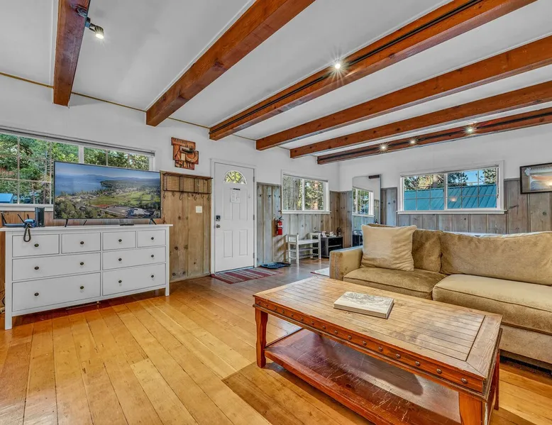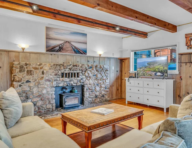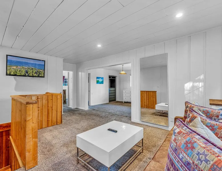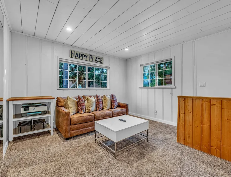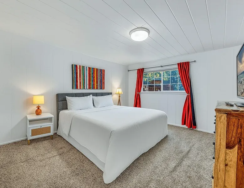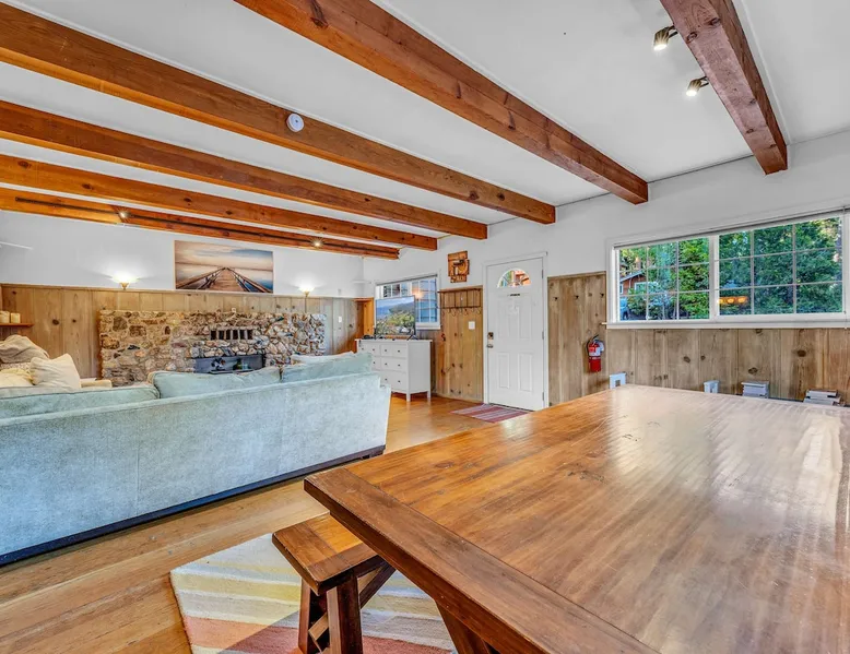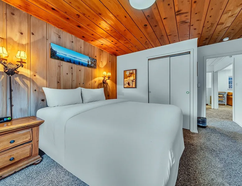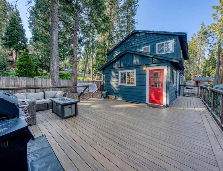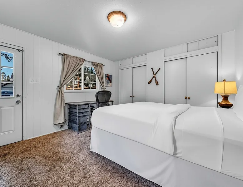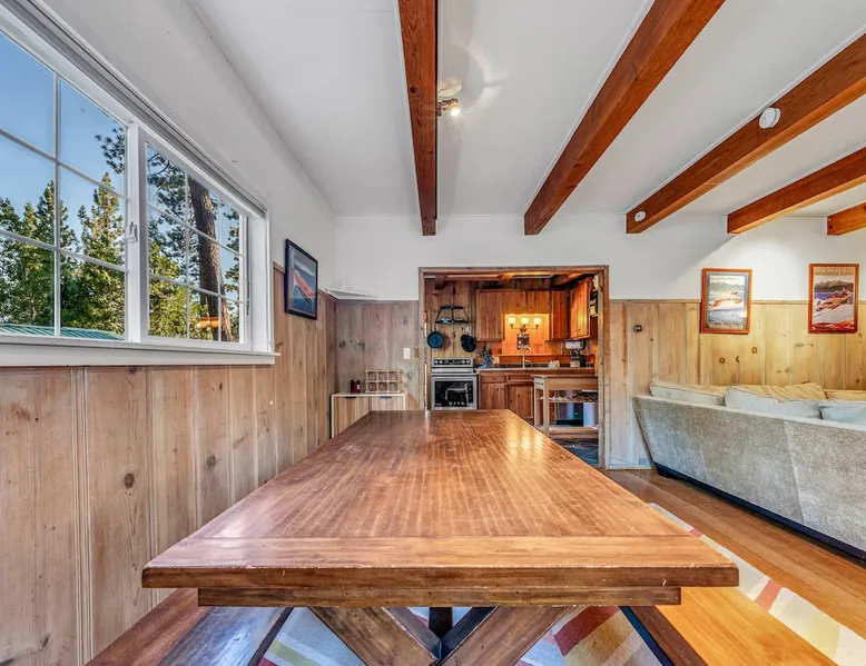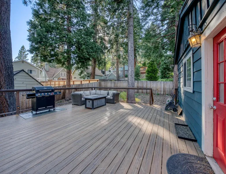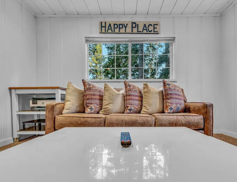 With a pet-friendly fenced yard, updated kitchen, and central Tahoe City location, this 4-bedroom vacation rental blends comfort and convenience. Enjoy work-from-home setups, fast WiFi, and outdoor living just steps from the marina and trails. The space Location perks: Tahoe City Marina (0.4 miles), Save Mart (0.6 miles), Commons Beach (0.6 miles), Tahoe Cross-Country Ski Area (3 miles), Palisades Tahoe (7.8 miles) Floor configuration: Main floor: Kitchen, dining area, living room, 2 bedrooms (each with queen bed and desk), 1 full bathroom (vanity in hallway) Upper floor: 2 bedrooms (each with king bed—1 with Smart TV, 1 with adjustable desk/monitor), 1 full bathroom, second living area Interior: — Kitchen (drip coffee maker, Crockpot, air fryer, waffle maker, cooking utensils, tableware) — Smart TV (50”) with Roku — Wood-burning fireplace (wood not provided) — 2 living rooms (one with L-shaped sectional, one with couch + coffee table) — In-unit washer and dryer — Free WiFi (157 Mbps) — Central heat and no A/C — 1,942 sq. ft. Exterior: — Gas grill — Fire pit (no wood provided) — Fenced backyard with patio — New composite deck — On-site parking for 4 cars in driveway (garage space not guest accessible) STR Permit Number: STR25-9497 Max Occupancy: 8 Parking Info: On-site parking for 4 cars in driveway (garage space not guest accessible) Guest access Guests have access to the full home, fenced backyard, grill, and both living spaces. Laundry is located in a private upstairs closet. Four parking spaces are available in the driveway; garage is not accessible. Other things to note Please keep in mind that if you plan to ski, you are responsible for verifying the ski resorts’ opening and closing dates. Please note that like most homes in the area, this home does not have A/C. 4-wheel drive or 2-wheel drive tires with snow chains may be necessary for safe travel to this property, even if it hasn’t snowed in a few days. Registration Details STR25-9497