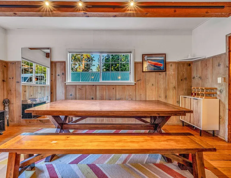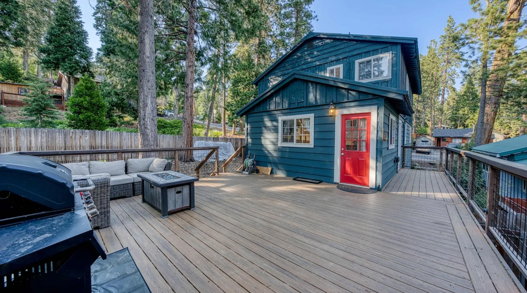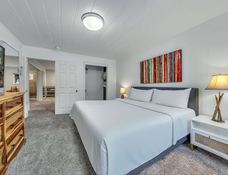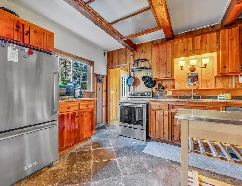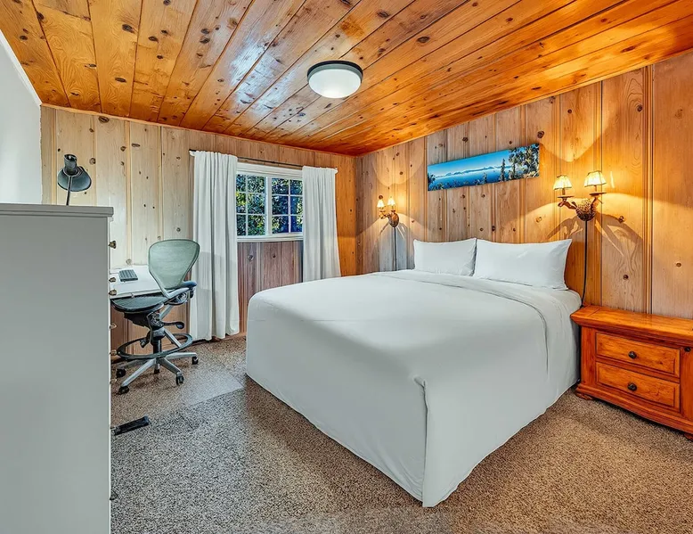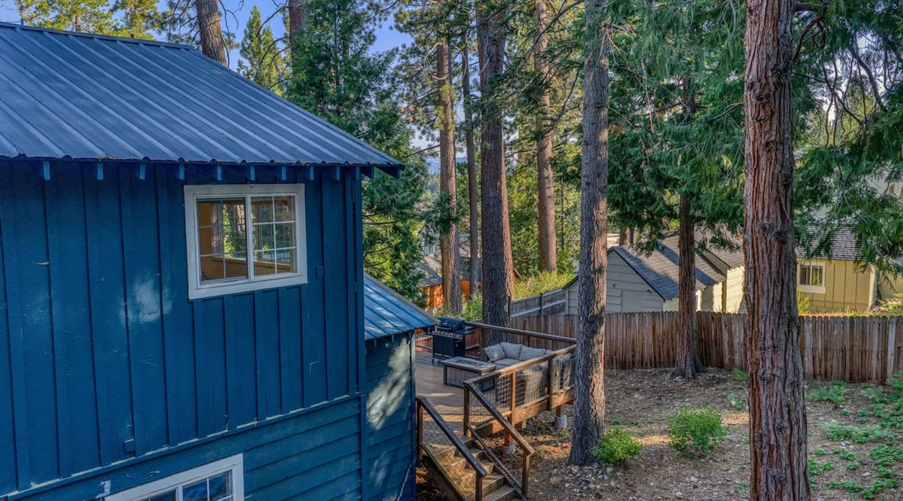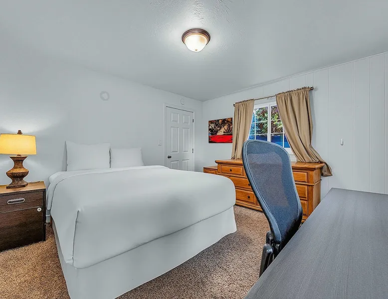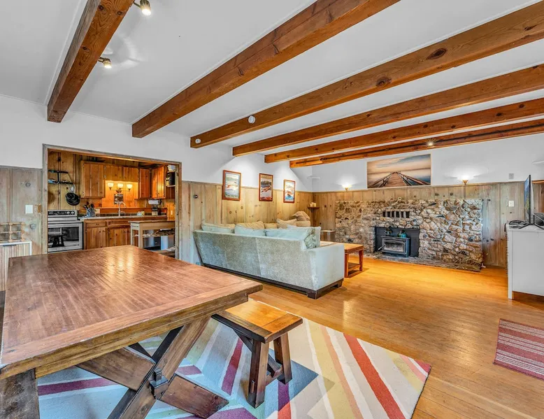 With a pet-friendly fenced yard, updated kitchen, and central Tahoe City location, this 4-bedroom vacation rental blends comfort and convenience. Enjoy work-from-home setups, fast WiFi, and outdoor living just steps from the marina and trails. The space Location perks: Tahoe City Marina (0.4 miles), Save Mart (0.6 miles), Commons Beach (0.6 miles), Tahoe Cross-Country Ski Area (3 miles), Palisades Tahoe (7.8 miles) Floor configuration: Main floor: Kitchen, dining area, living room, 2 bedrooms (each with queen bed and desk), 1 full bathroom (vanity in hallway) Upper floor: 2 bedrooms (each with king bed—1 with Smart TV, 1 with adjustable desk/monitor), 1 full bathroom, second living area Interior: — Kitchen (drip coffee maker, Crockpot, air fryer, waffle maker, cooking utensils, tableware) — Smart TV (50”) with Roku — Wood-burning fireplace (wood not provided) — 2 living rooms (one with L-shaped sectional, one with couch + coffee table) — In-unit washer and dryer — Free WiFi (157 Mbps) — Central heat and no A/C — 1,942 sq. ft. Exterior: — Gas grill — Fire pit (no wood provided) — Fenced backyard with patio — New composite deck — On-site parking for 4 cars in driveway (garage space not guest accessible) STR Permit Number: STR25-9497 Max Occupancy: 8 Parking Info: On-site parking for 4 cars in driveway (garage space not guest accessible) Guest access Guests have access to the full home, fenced backyard, grill, and both living spaces. Laundry is located in a private upstairs closet. Four parking spaces are available in the driveway; garage is not accessible. Other things to note Please keep in mind that if you plan to ski, you are responsible for verifying the ski resorts’ opening and closing dates. Please note that like most homes in the area, this home does not have A/C. 4-wheel drive or 2-wheel drive tires with snow chains may be necessary for safe travel to this property, even if it hasn’t snowed in a few days. Registration Details STR25-9497