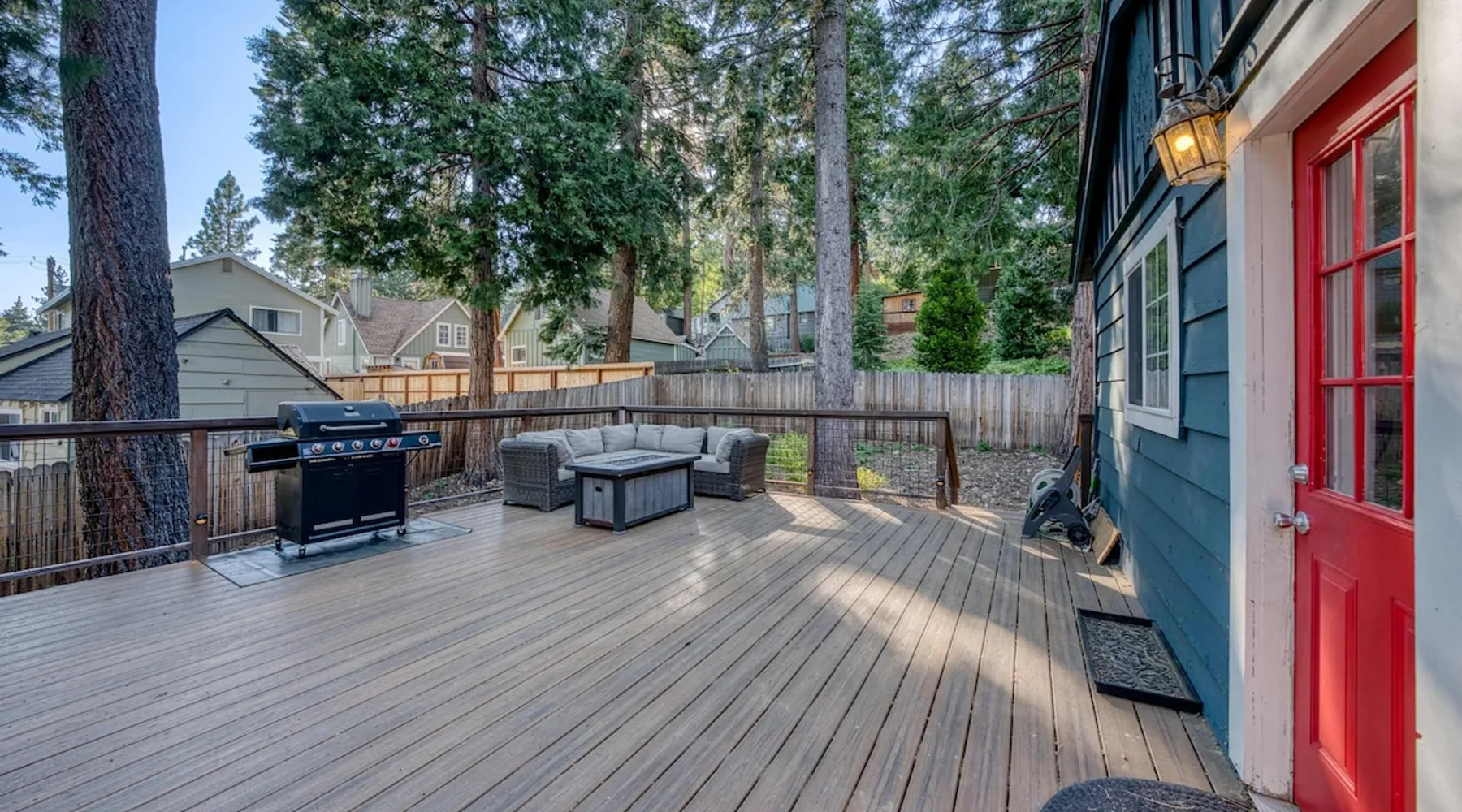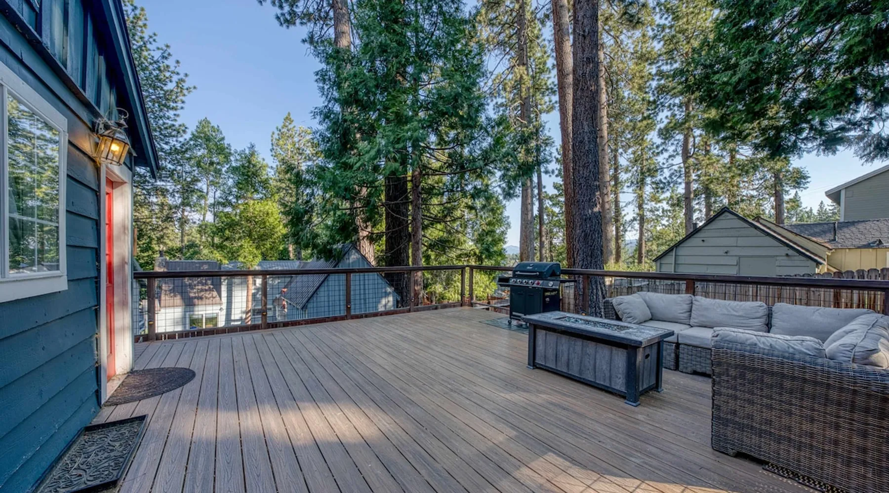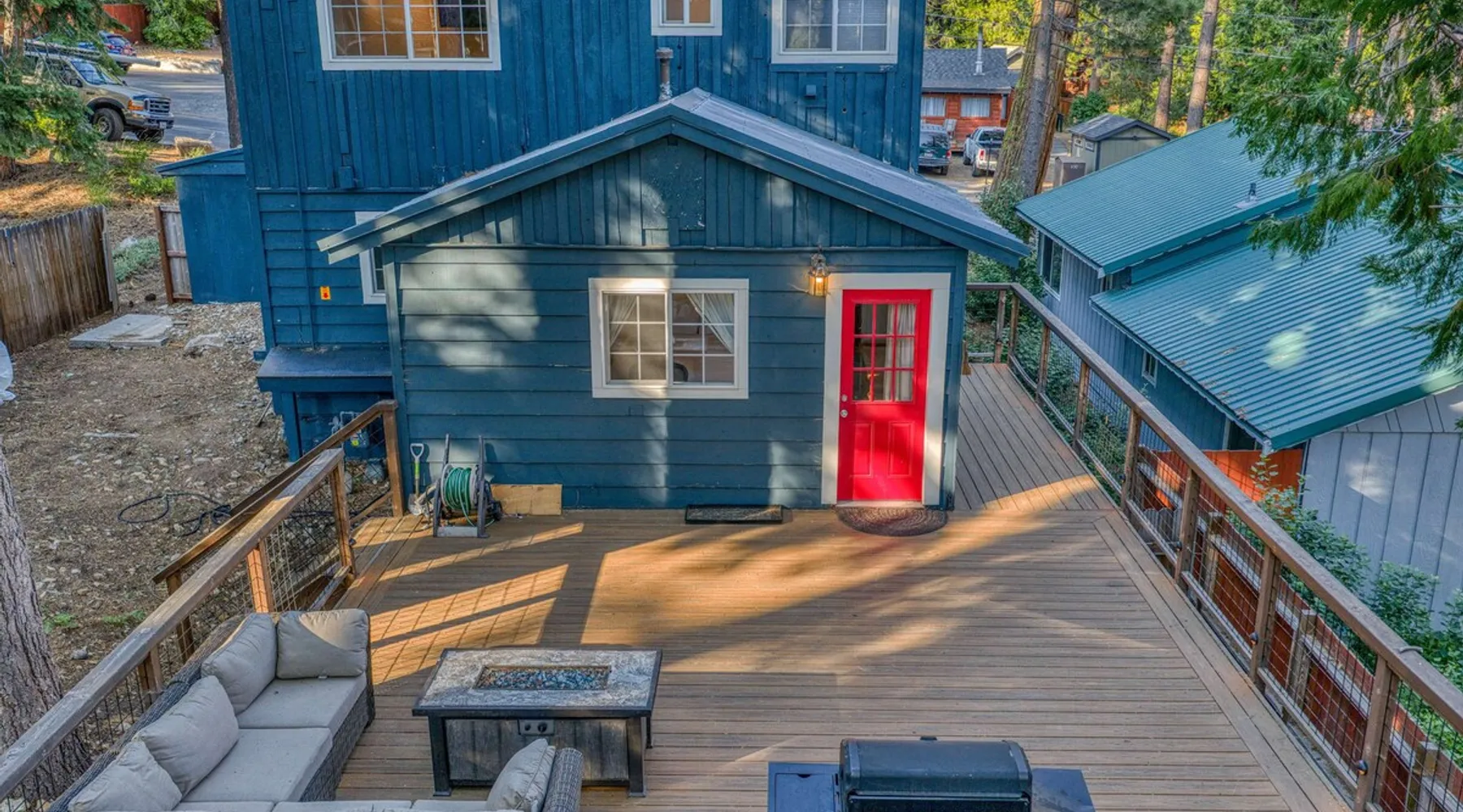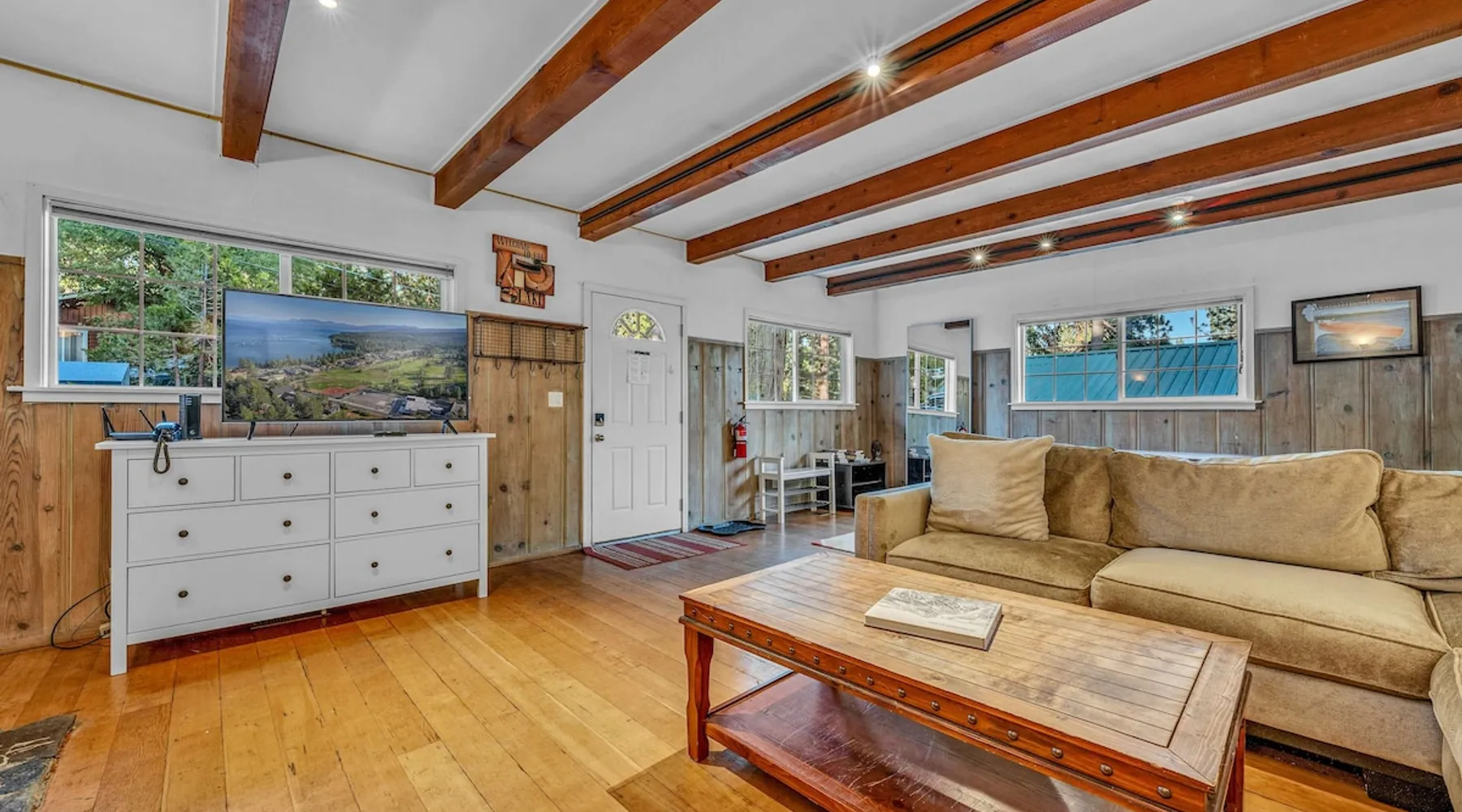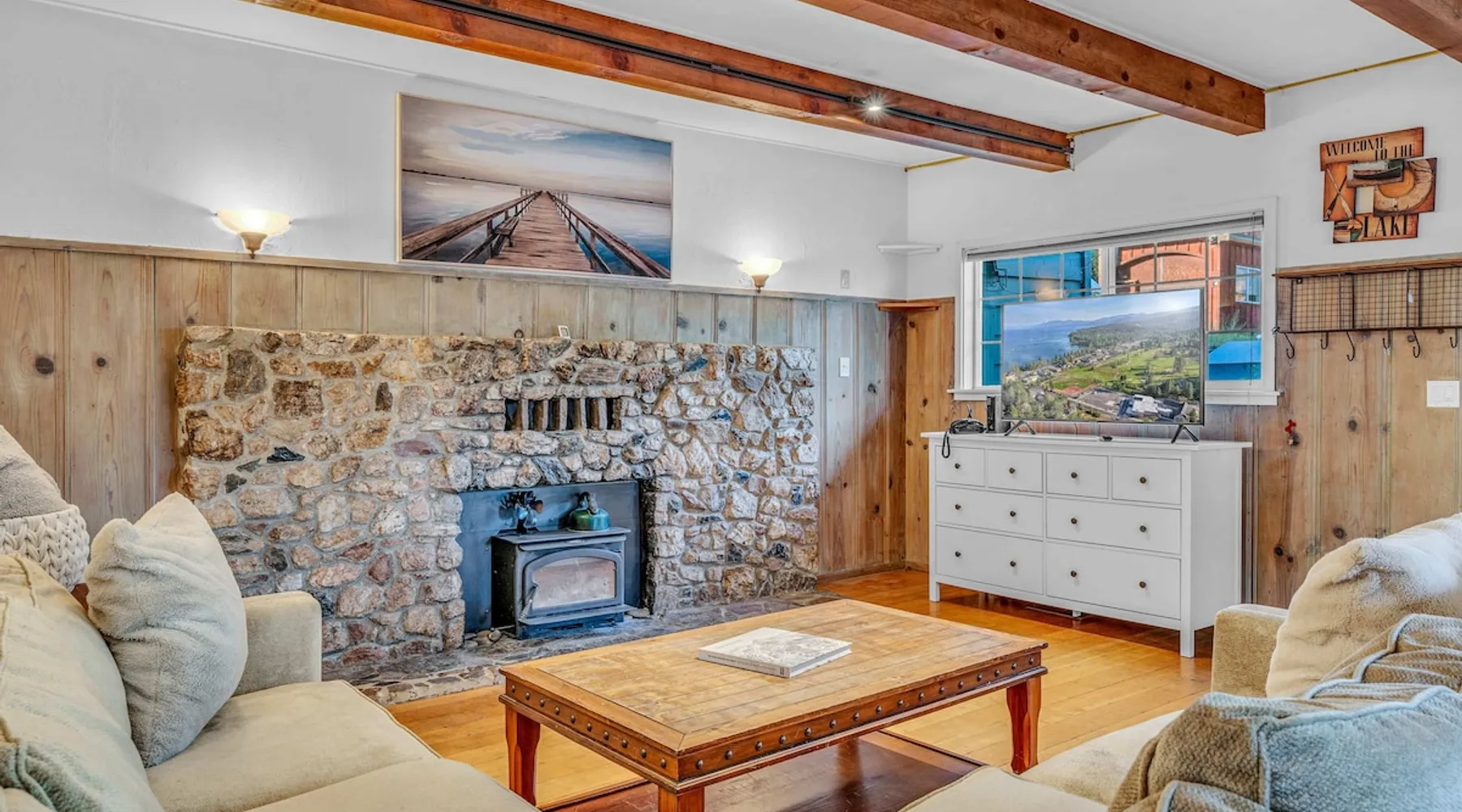 With a pet-friendly fenced yard, updated kitchen, and central Tahoe City location, this 4-bedroom vacation rental blends comfort and convenience. Enjoy work-from-home setups, fast WiFi, and outdoor living just steps from the marina and trails. The space Location perks: Tahoe City Marina (0.4 miles), Save Mart (0.6 miles), Commons Beach (0.6 miles), Tahoe Cross-Country Ski Area (3 miles), Palisades Tahoe (7.8 miles) Floor configuration: Main floor: Kitchen, dining area, living room, 2 bedrooms (each with queen bed and desk), 1 full bathroom (vanity in hallway) Upper floor: 2 bedrooms (each with king bed—1 with Smart TV, 1 with adjustable desk/monitor), 1 full bathroom, second living area Interior: — Kitchen (drip coffee maker, Crockpot, air fryer, waffle maker, cooking utensils, tableware) — Smart TV (50”) with Roku — Wood-burning fireplace (wood not provided) — 2 living rooms (one with L-shaped sectional, one with couch + coffee table) — In-unit washer and dryer — Free WiFi (157 Mbps) — Central heat and no A/C — 1,942 sq. ft. Exterior: — Gas grill — Fire pit (no wood provided) — Fenced backyard with patio — New composite deck — On-site parking for 4 cars in driveway (garage space not guest accessible) STR Permit Number: STR25-9497 Max Occupancy: 8 Parking Info: On-site parking for 4 cars in driveway (garage space not guest accessible) Guest access Guests have access to the full home, fenced backyard, grill, and both living spaces. Laundry is located in a private upstairs closet. Four parking spaces are available in the driveway; garage is not accessible. Other things to note Please keep in mind that if you plan to ski, you are responsible for verifying the ski resorts’ opening and closing dates. Please note that like most homes in the area, this home does not have A/C. 4-wheel drive or 2-wheel drive tires with snow chains may be necessary for safe travel to this property, even if it hasn’t snowed in a few days. Registration Details STR25-9497
